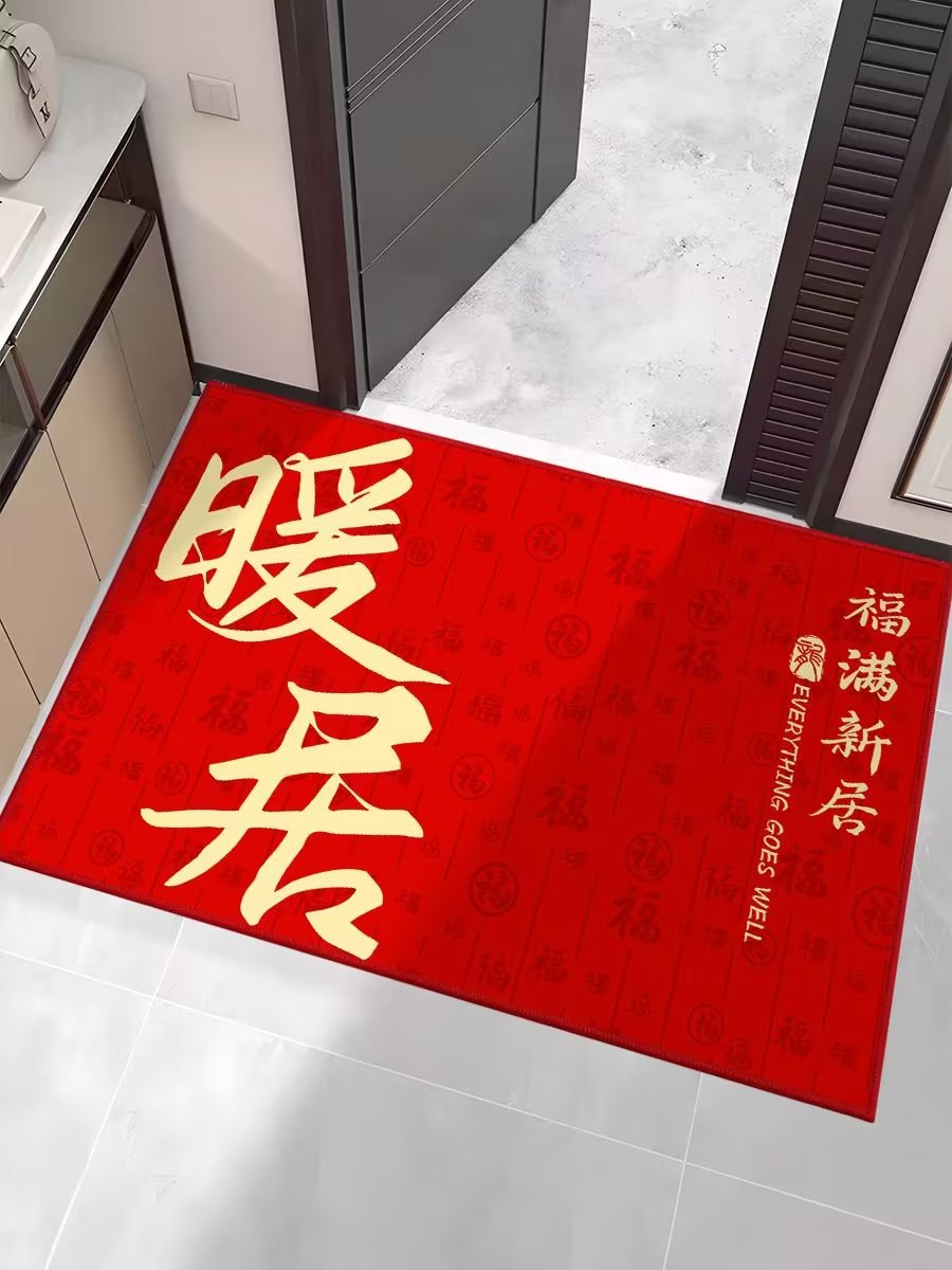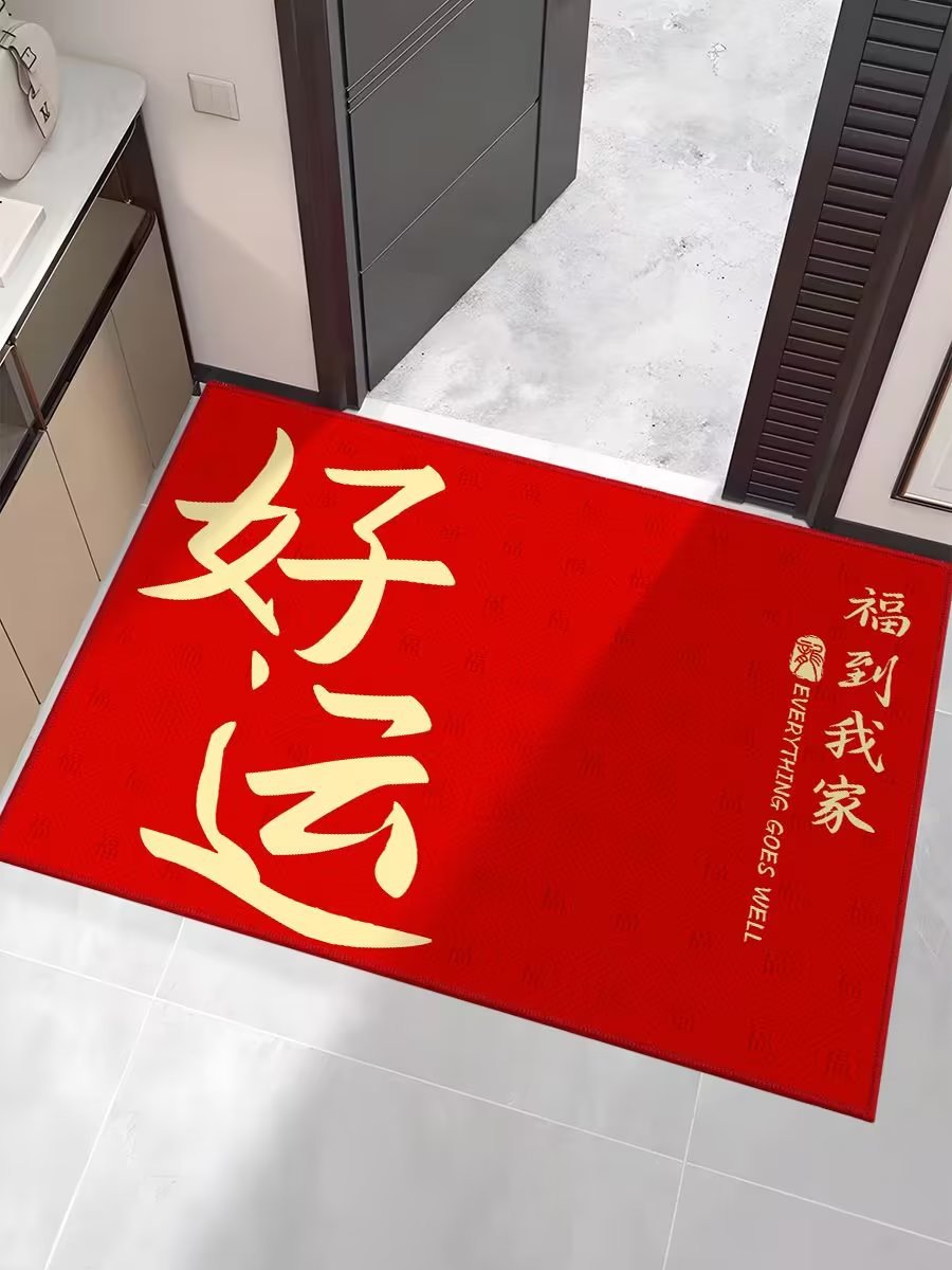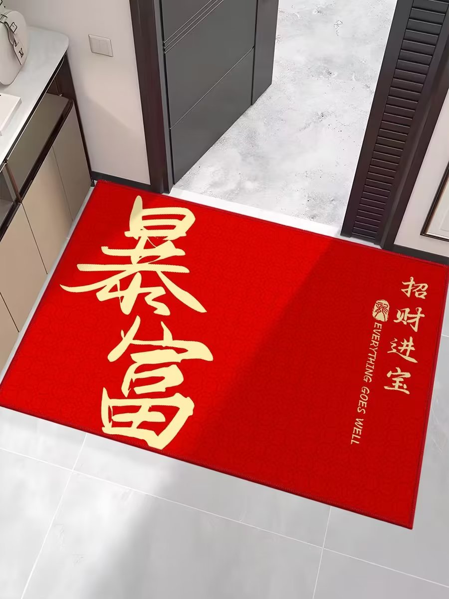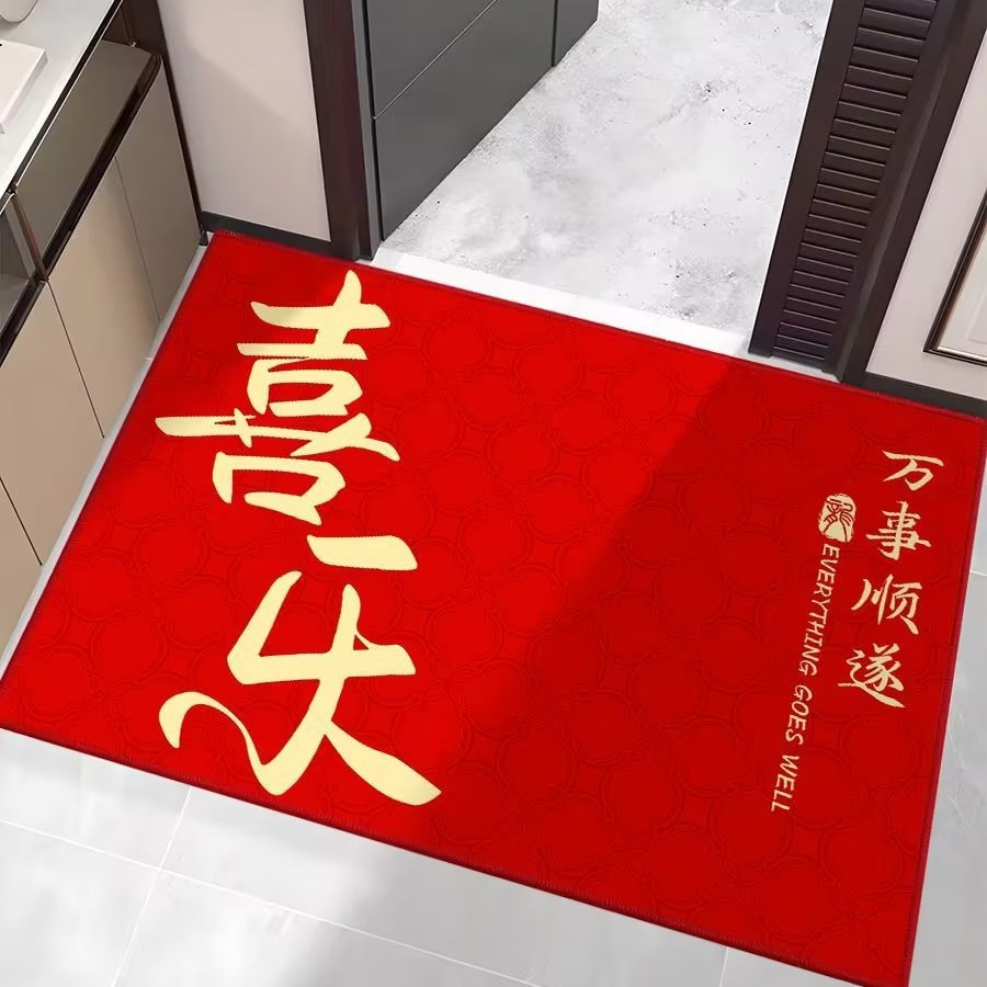 새로운 중국 입구 매트 홈 욕실 크리스탈 벨벳 카펫 레드 축제 입구 먼지 방지 발 매트 도매스토어 가기
