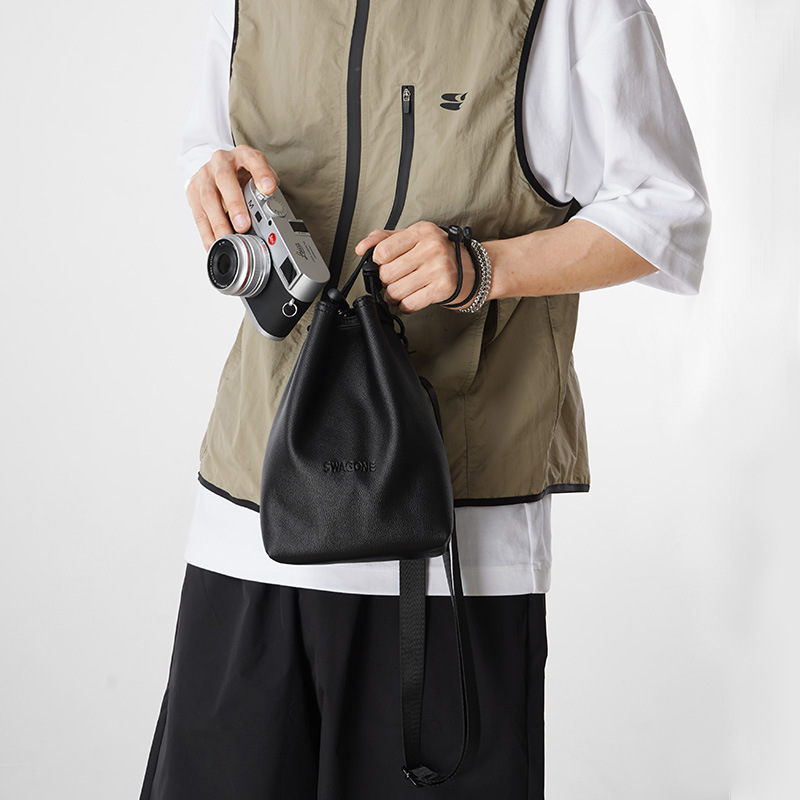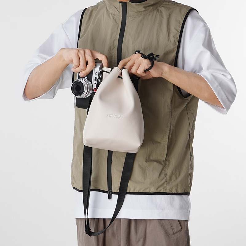카메라 가방 저장 가방 마이크로 단일 라이너 보호 케이스 2024 새로운 drawstring 대각선 가방 간단한 복고풍 어깨 가방 남성스토어 가기