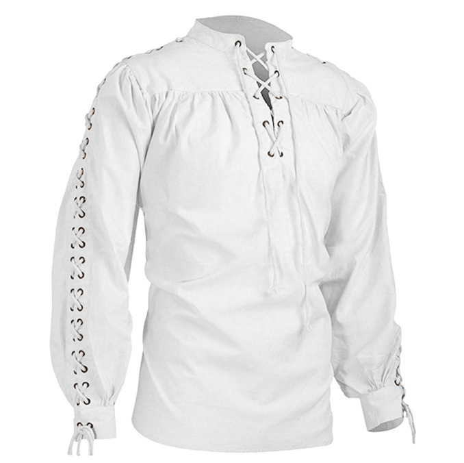 패션 남성 붕대 긴 소매 중세 르네상스 셔츠 고딕 남성 전사 셔츠 공연 옷스토어 가기