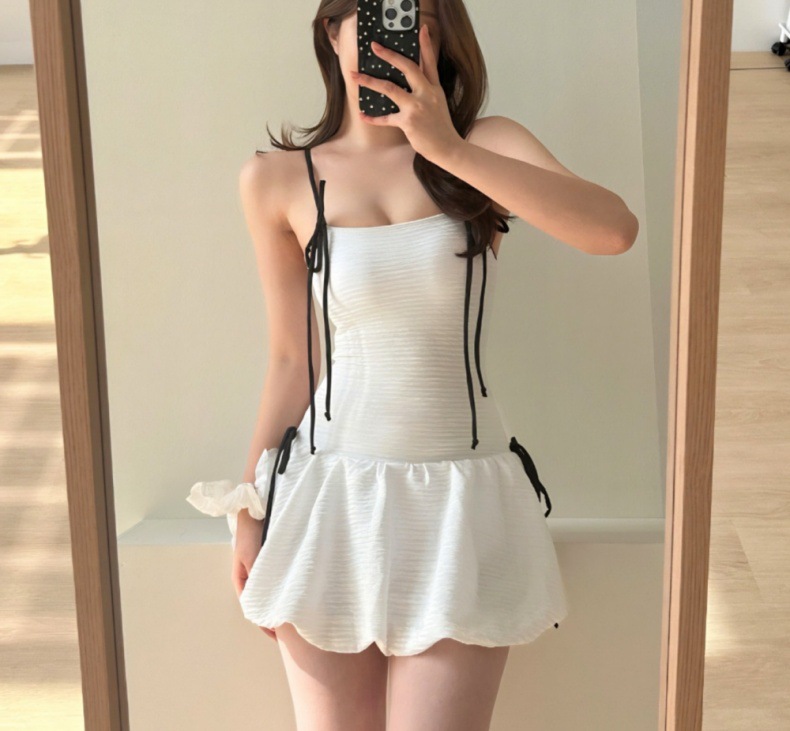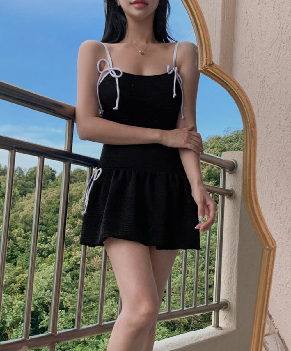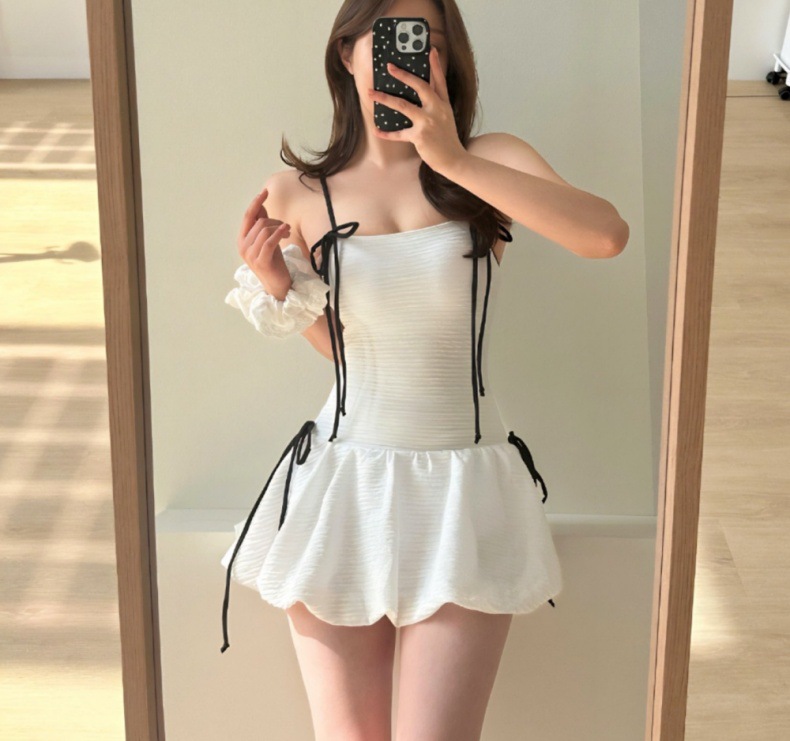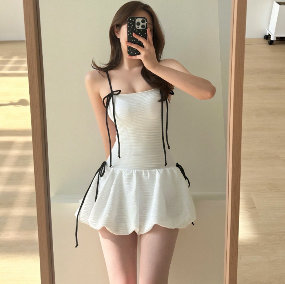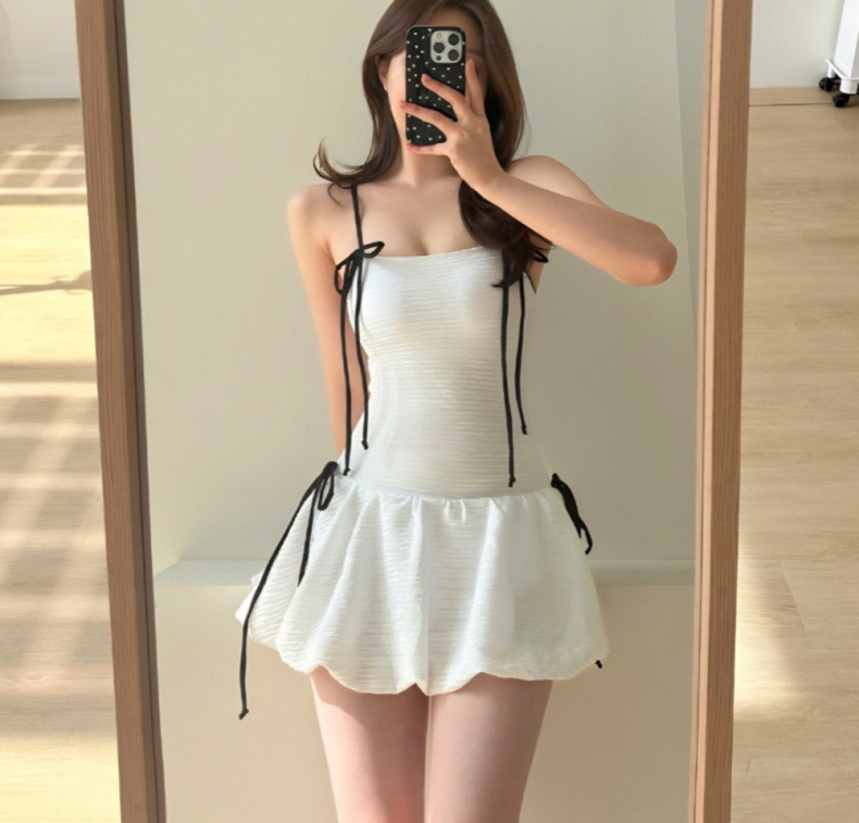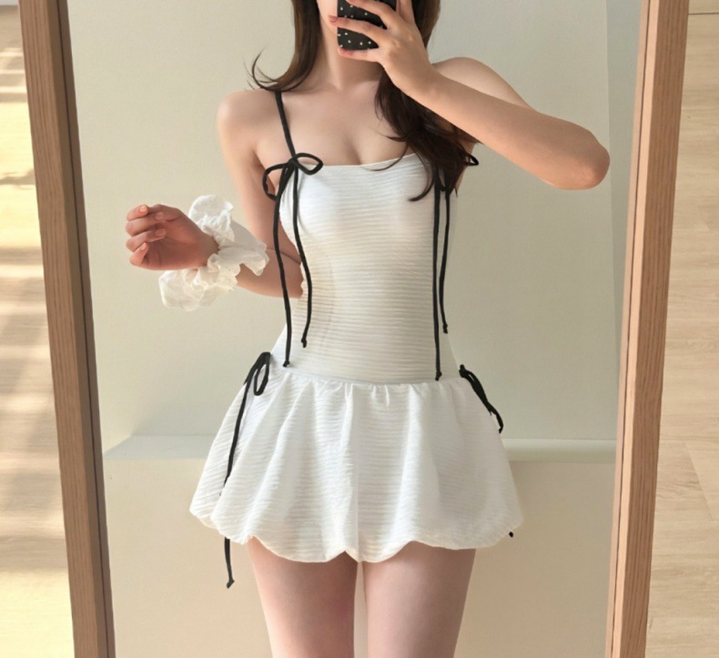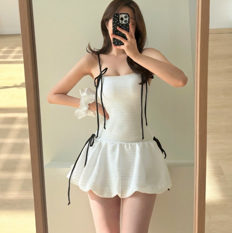 귀여운 소녀 순수한 작은 향수 스타일 하이 엔드 간단한 보수적 스커트 작은 가슴 원피스 수영복 여성 수영복 도매스토어 가기