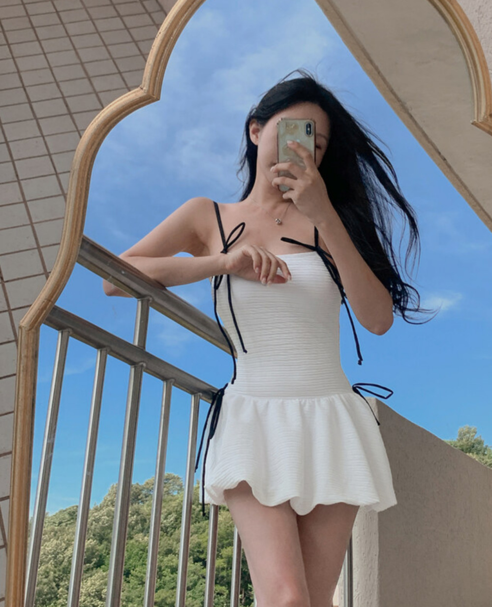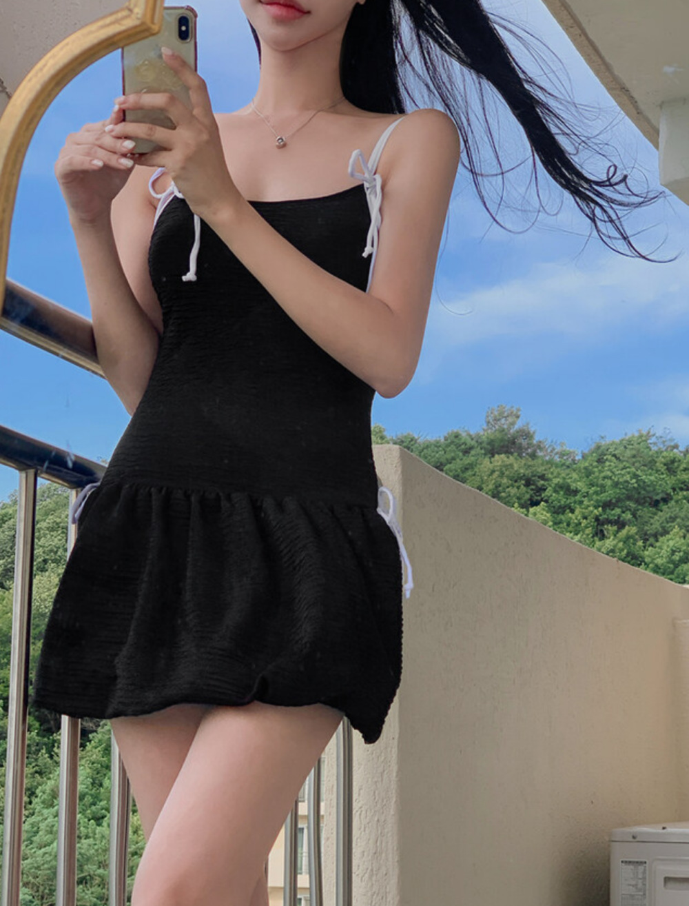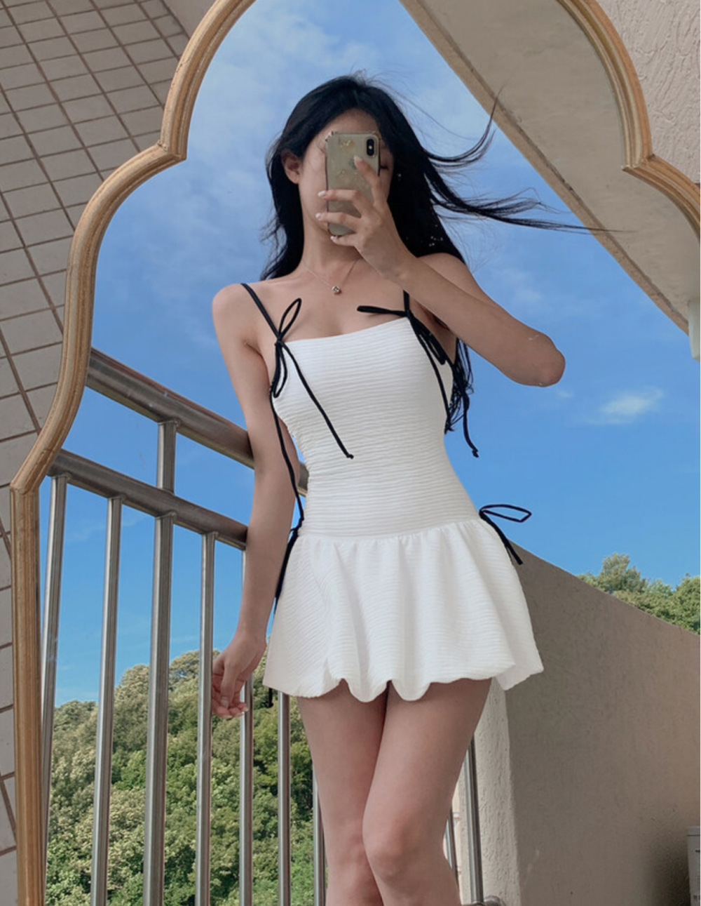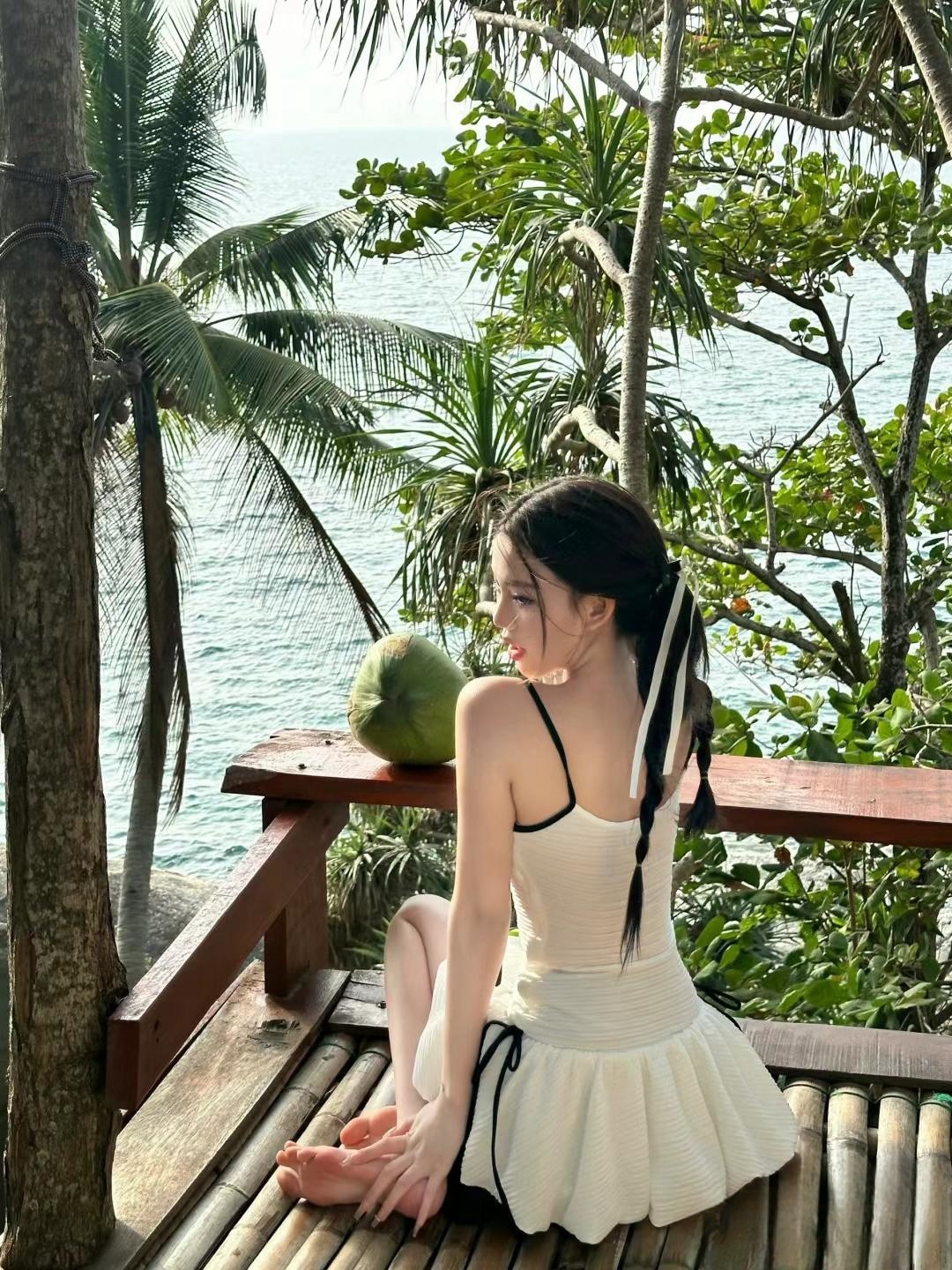 귀여운 소녀 순수한 작은 향수 스타일 하이 엔드 간단한 보수적 스커트 작은 가슴 원피스 수영복 여성 수영복 도매스토어 가기