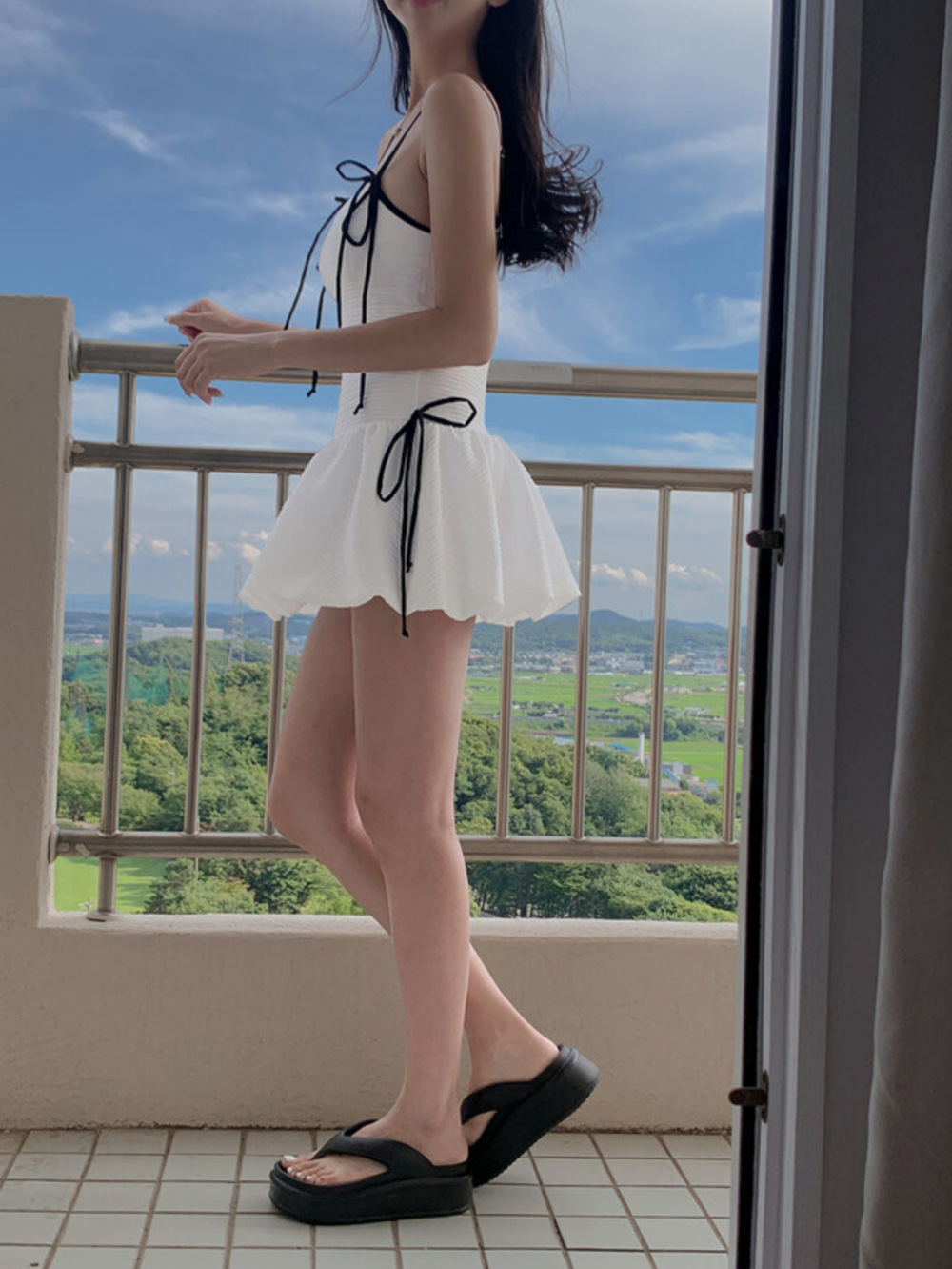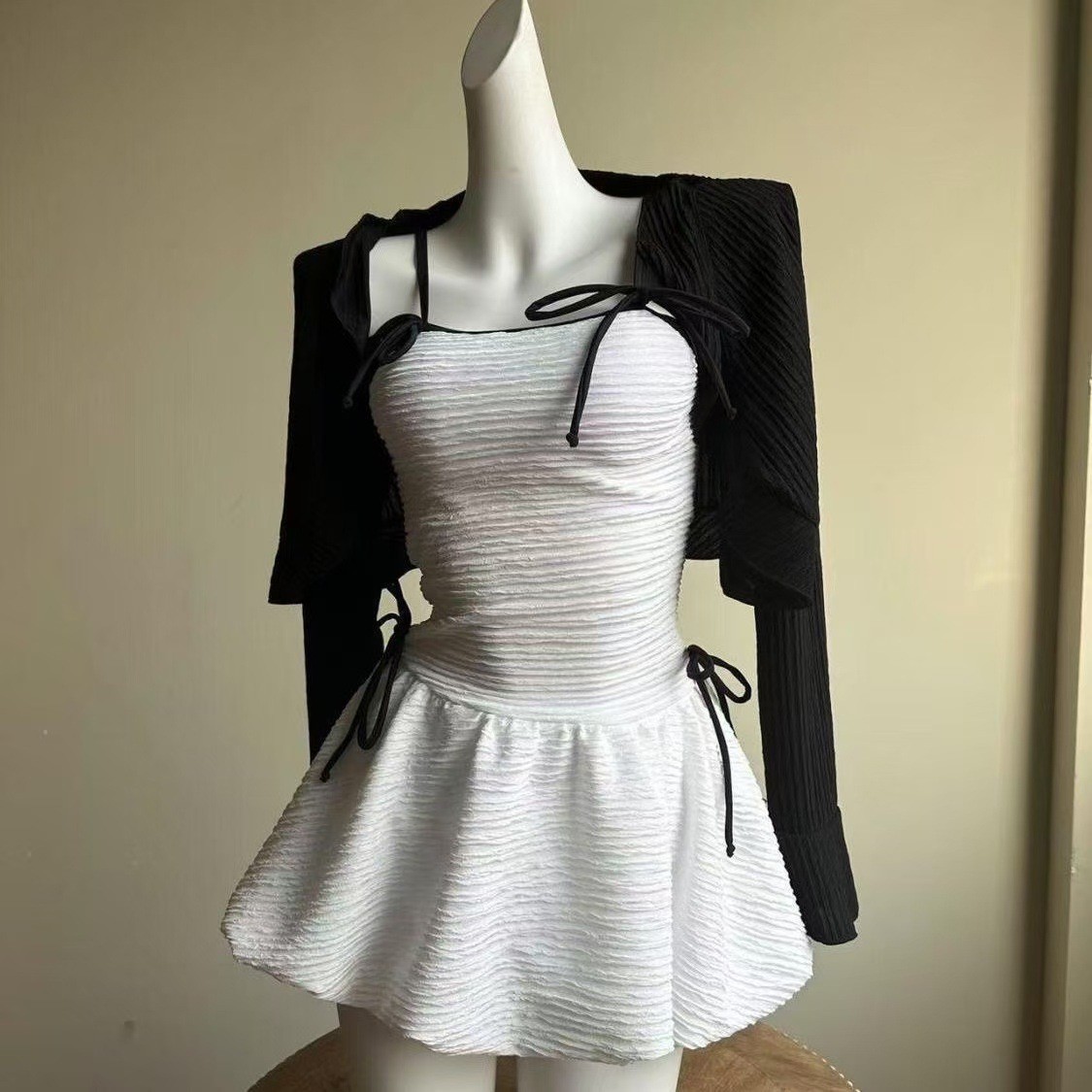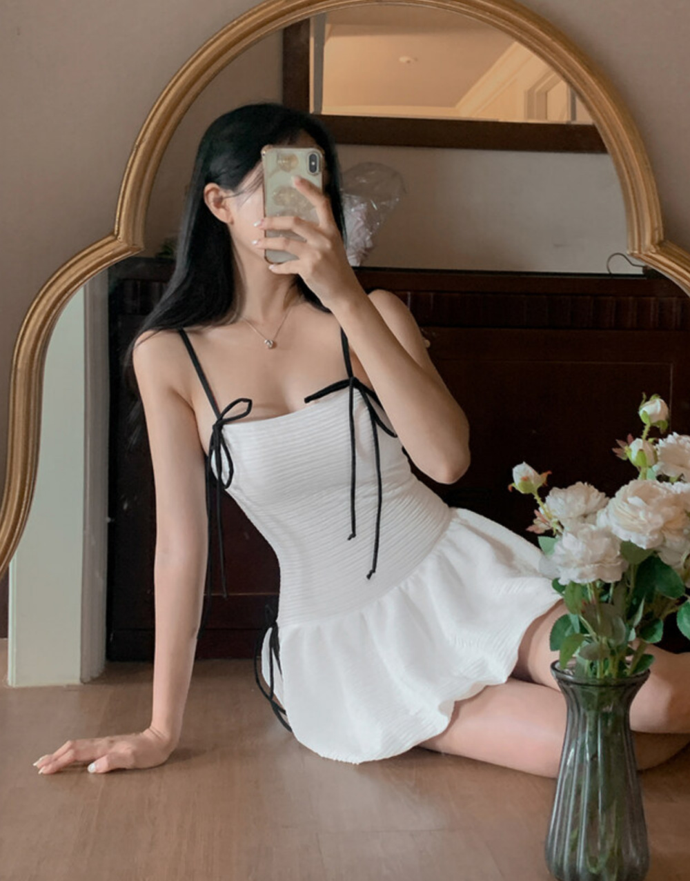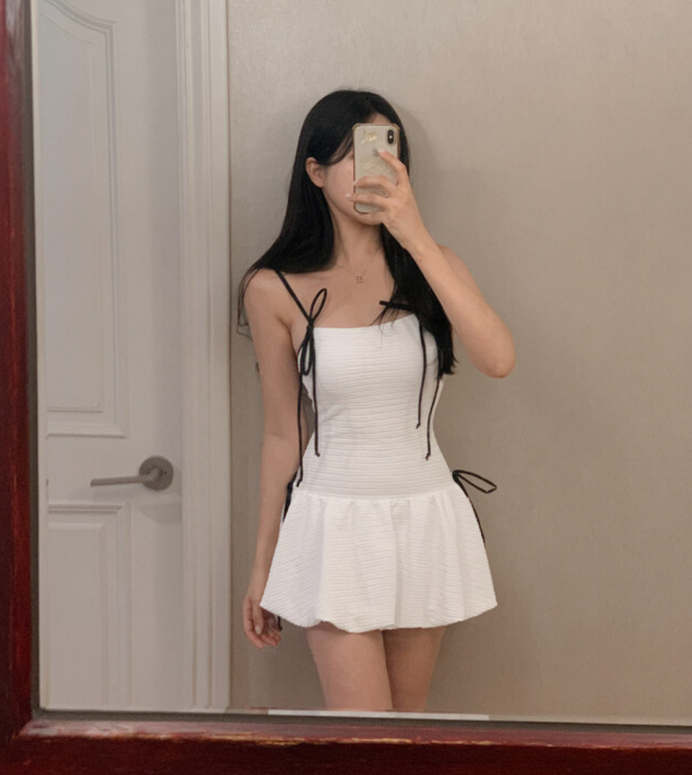 • 흰색 점프수트 + 검정색 셔츠
