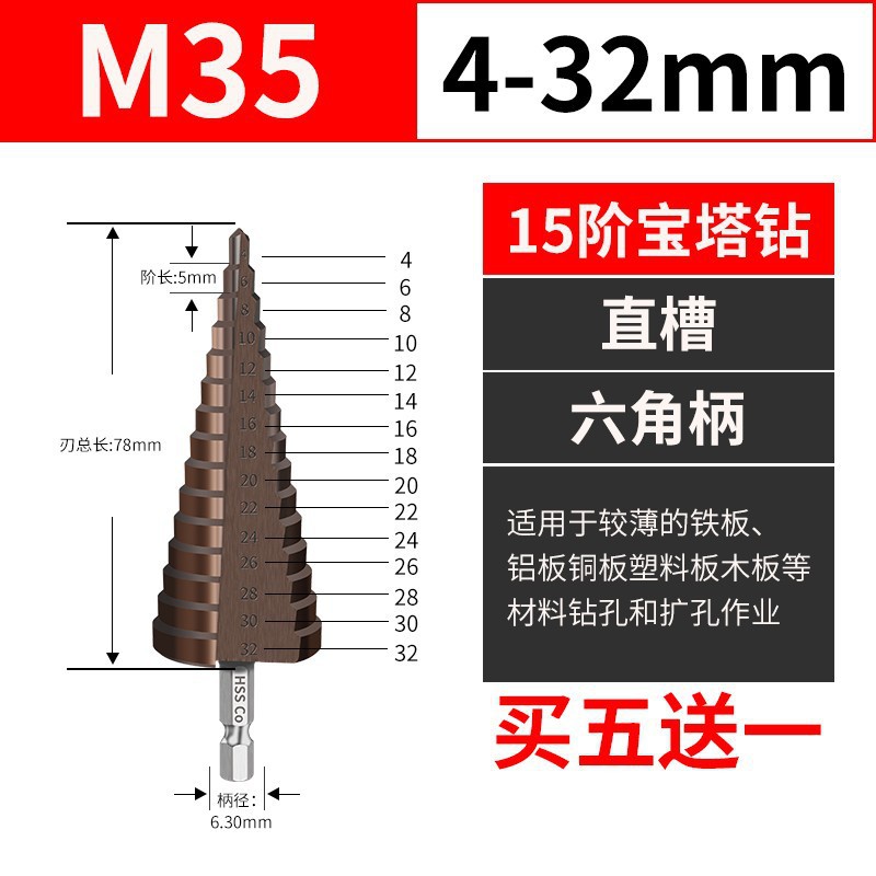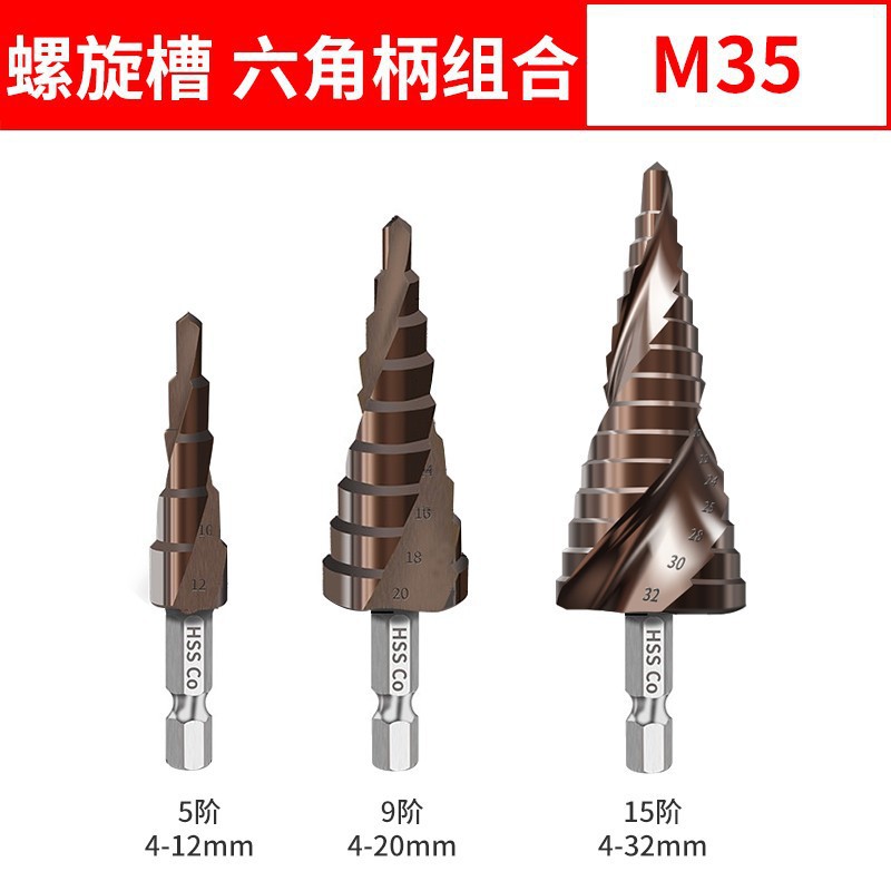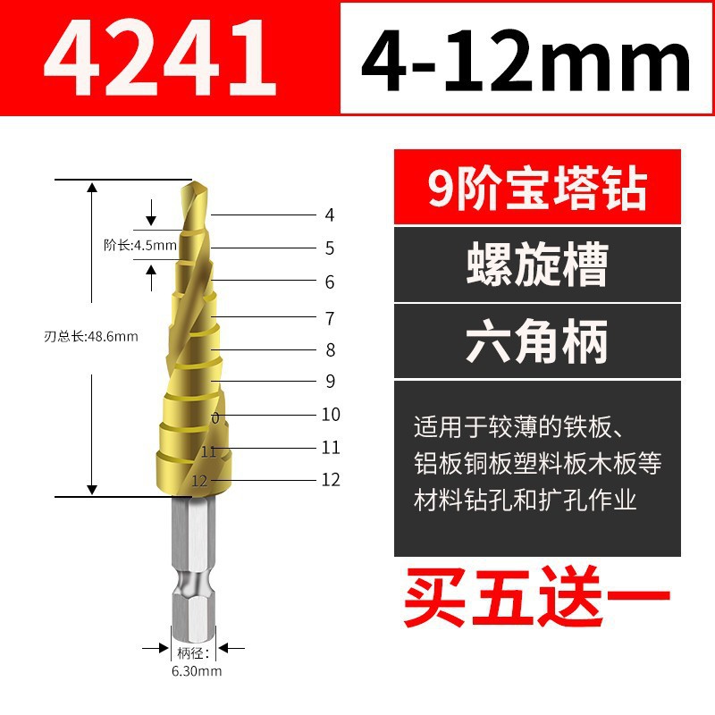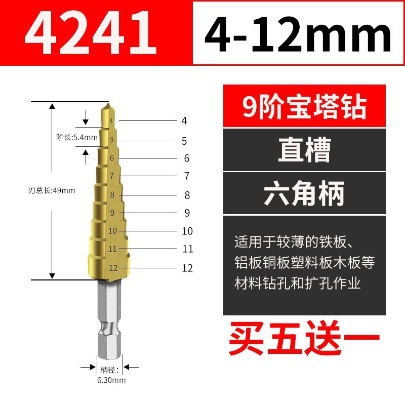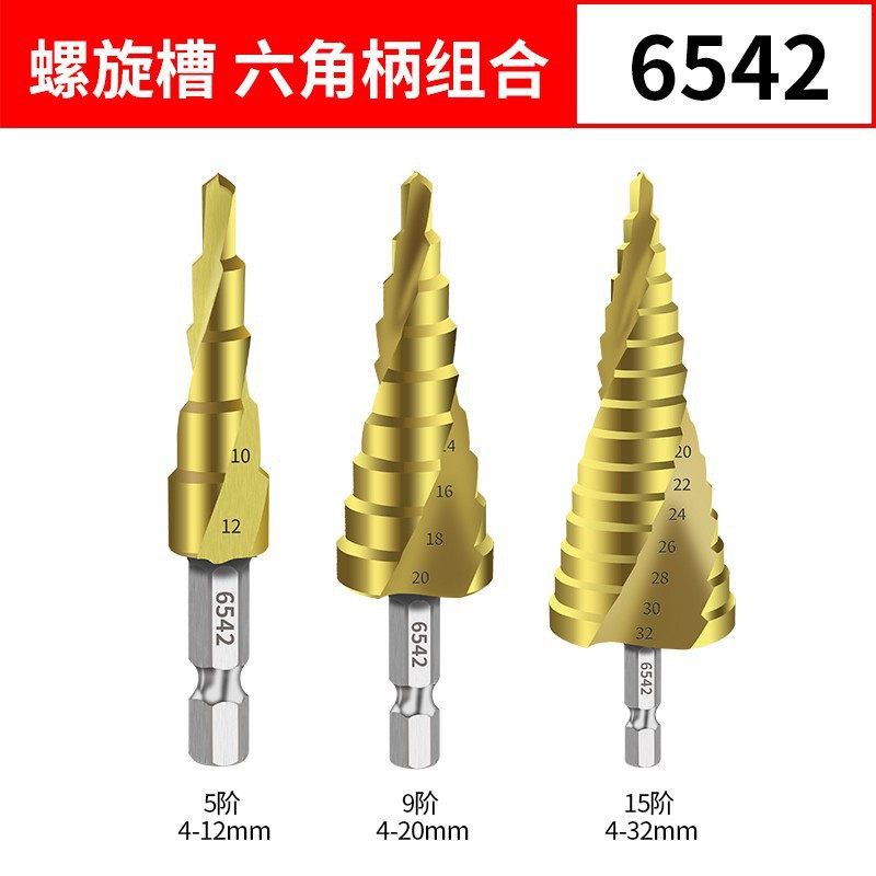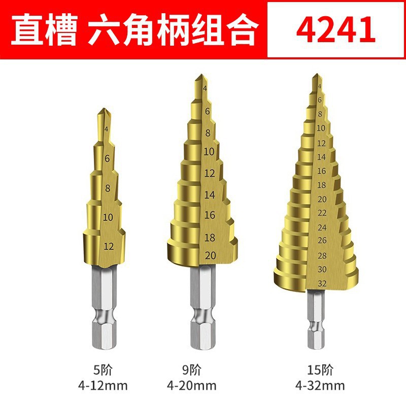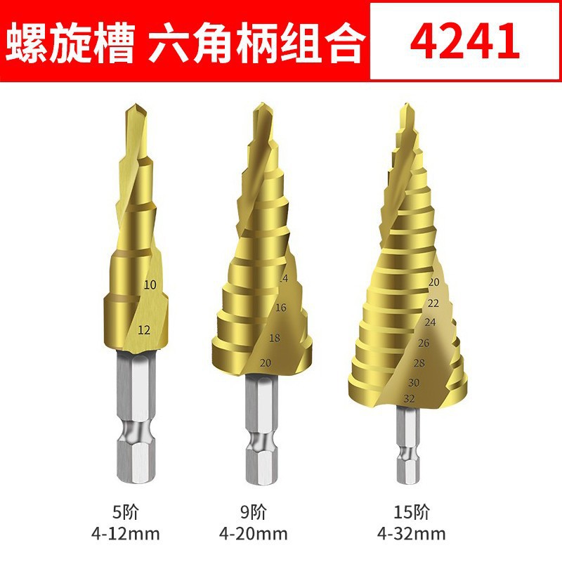 파고다 드릴 육각형 스텝 드릴 금속 구멍 오프너 사다리꼴 강철 드릴링 슈퍼 하드 다기능 재조정 구멍스토어 가기