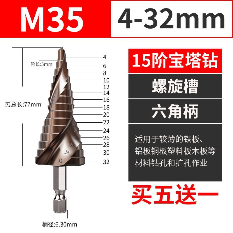 파고다 드릴 육각형 스텝 드릴 금속 구멍 오프너 사다리꼴 강철 드릴링 슈퍼 하드 다기능 재조정 구멍