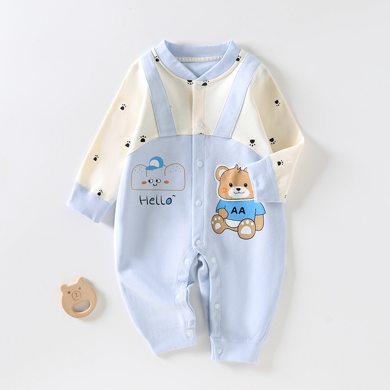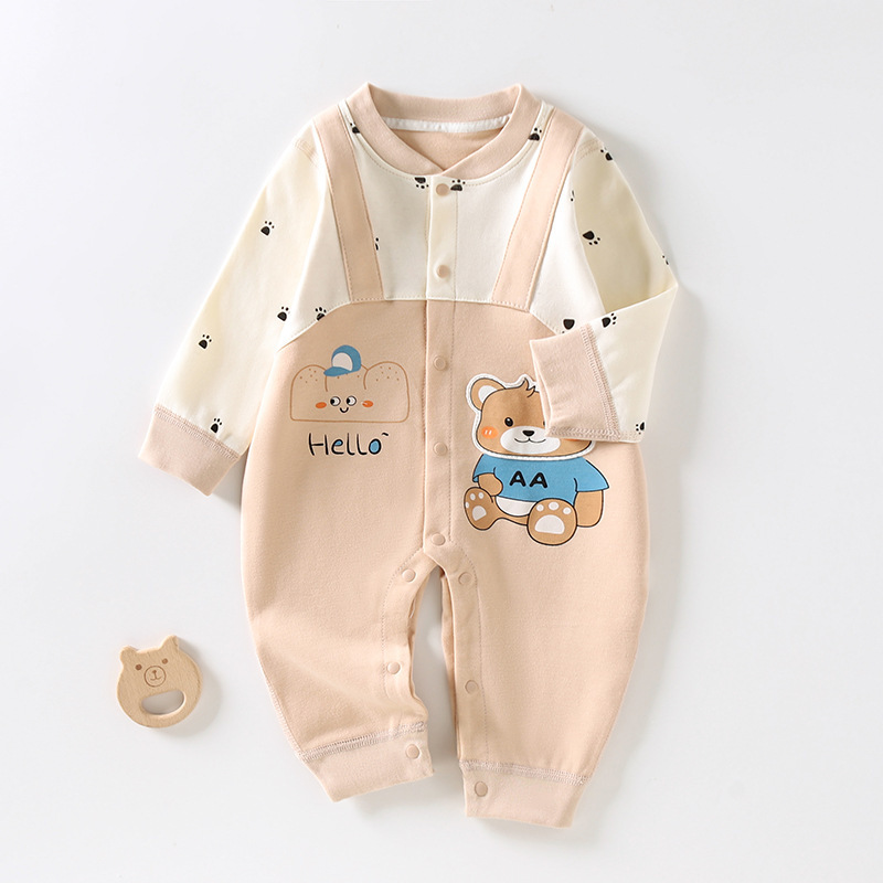 가을 새 아기 점프 수트 신생아 뼈없는 하퍼 만화 점프 수트 긴 소매 사계절