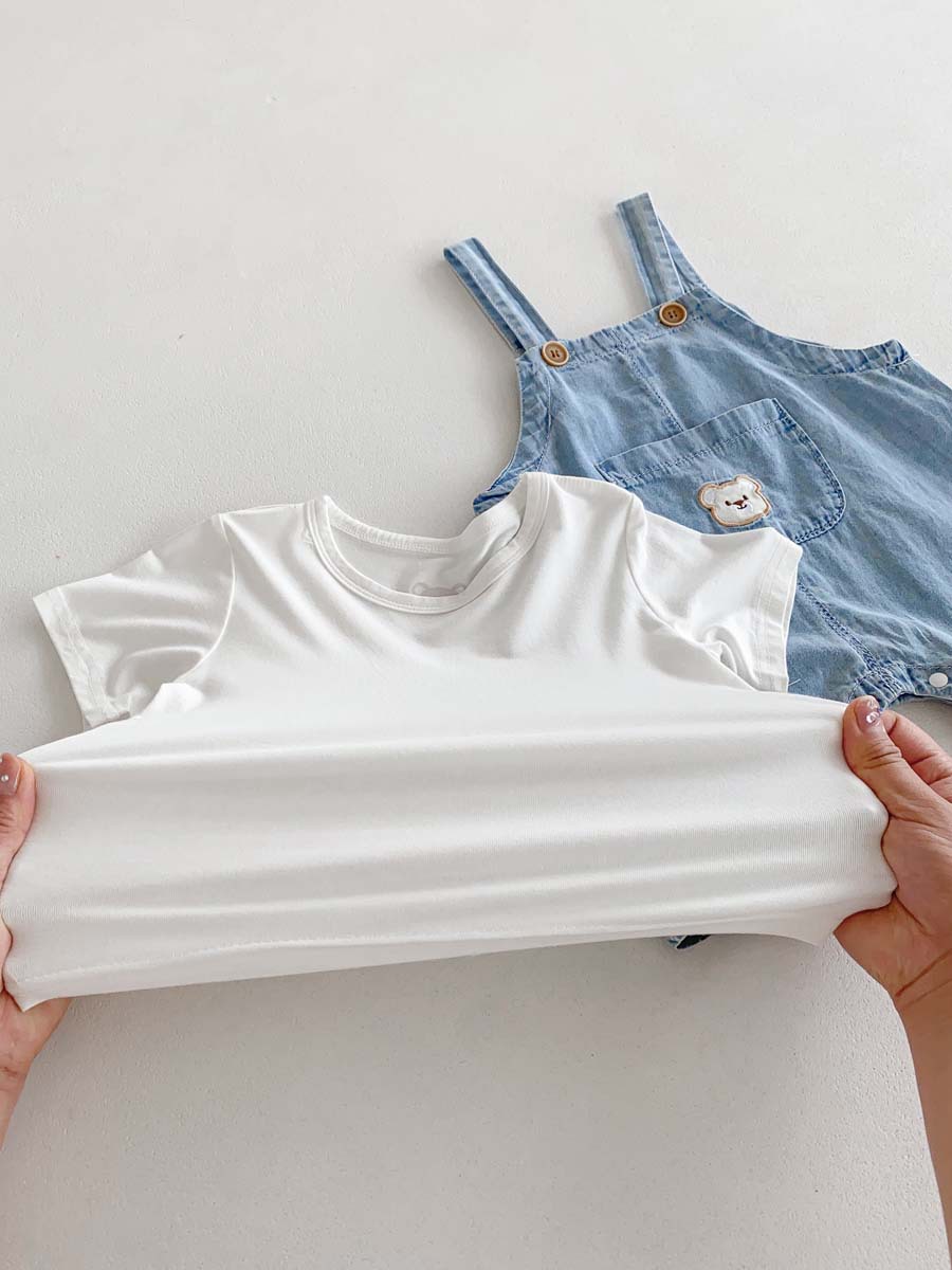 2025 새로운 아기 여름 정장 아기 옷 여름 얇은 티셔츠 데님 작업복 점프 슈트 2 개