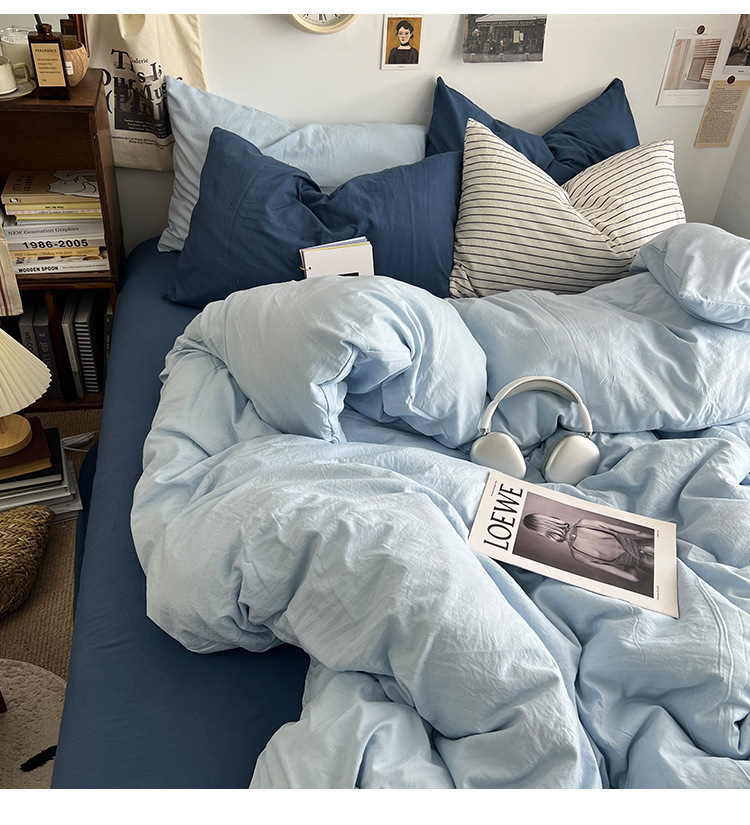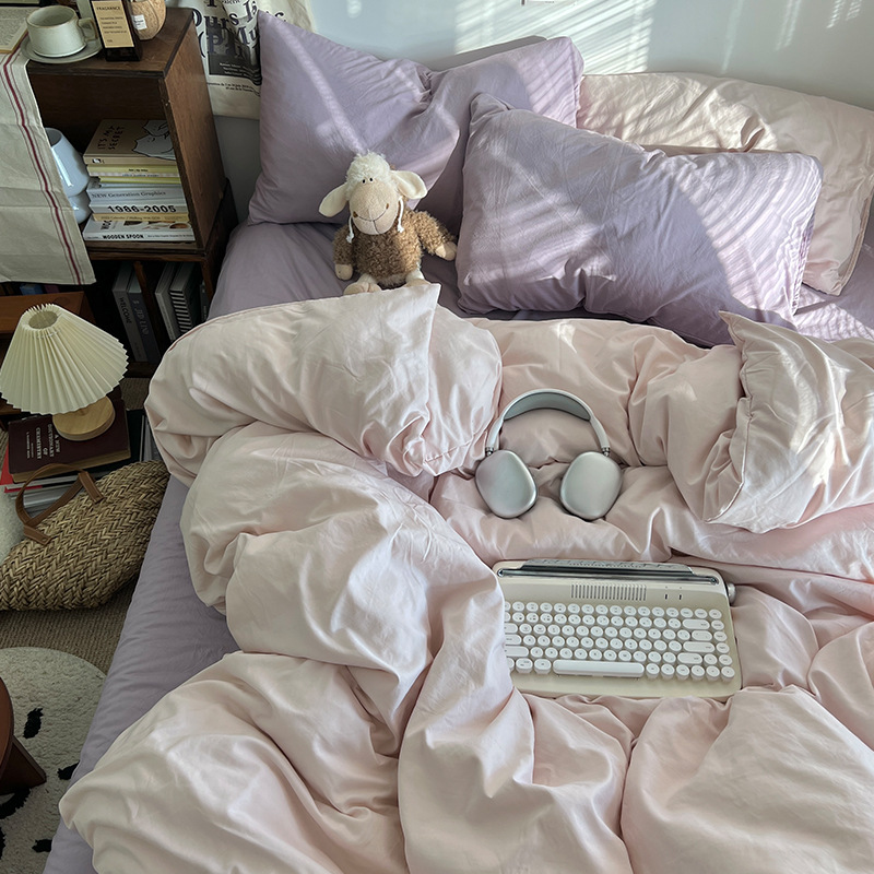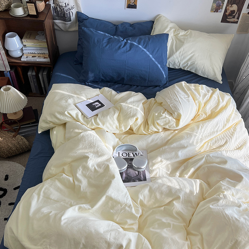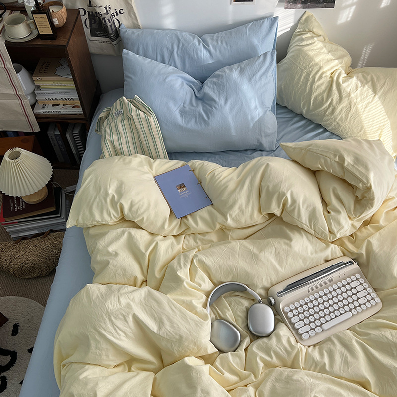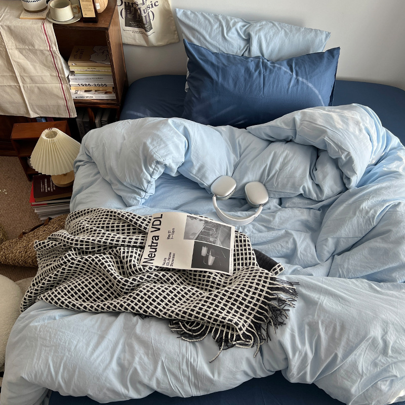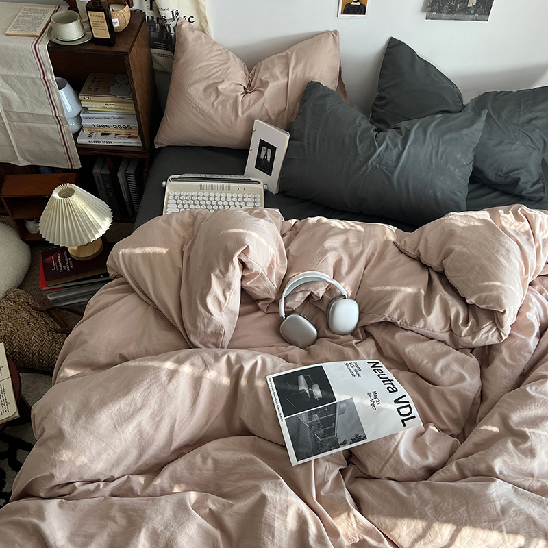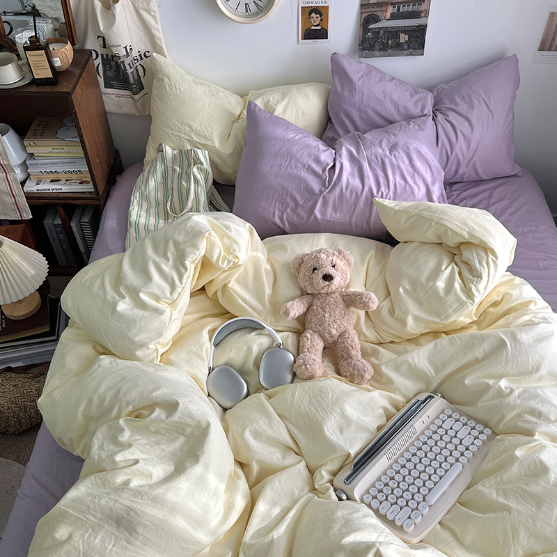 간단한 솔리드 컬러 더블 피스 4 피스 세트 세척 코튼 클래스 모성 및 유아 학년 더블 학생 기숙사 시트 퀼트 커버 3 피스 세트스토어 가기