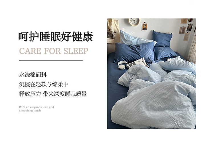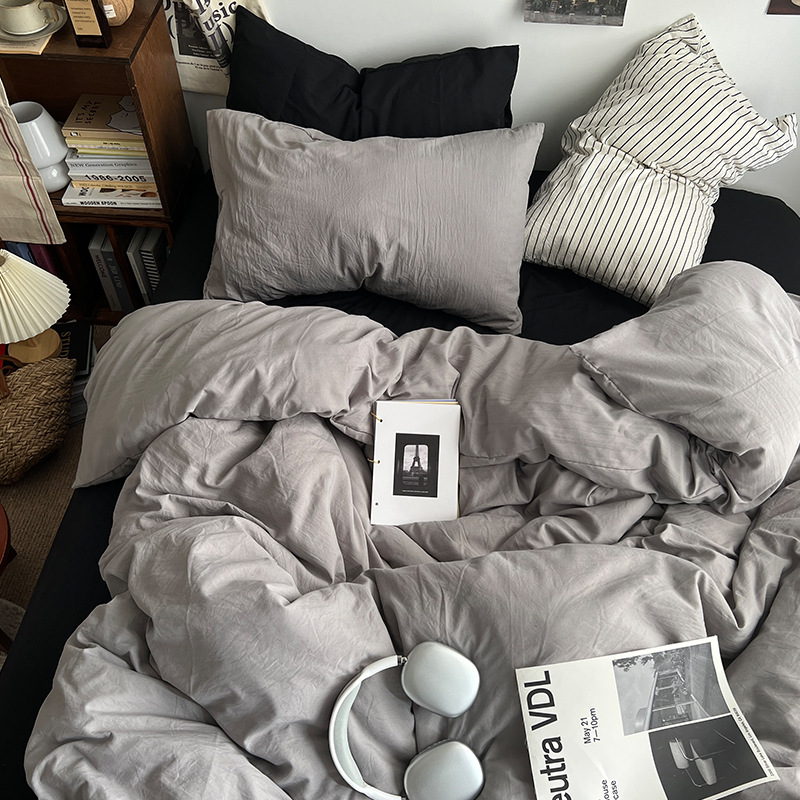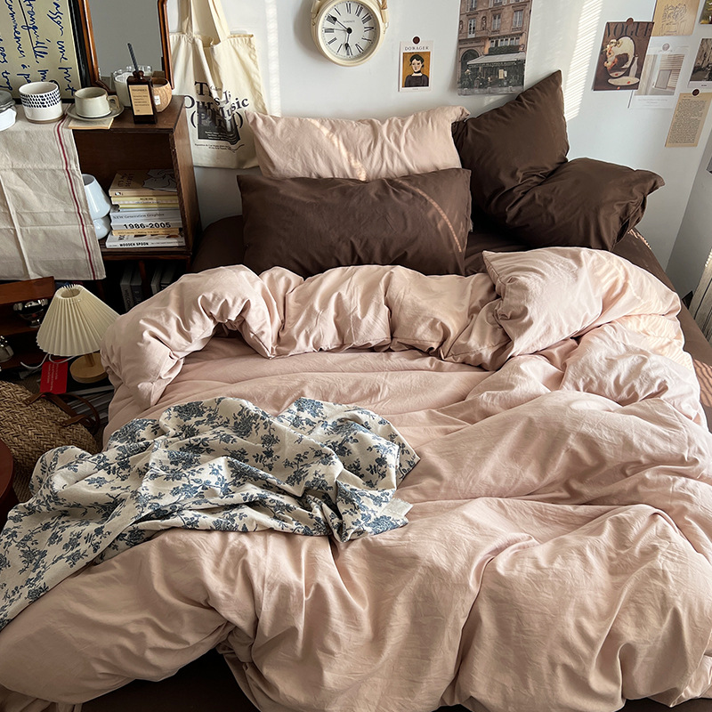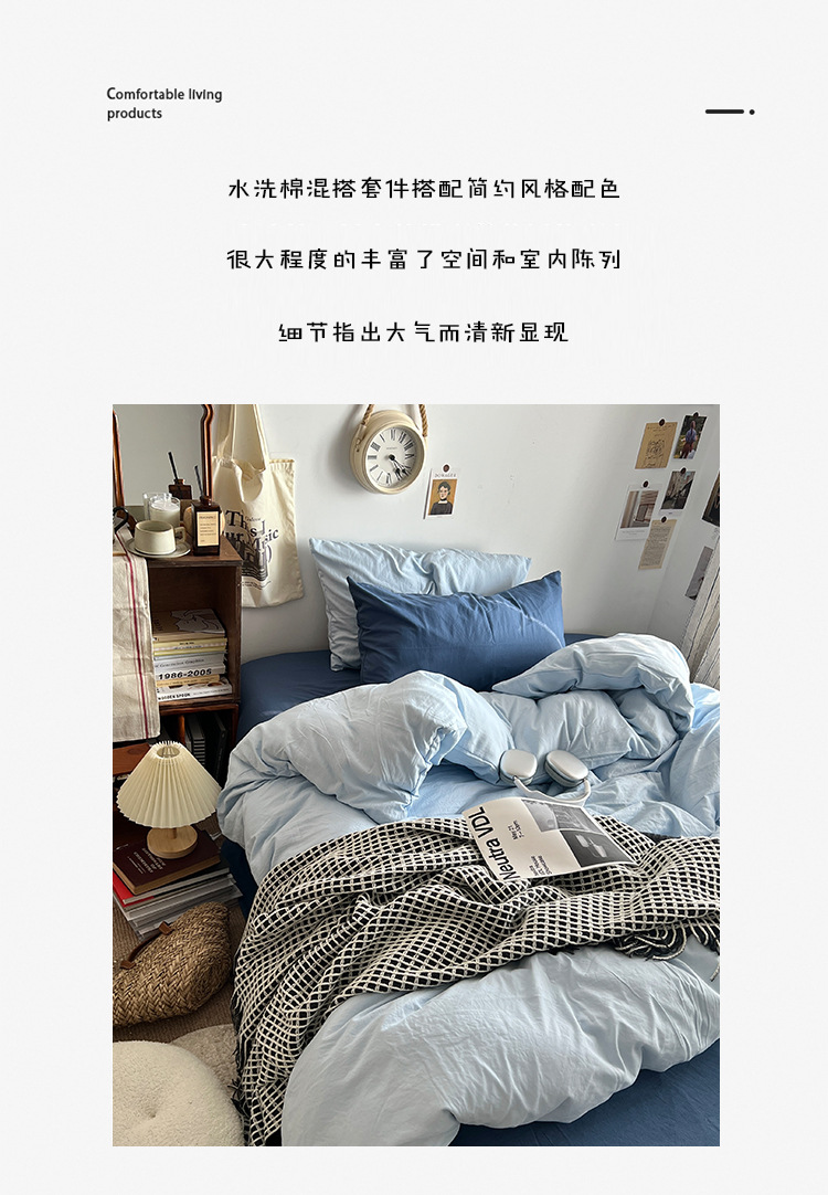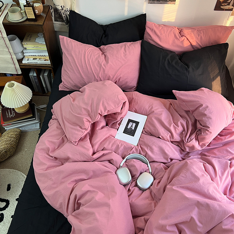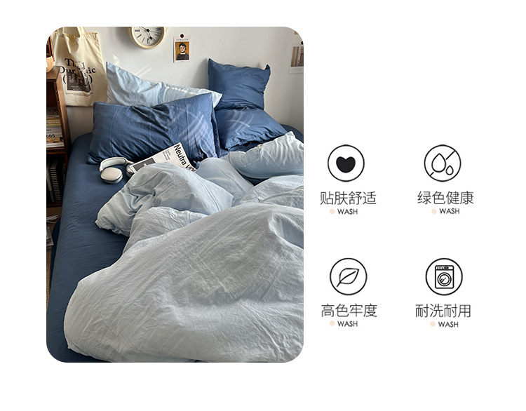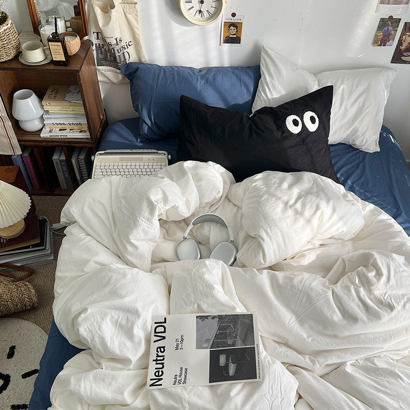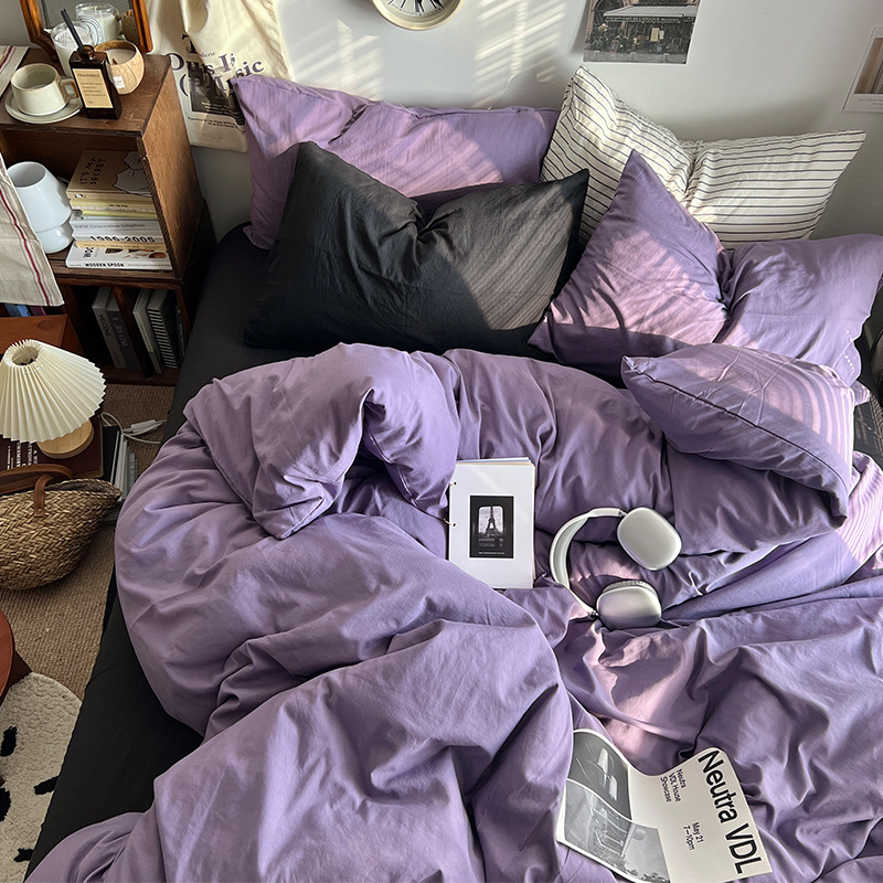 간단한 솔리드 컬러 더블 피스 4 피스 세트 세척 코튼 클래스 모성 및 유아 학년 더블 학생 기숙사 시트 퀼트 커버 3 피스 세트스토어 가기