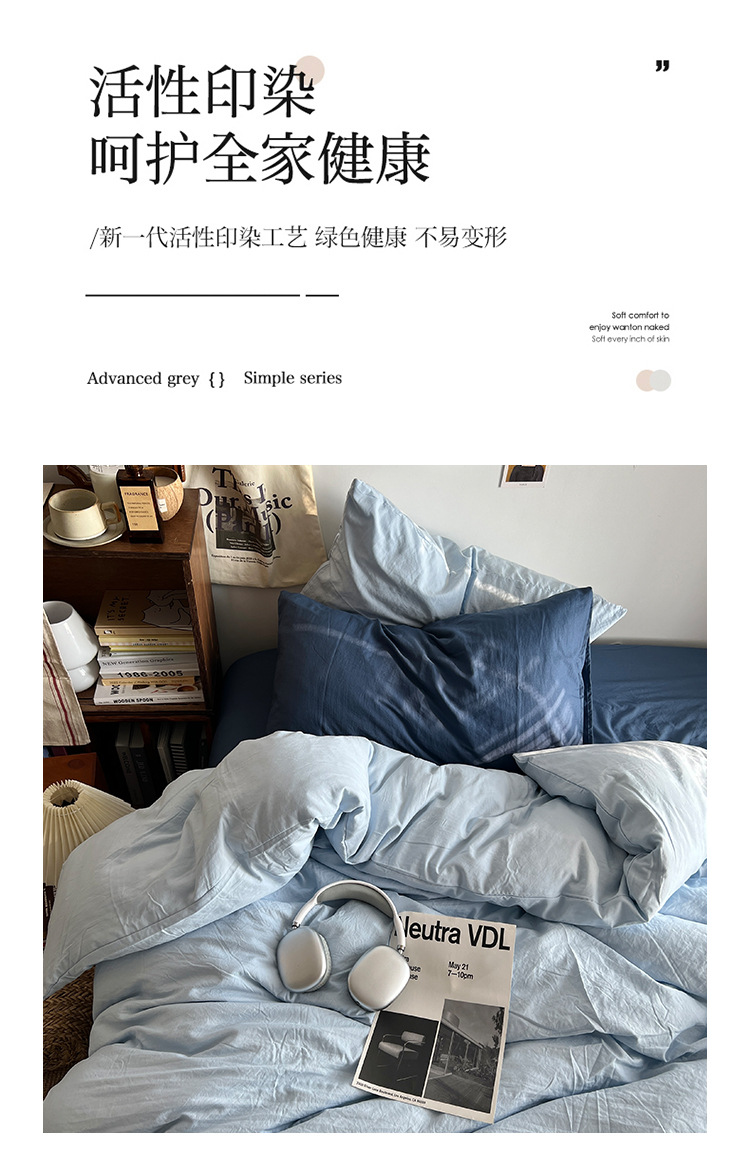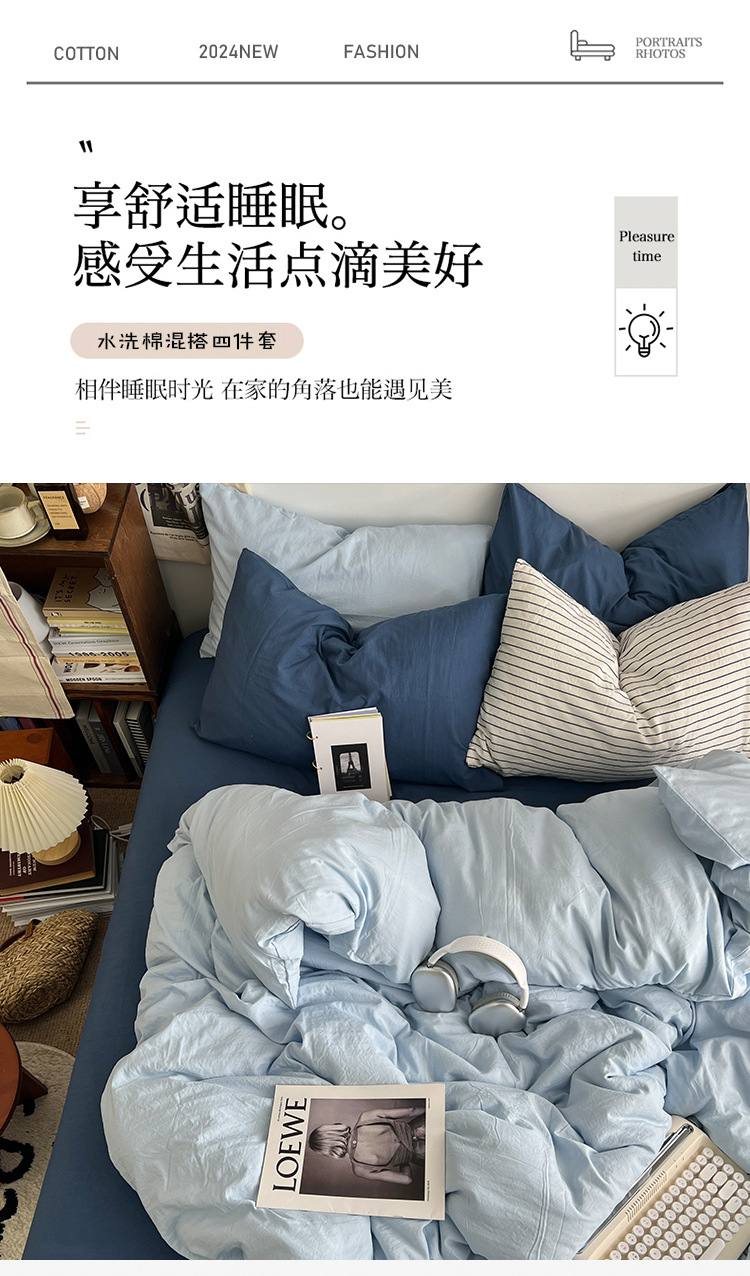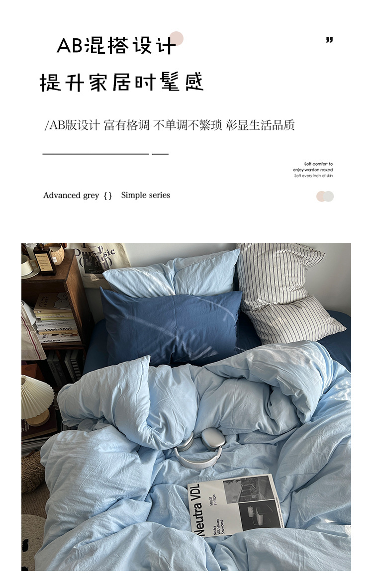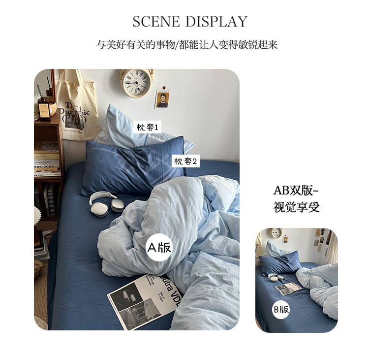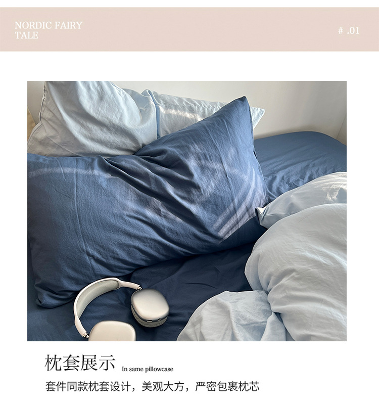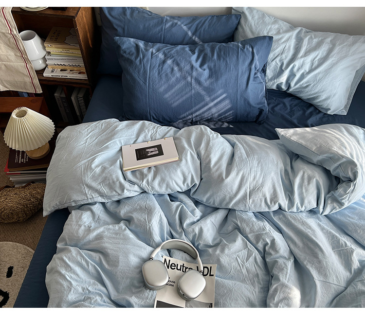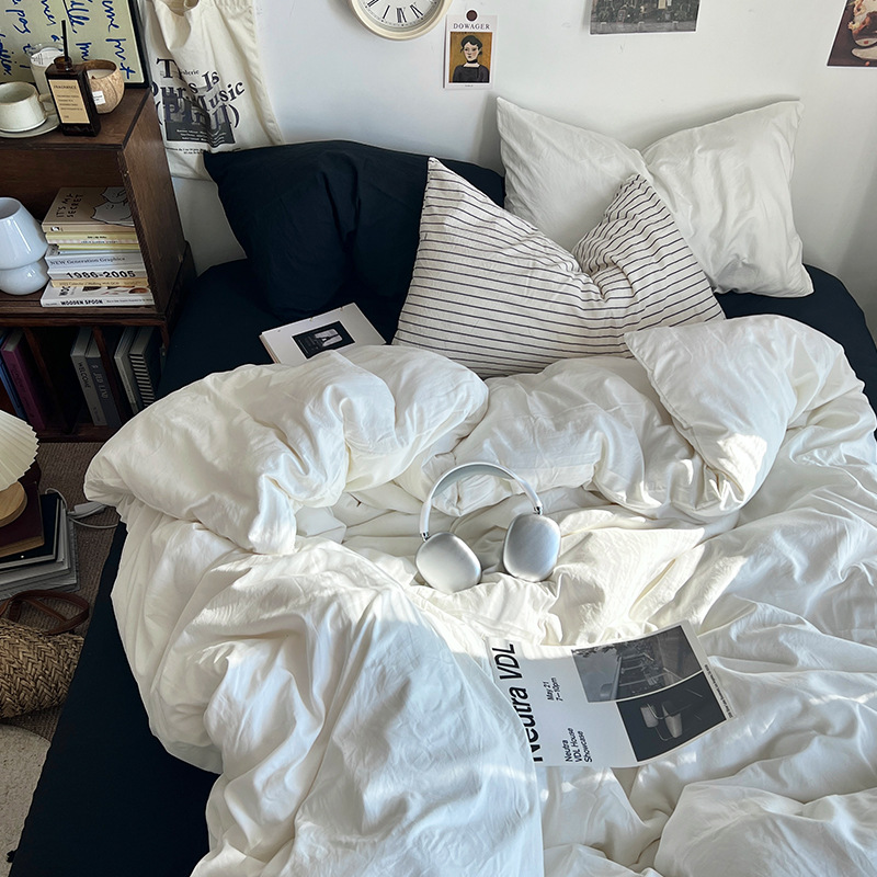 간단한 솔리드 컬러 더블 피스 4 피스 세트 세척 코튼 클래스 모성 및 유아 학년 더블 학생 기숙사 시트 퀼트 커버 3 피스 세트스토어 가기