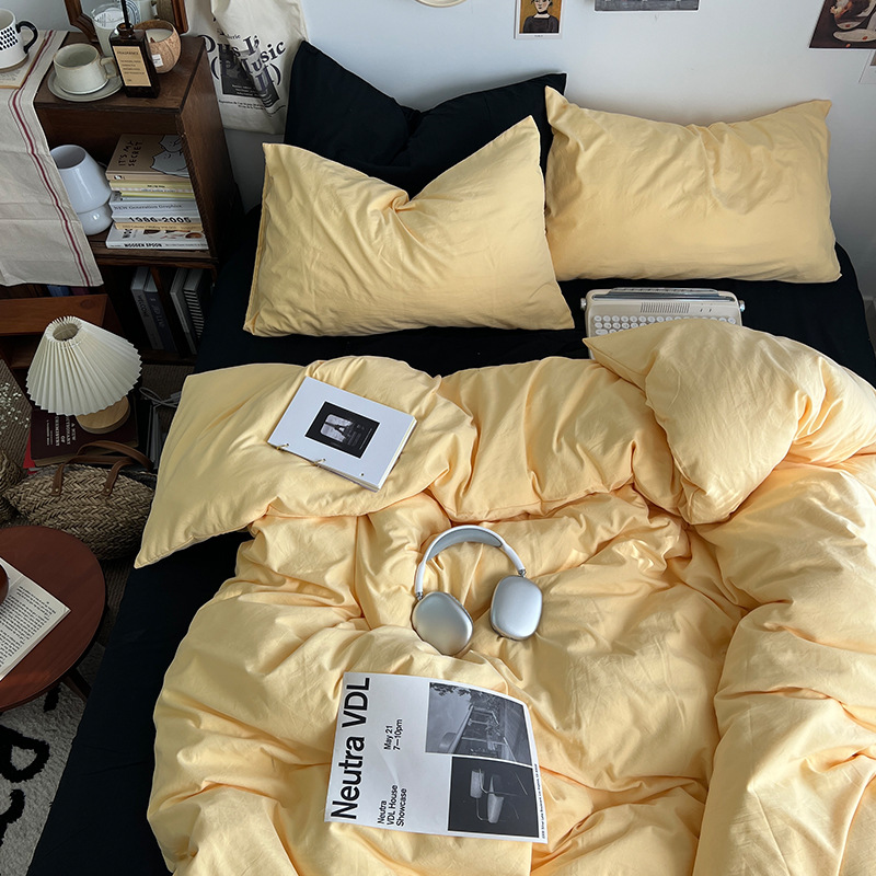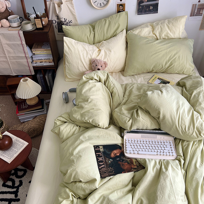 간단한 솔리드 컬러 더블 피스 4 피스 세트 세척 코튼 클래스 모성 및 유아 학년 더블 학생 기숙사 시트 퀼트 커버 3 피스 세트