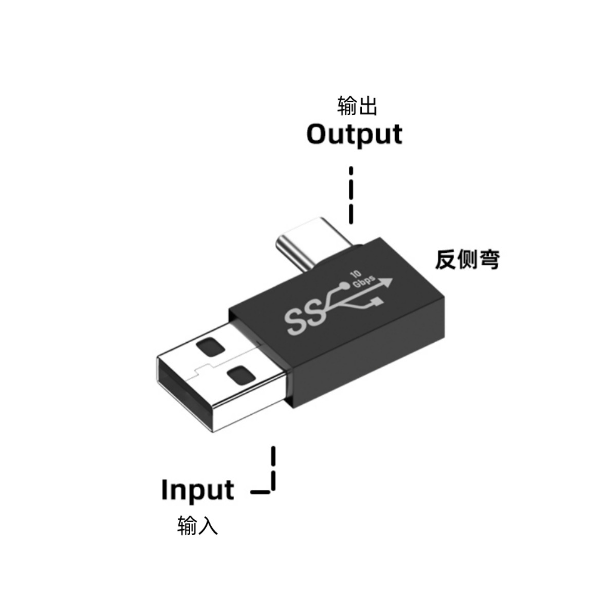 USB转接头type-c公对母U型转换器3.2Gen2高速传输10Gbps弯头OTG