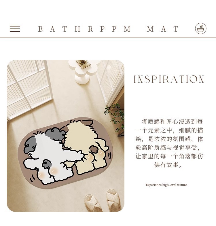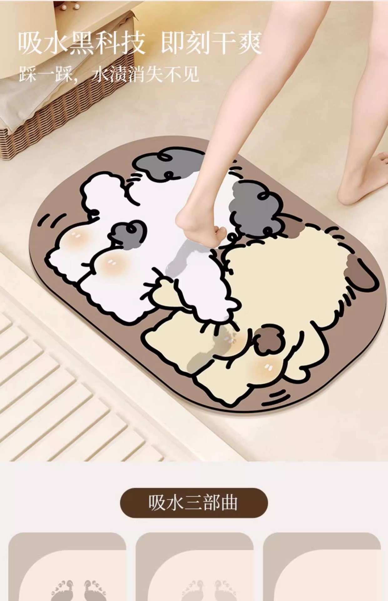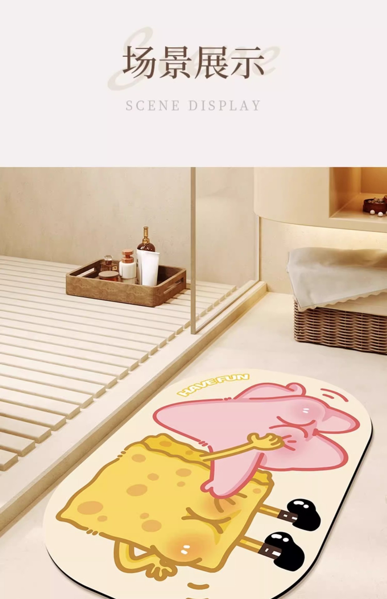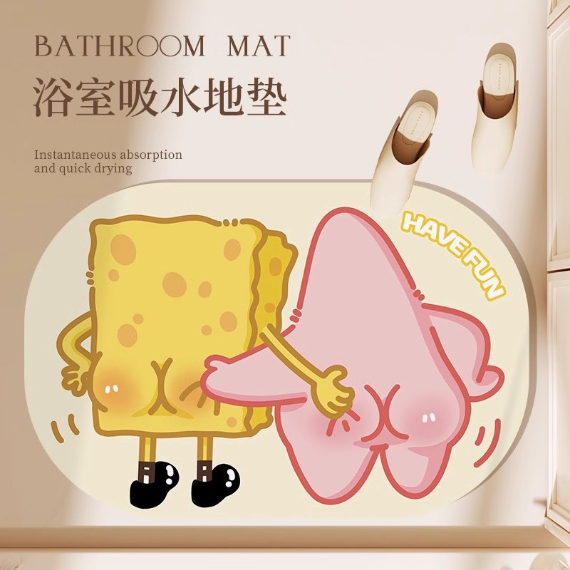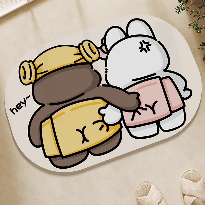 만화 욕실 Diatom 진흙 바닥 매트 화장실 물 흡수성 빠른 건조 발 매트 가정용 화장실 문 미끄럼 방지 더러운 바닥 매트스토어 가기