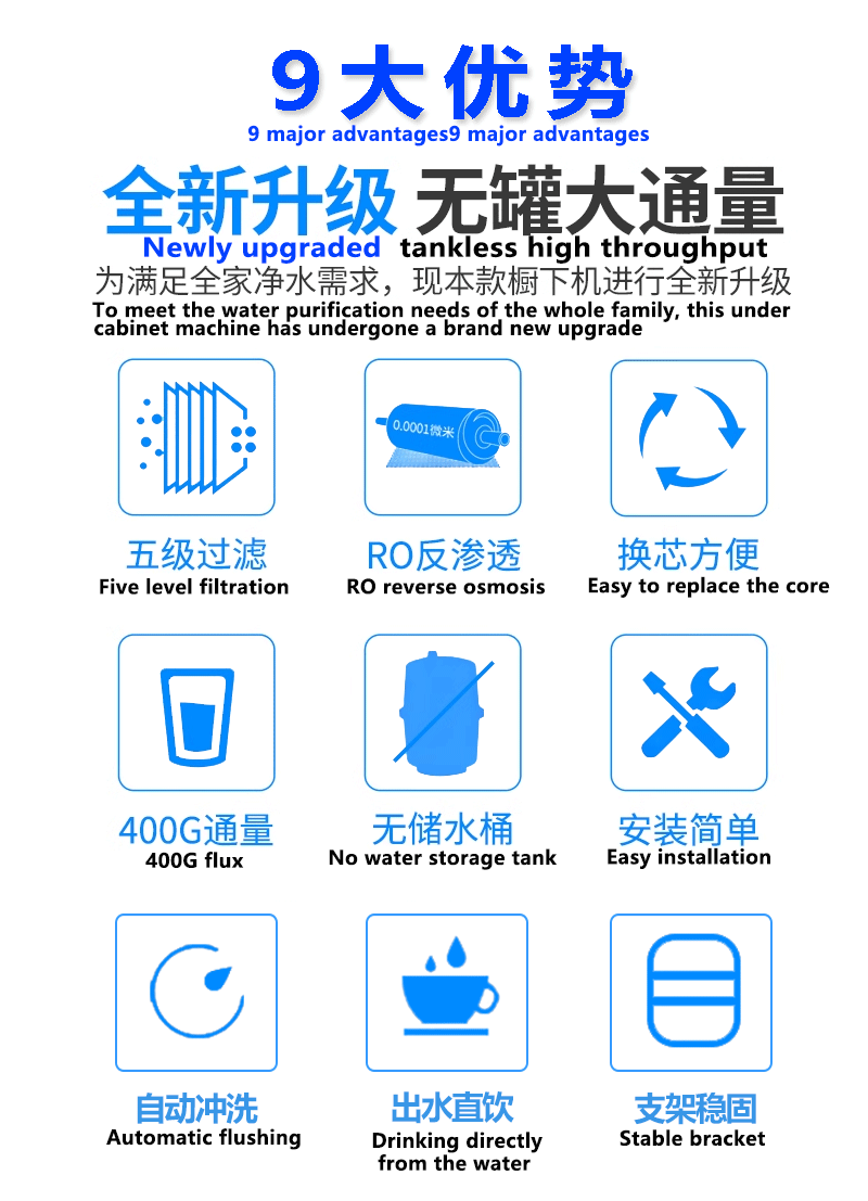 600G 큰 흐름 정수기 로 역 삼투압 정수기 800G 상업적인 작은 수돗물 필터 직접 마시는 기계스토어 가기