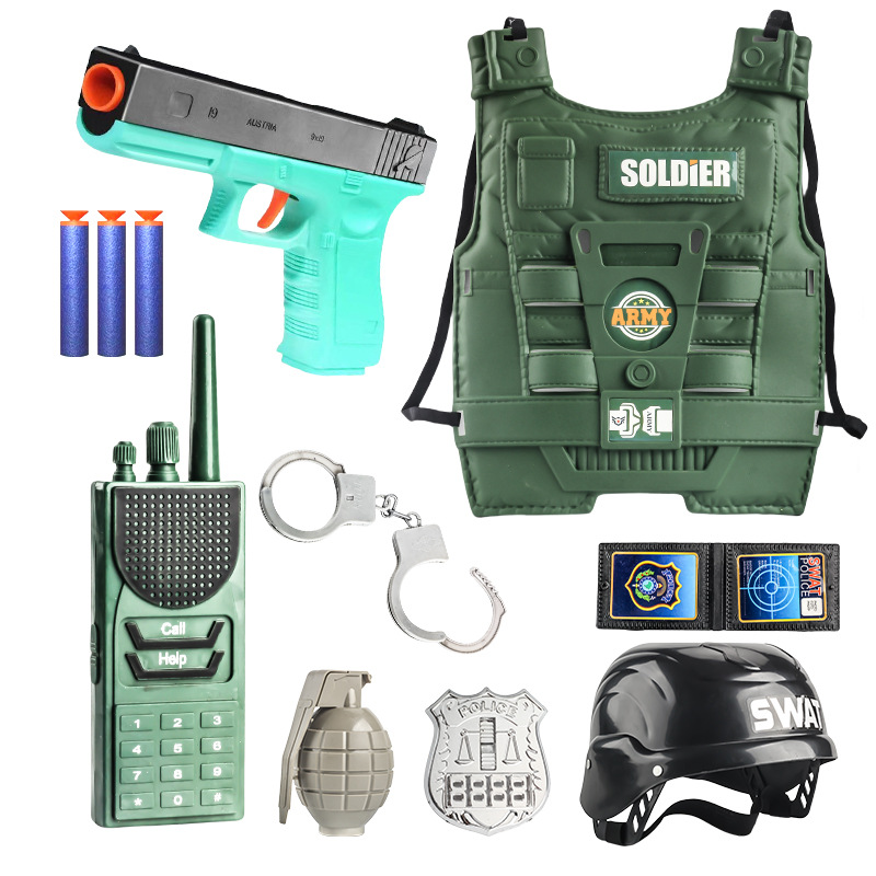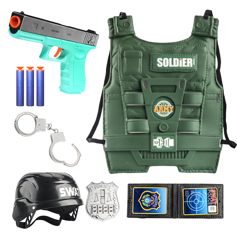 3 단계 헤드 치킨 전체 전술 장비 세트 어린이 장난감 군사 조끼 신호 총 역할 놀이 경찰 세트