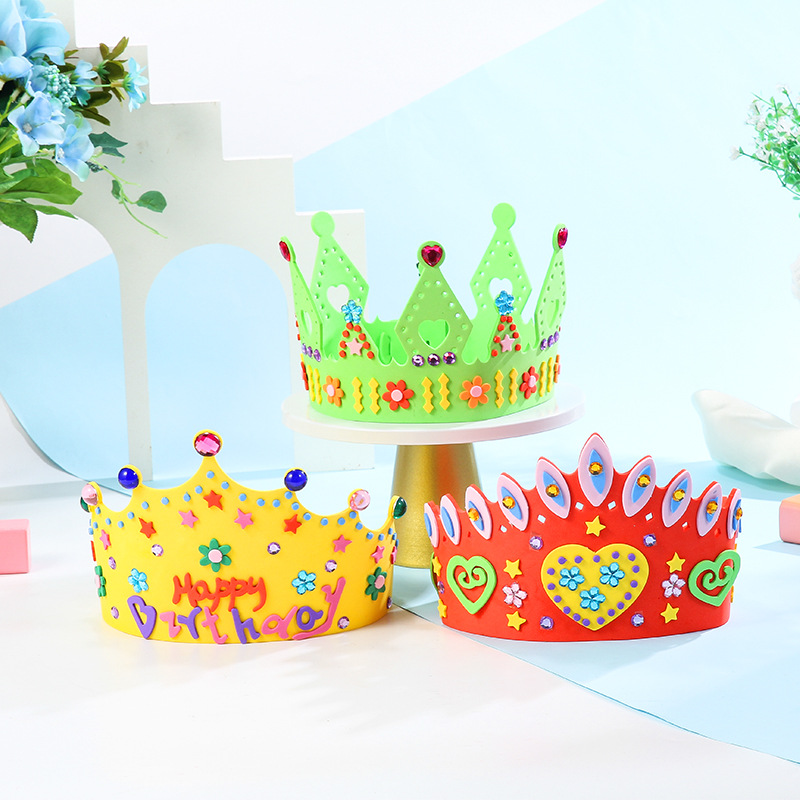 퍼즐 어린이 수공예 EVA 왕관 모자 스티커 장난감 생일 및 휴일 선물 DIY 스티커 재료 패키지 창의적스토어 가기