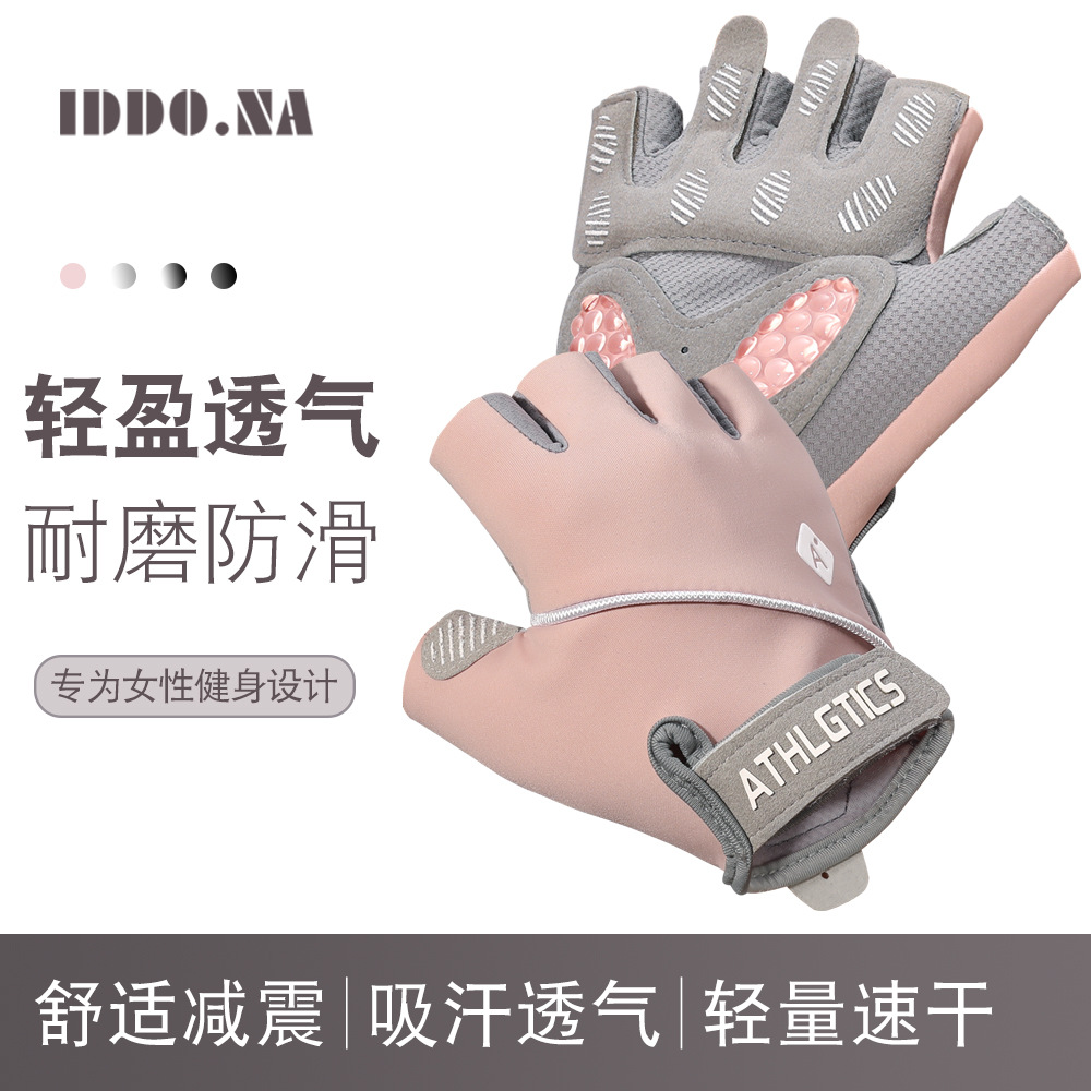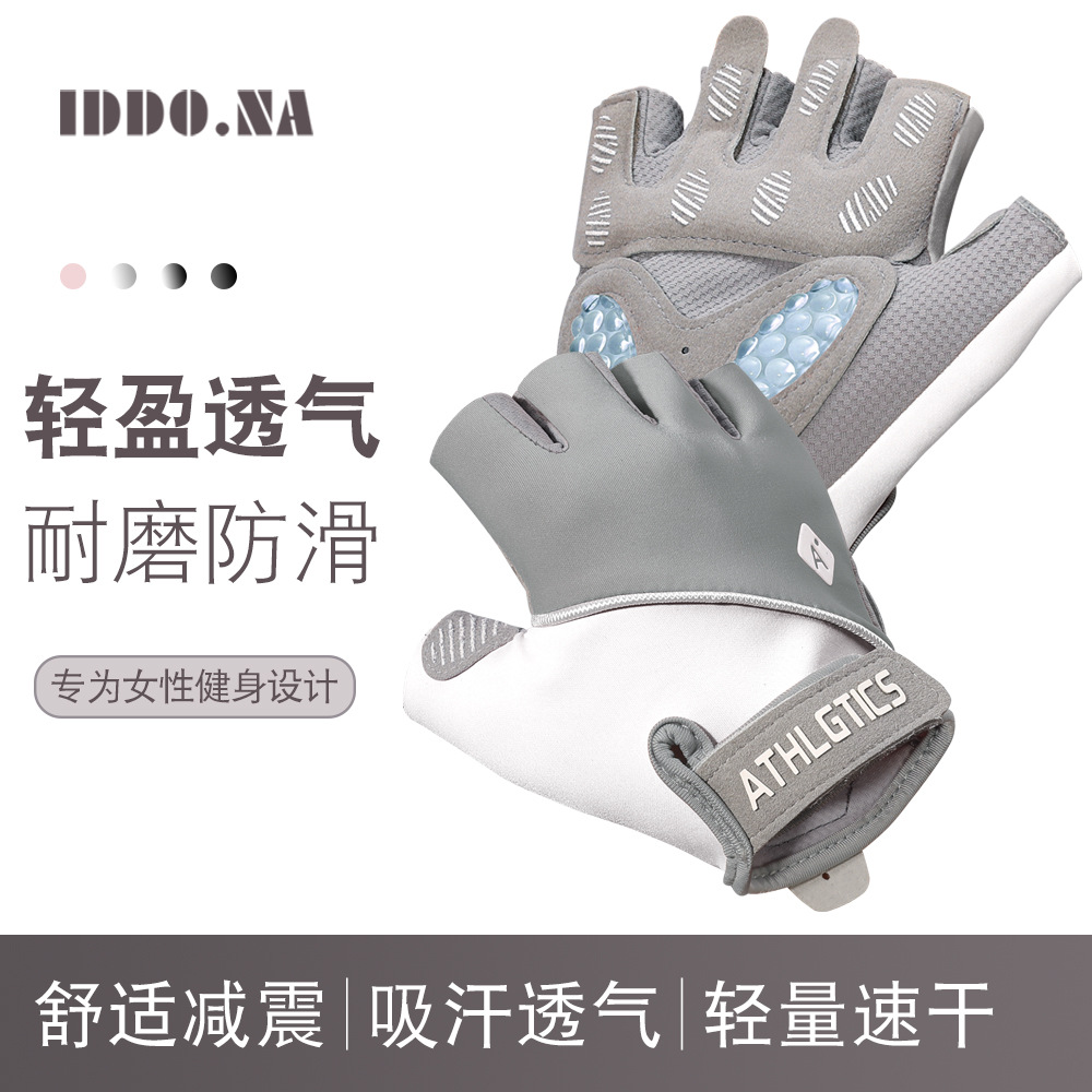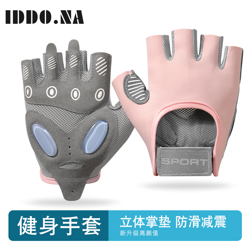 스포츠 피트니스 장갑 여성용 미끄럼 방지 에어 쿠션 충격 반 손가락 철 요가 아이스 실크 통기성 착용 방지 피트니스스토어 가기