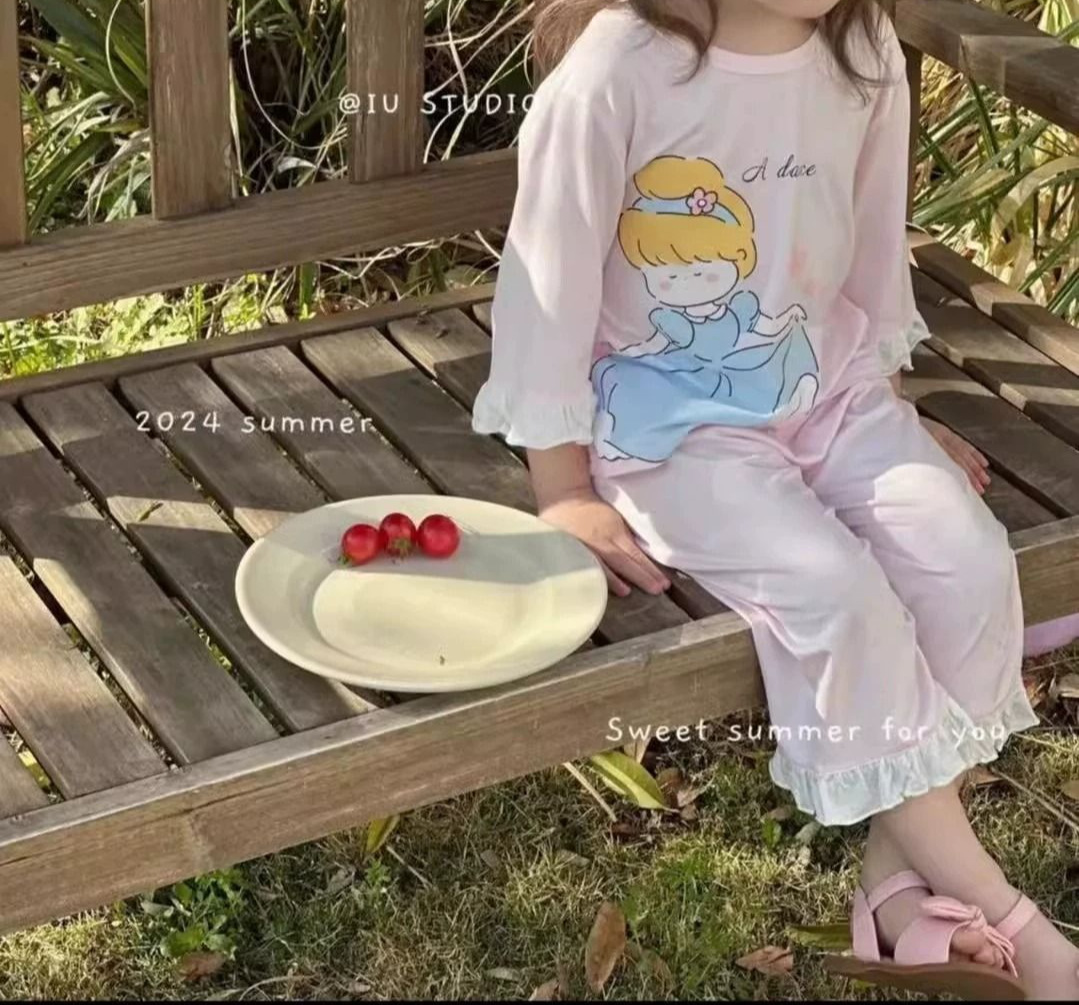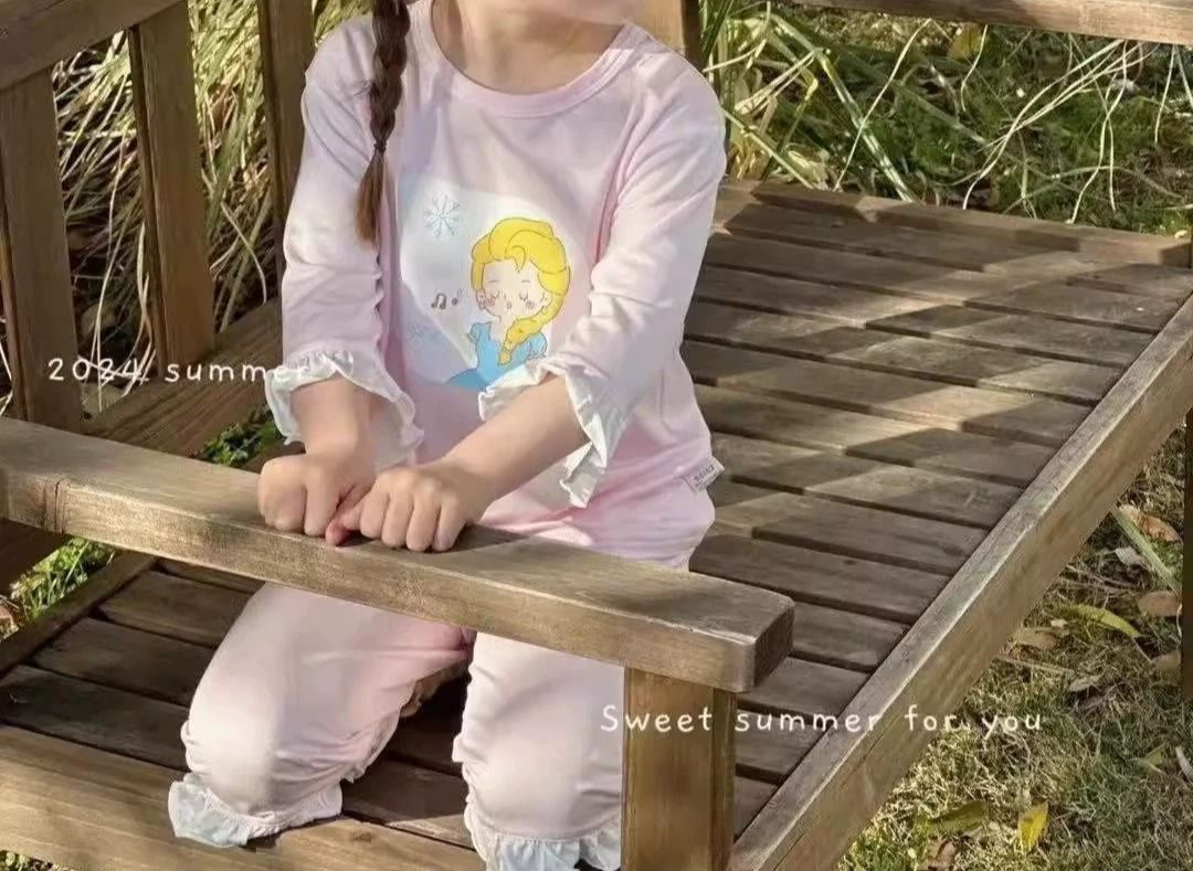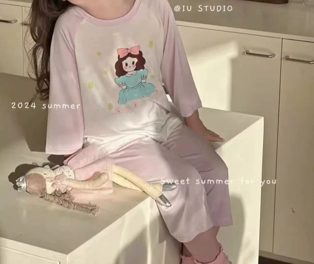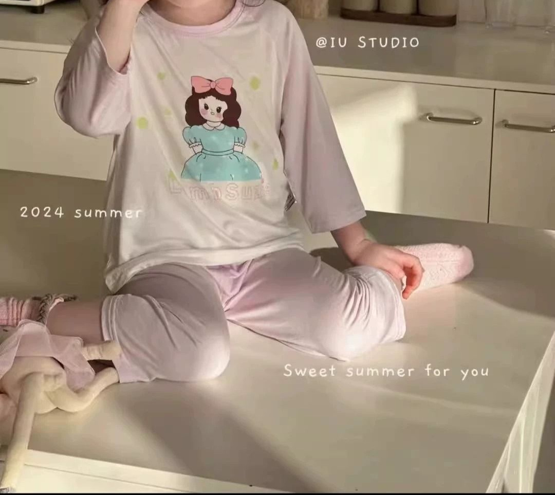 여름 잠옷 소녀 아기 7 점 반팔 홈 의류 세트 어린이 모달 얇은 0055A052