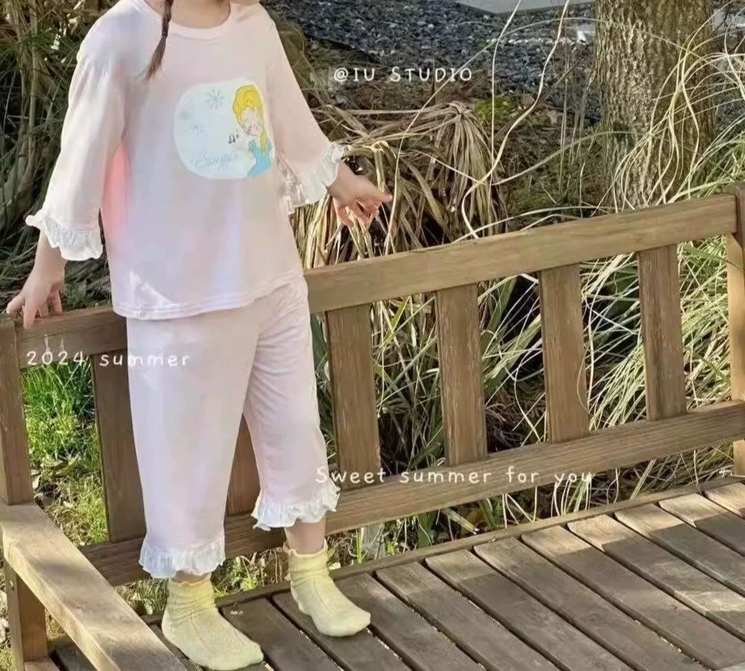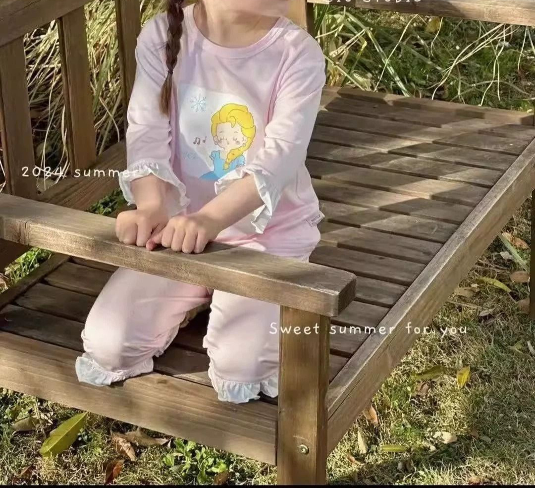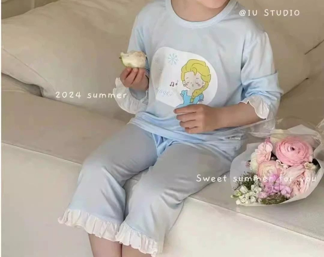 여름 잠옷 소녀 아기 7 점 반팔 홈 의류 세트 어린이 모달 얇은 0055A052