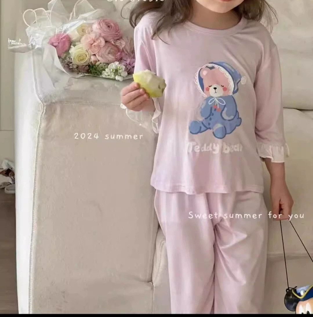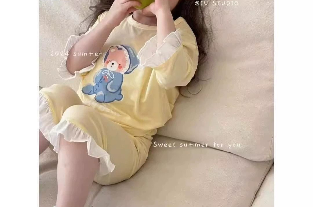 여름 잠옷 소녀 아기 7 점 반팔 홈 의류 세트 어린이 모달 얇은 0055A052스토어 가기