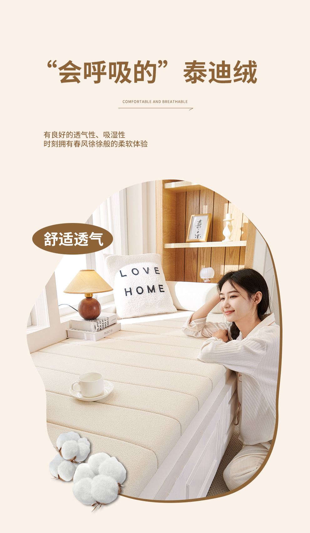 2024 새로운 양면 테디 벨벳 베이 창 매트 이동식 및 빨 수있는 사계절 유니버설 발코니 다다다미 매트