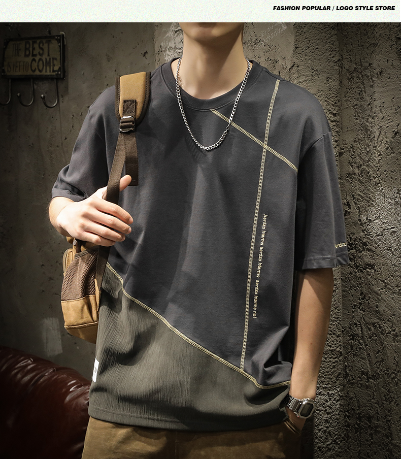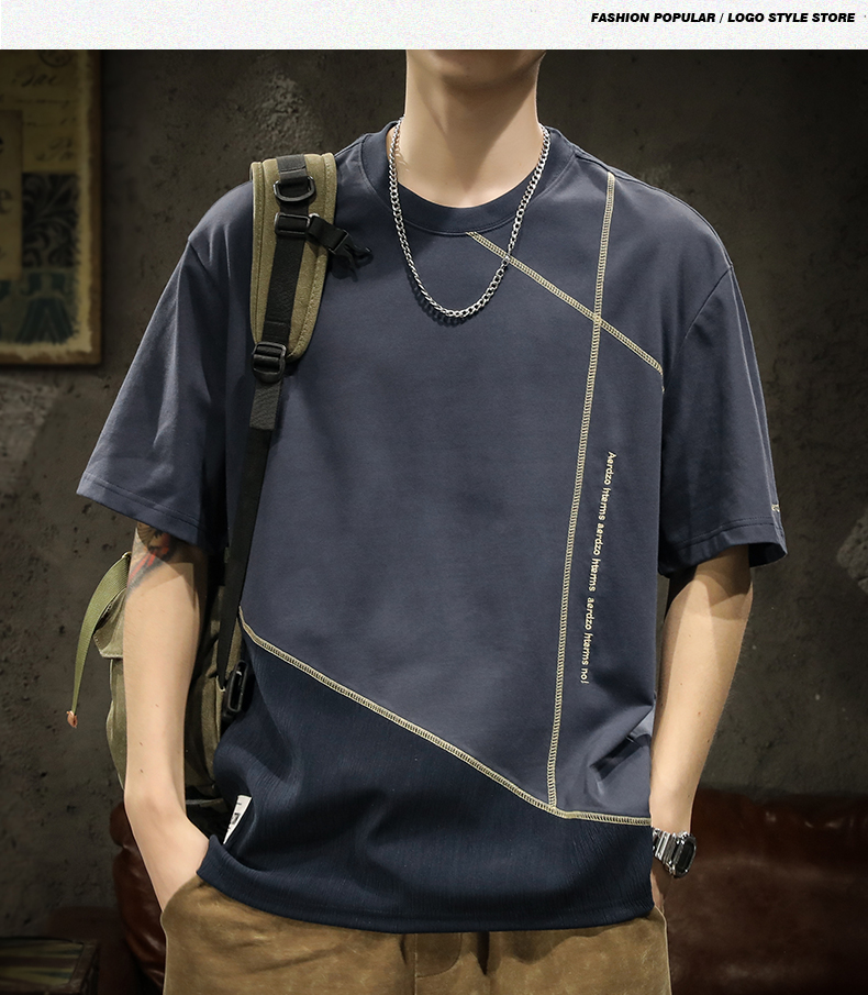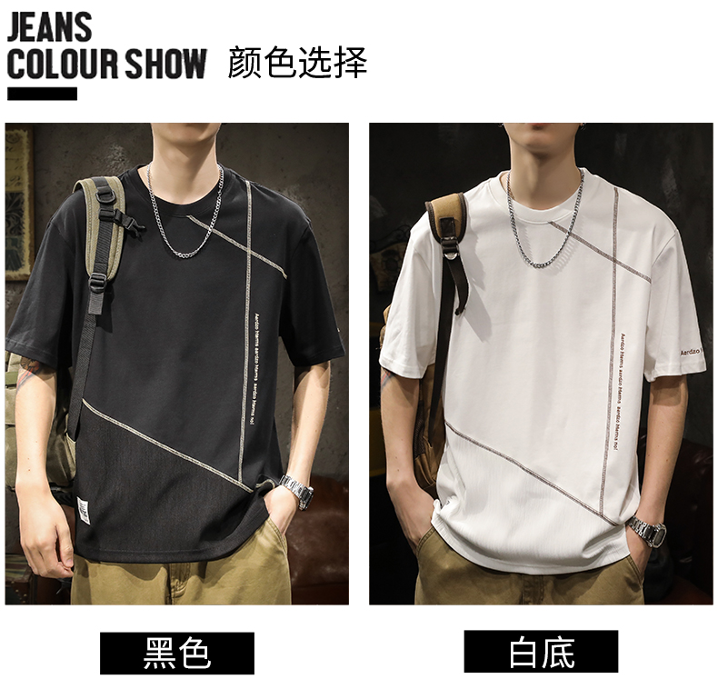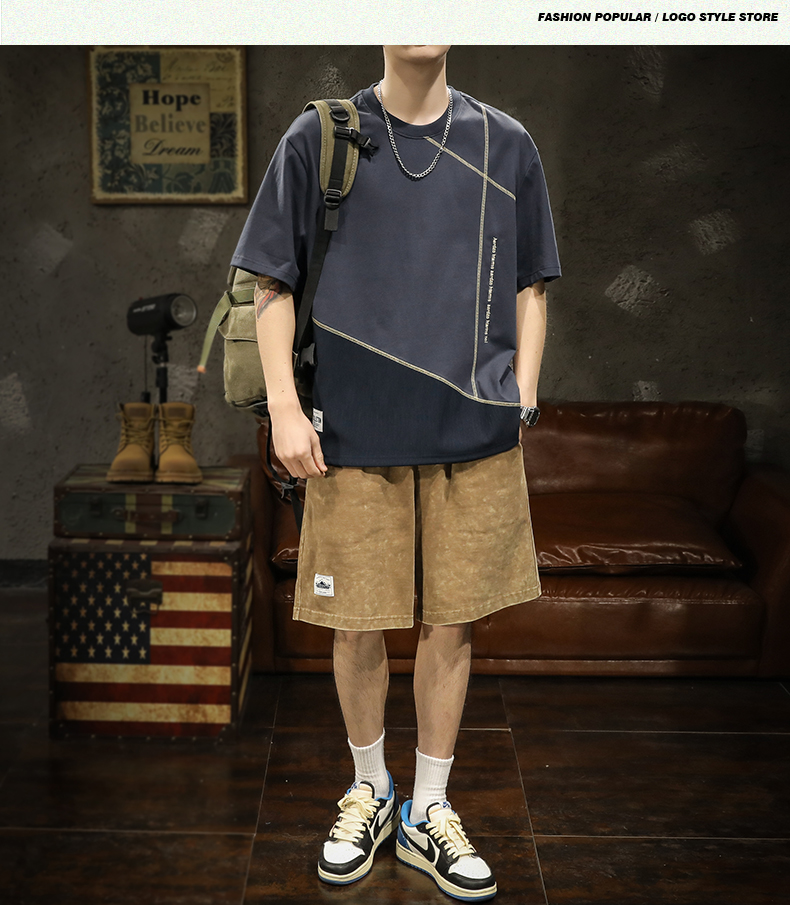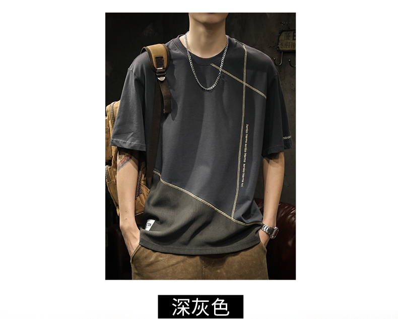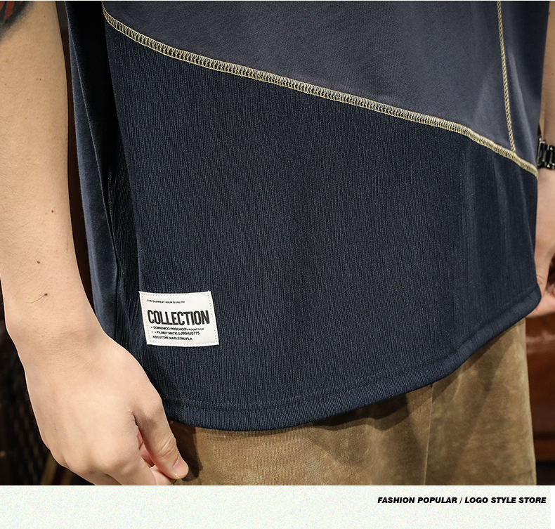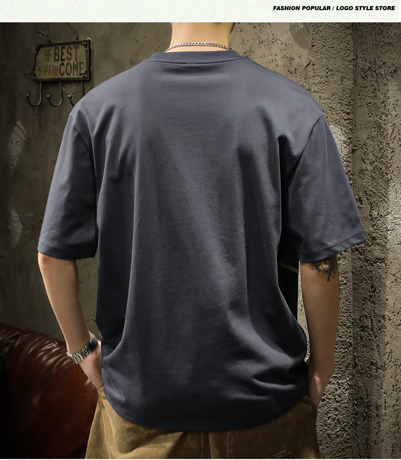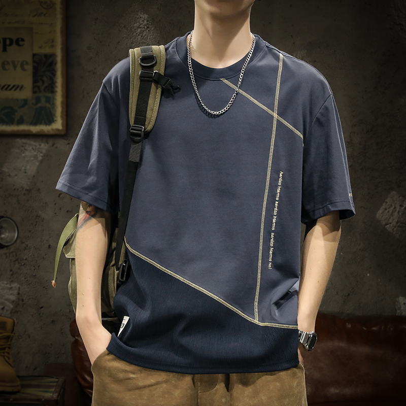 미국 무거운 반팔 티셔츠 남성용 여름 컬러 블록 느슨한 플러스 사이즈 남성 최고 유행 브랜드 라운드 순수 목면베이스 셔츠스토어 가기