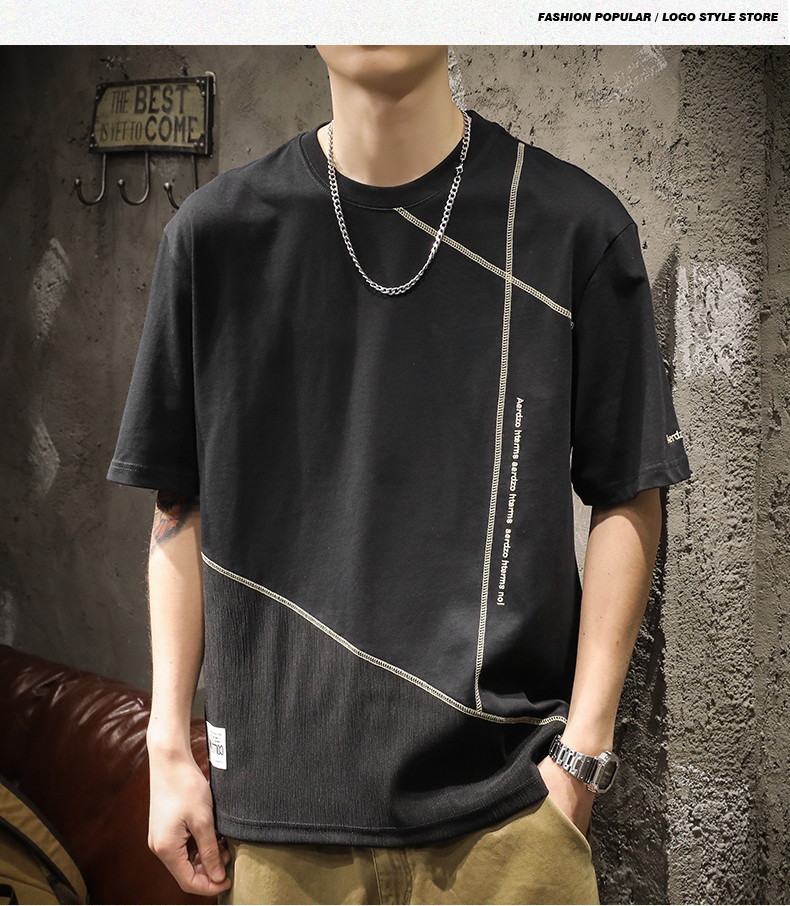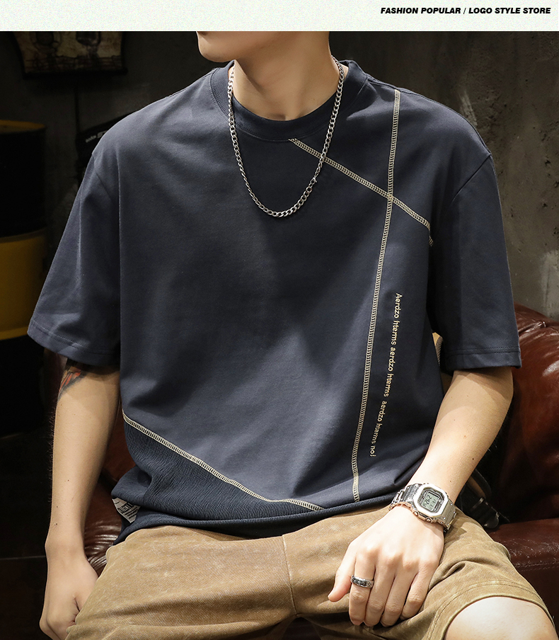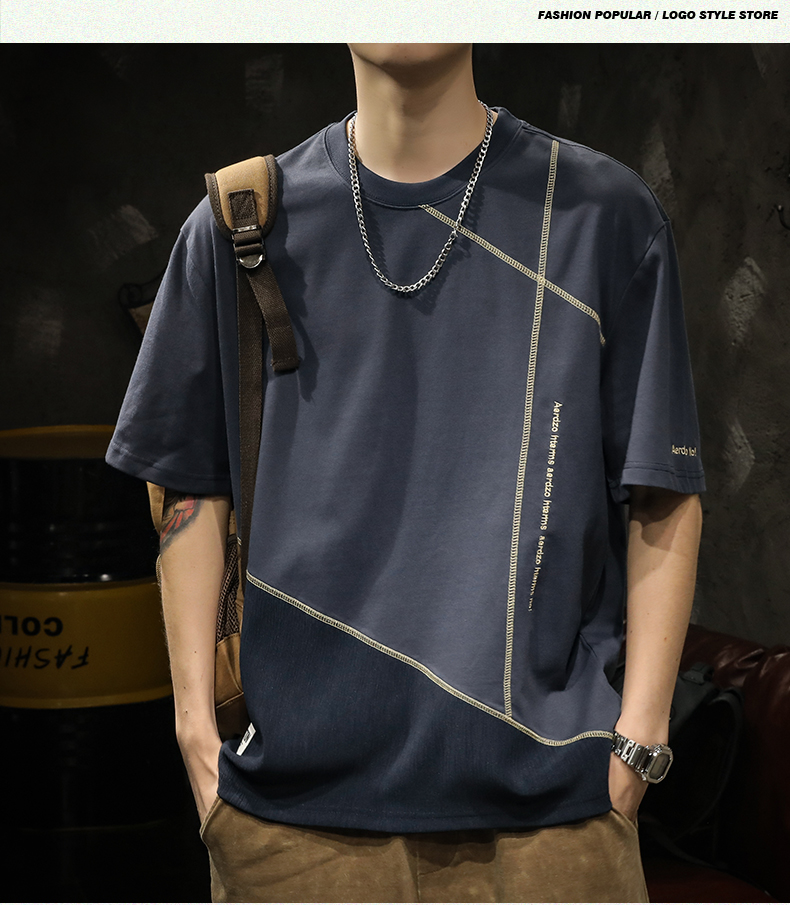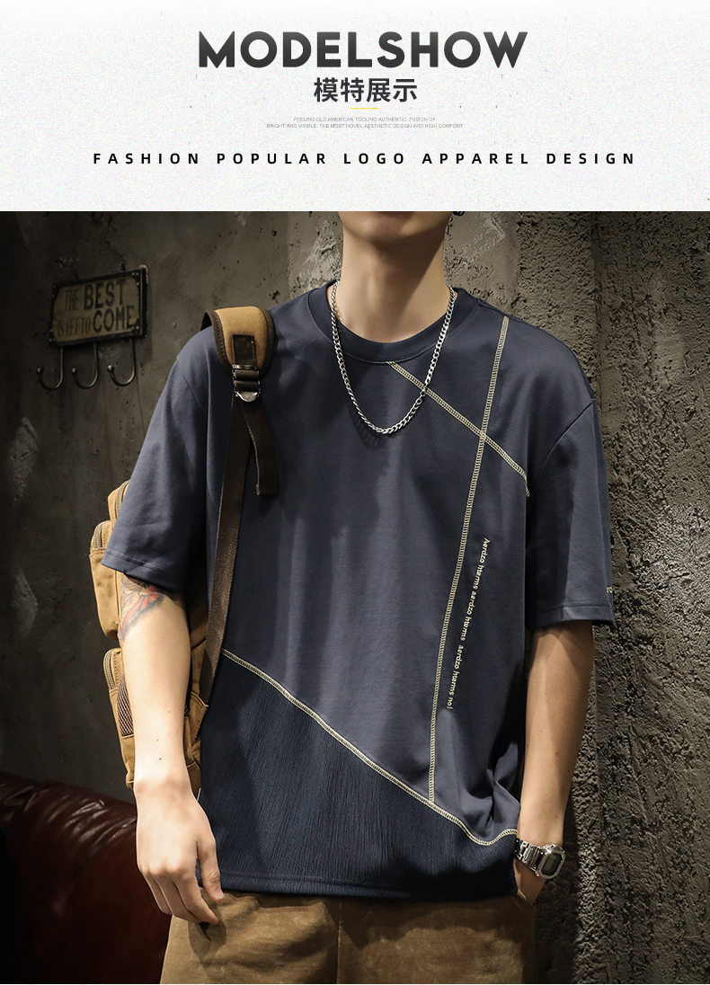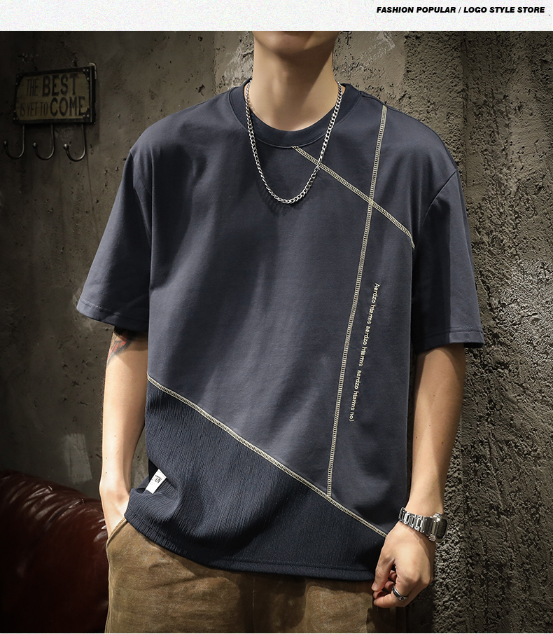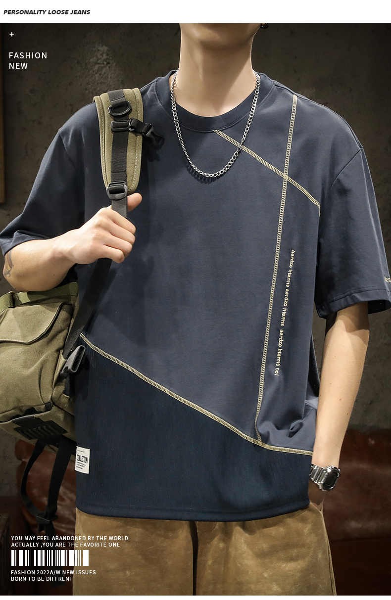 미국 무거운 반팔 티셔츠 남성용 여름 컬러 블록 느슨한 플러스 사이즈 남성 최고 유행 브랜드 라운드 순수 목면베이스 셔츠스토어 가기
