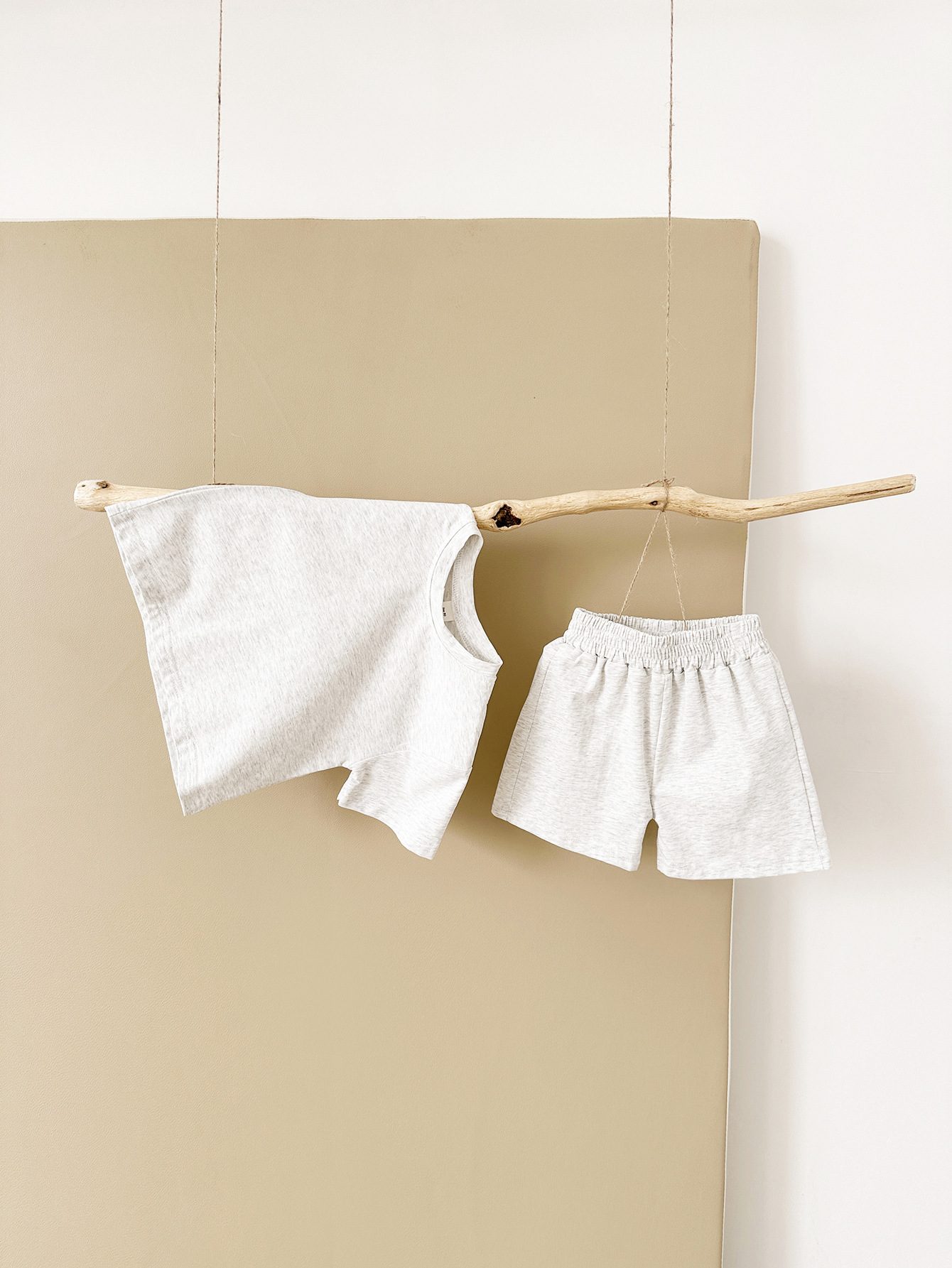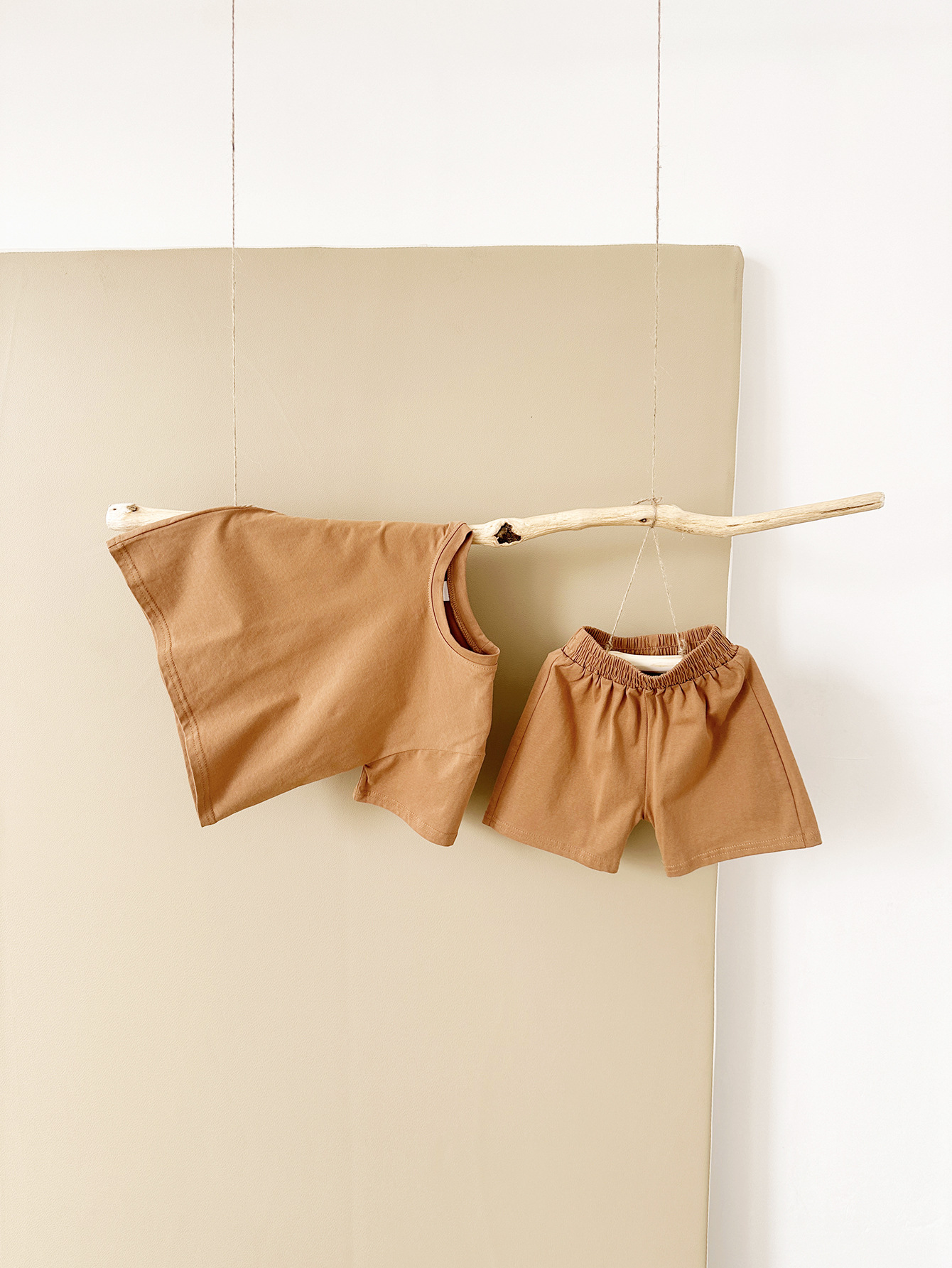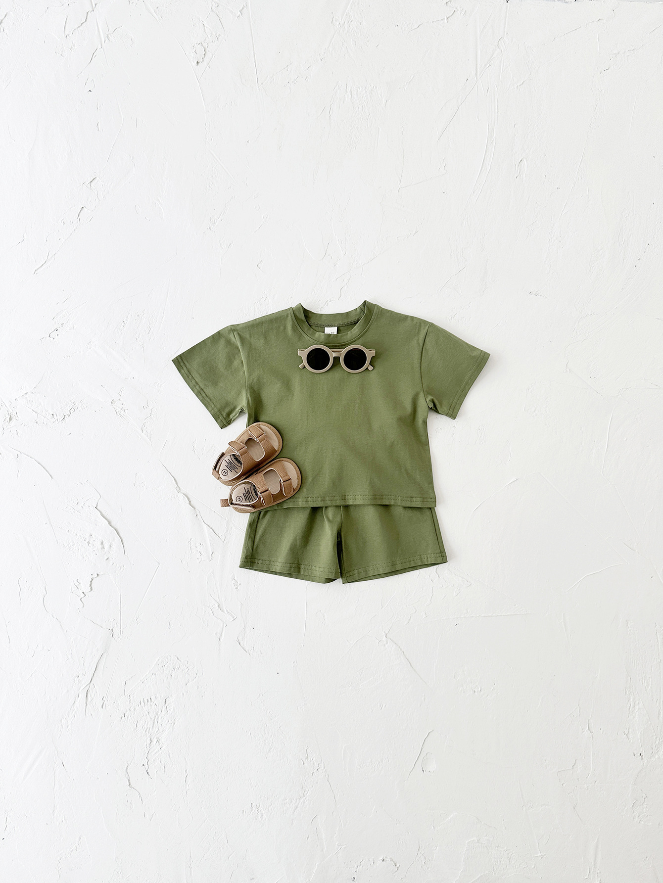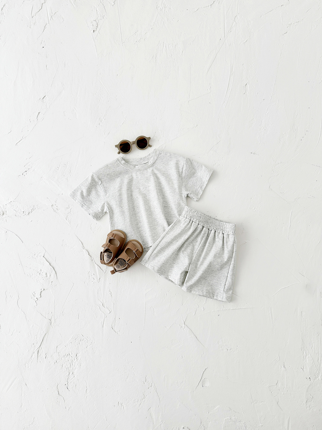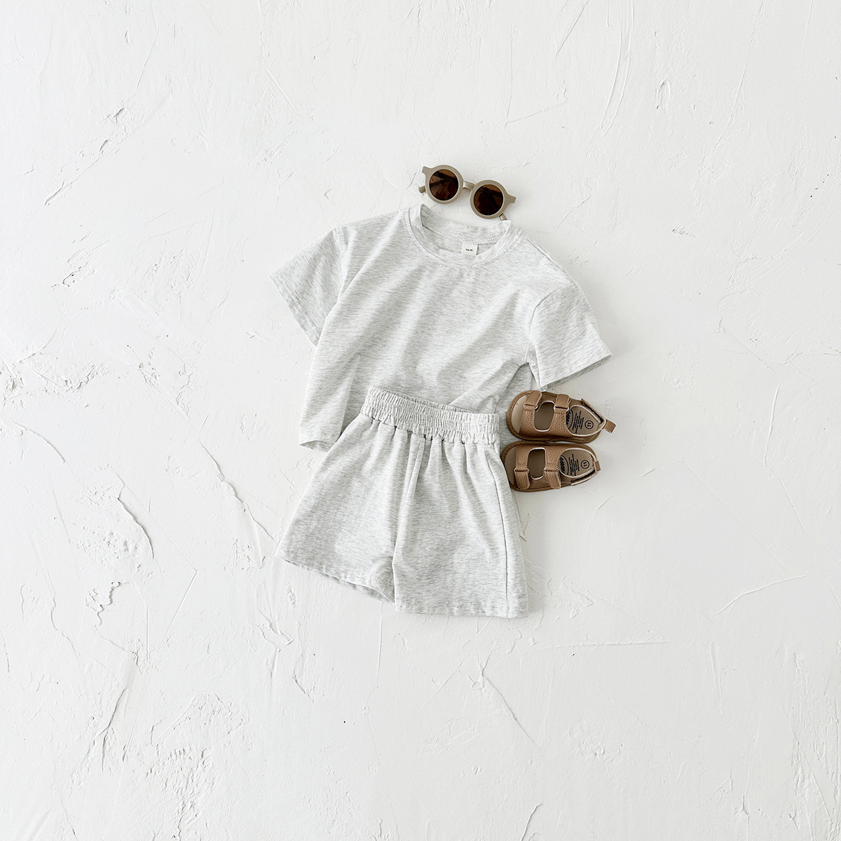 여름 어린이 신생아ㆍ소녀 단색 반팔 세트 남학생과 여학생을위한 한국식 투피스 국경 의상