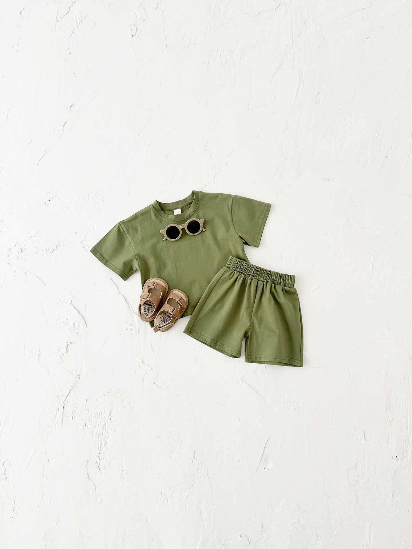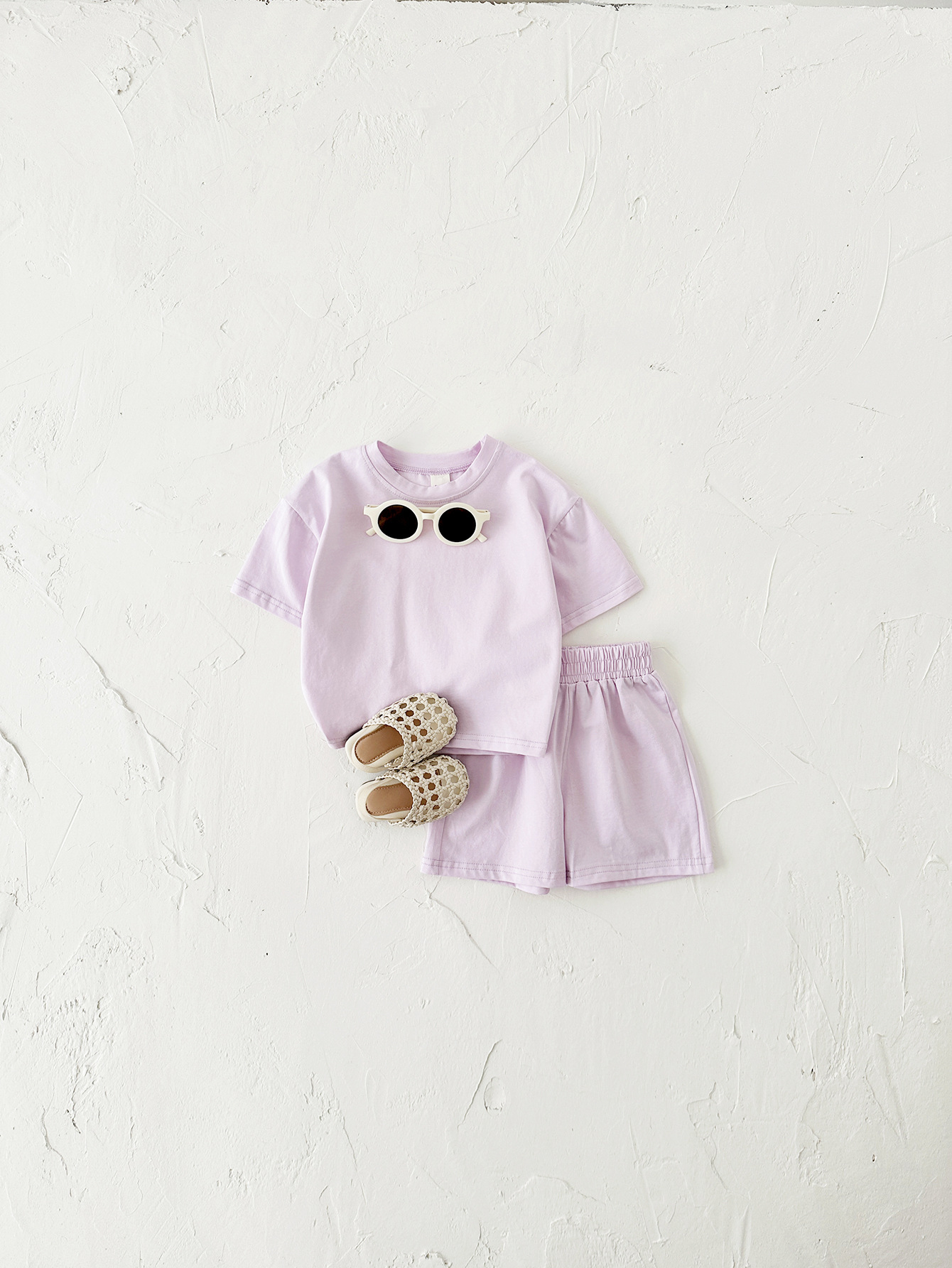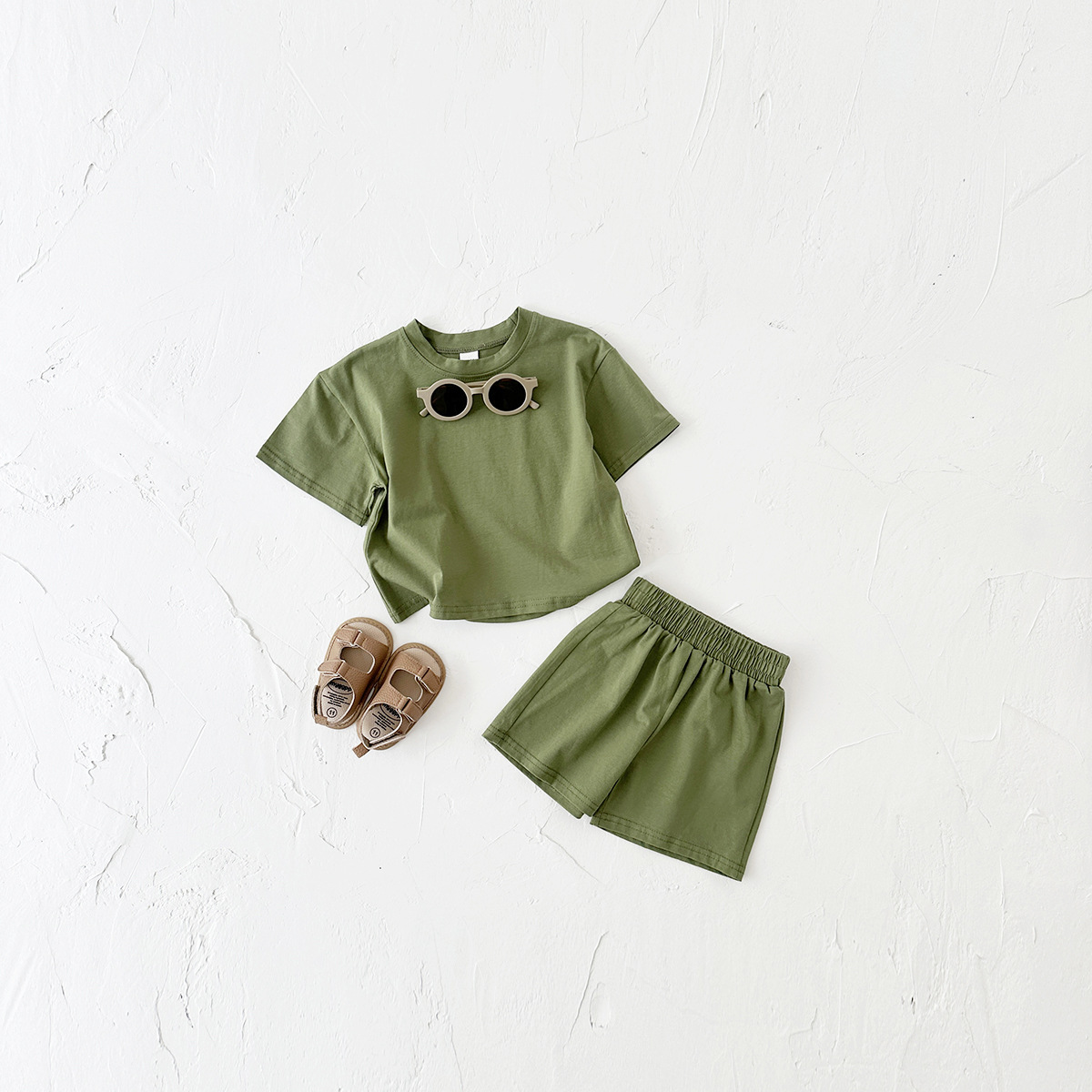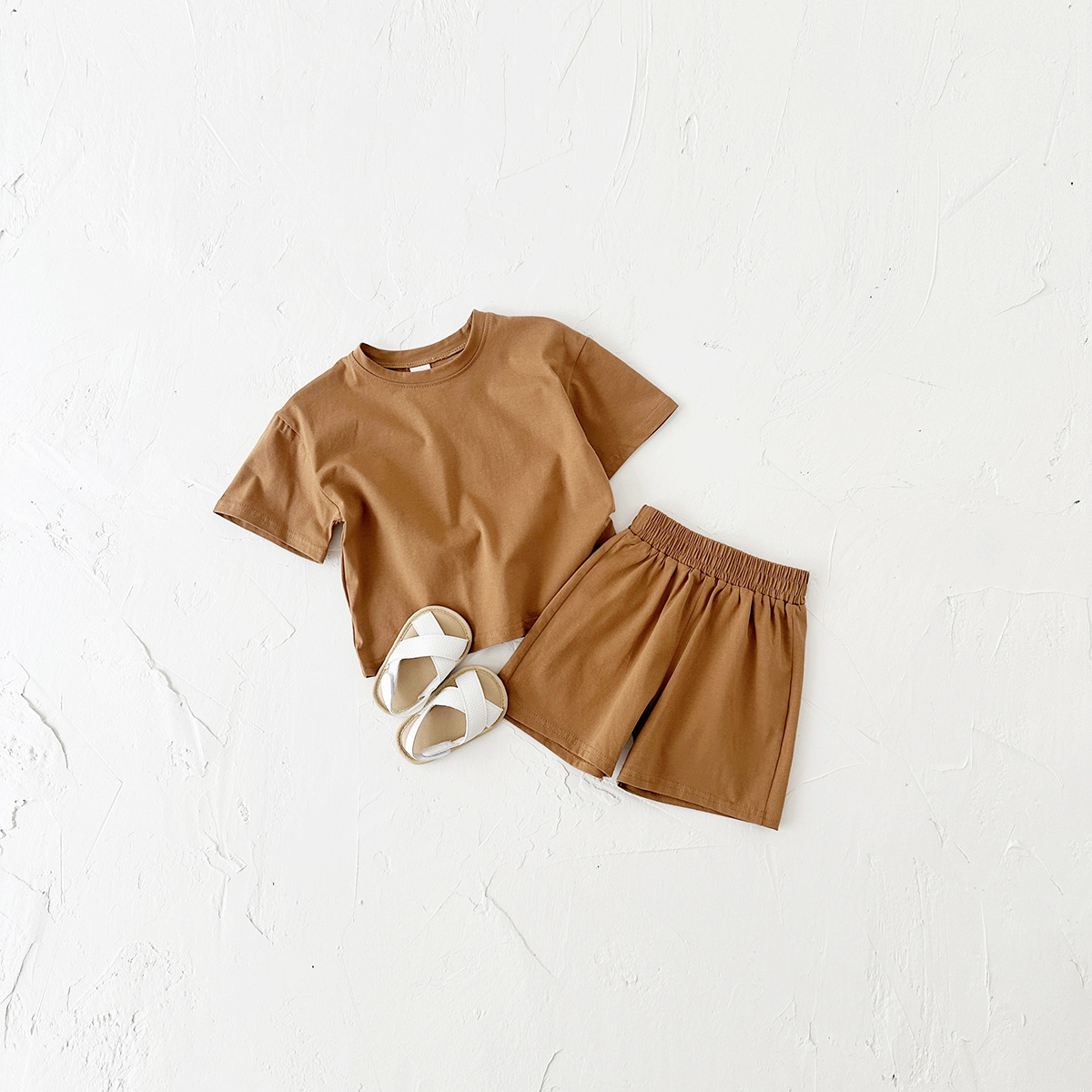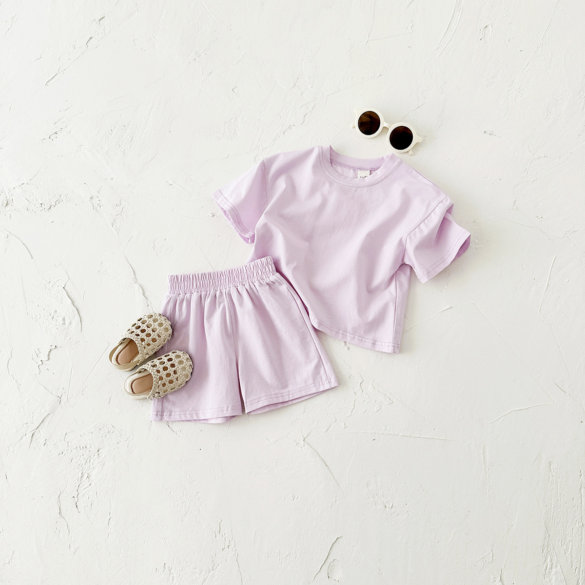 여름 어린이 신생아ㆍ소녀 단색 반팔 세트 남학생과 여학생을위한 한국식 투피스 국경 의상스토어 가기