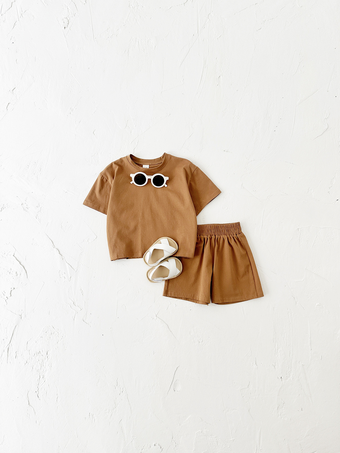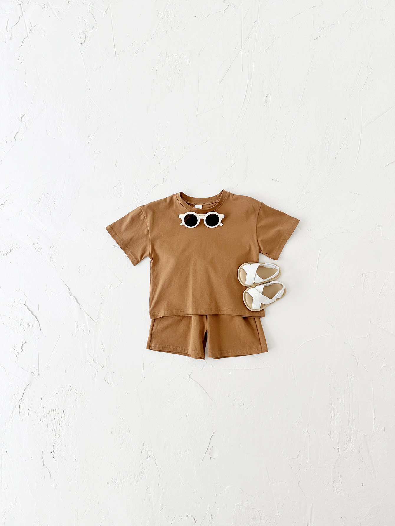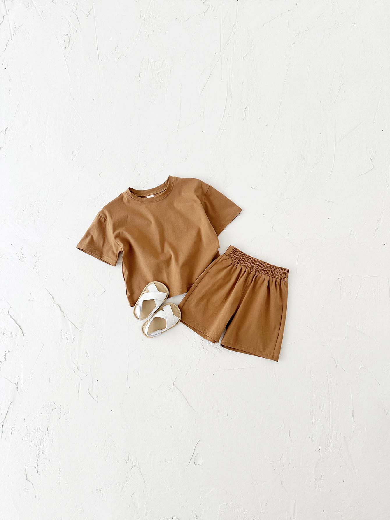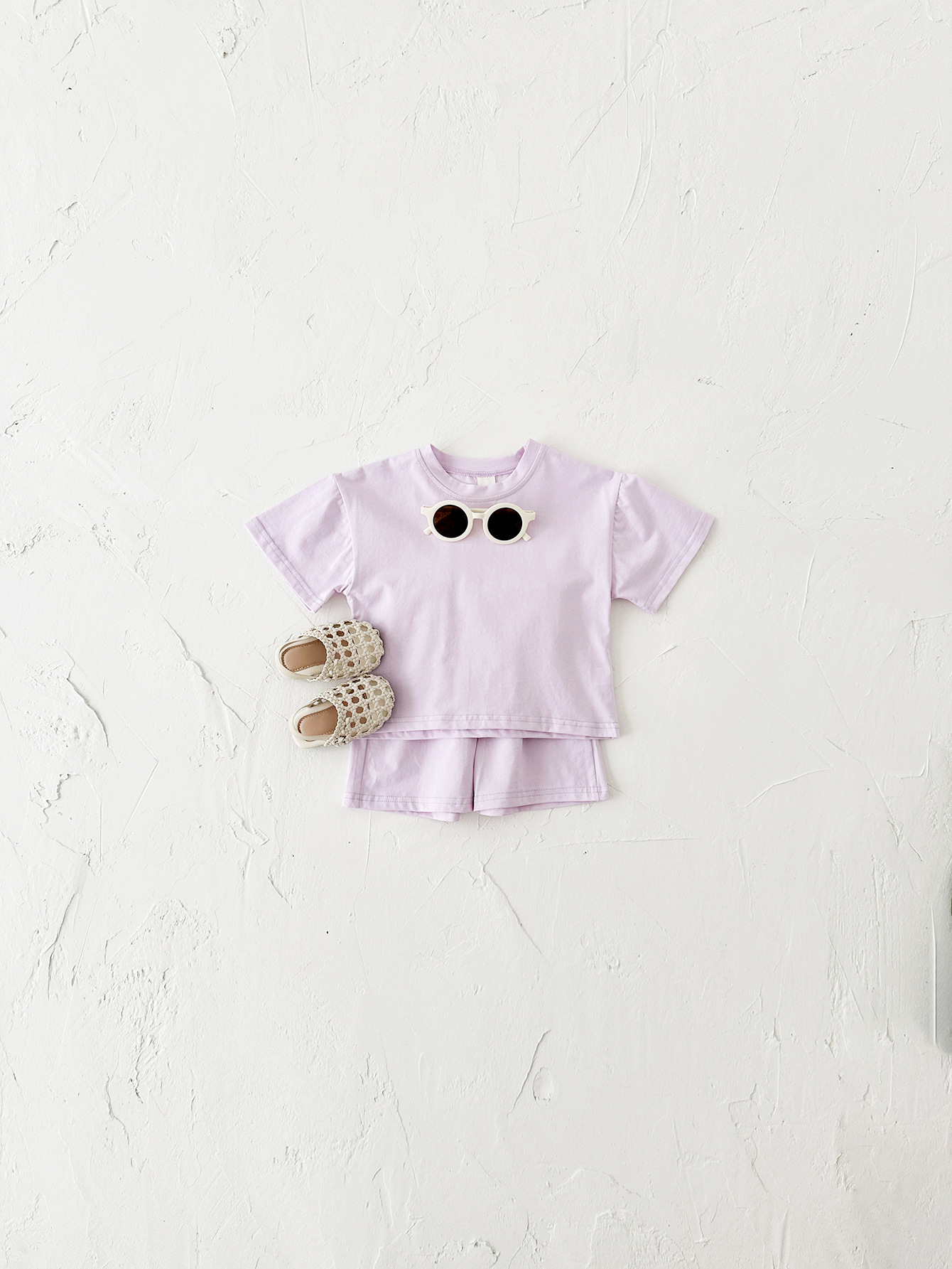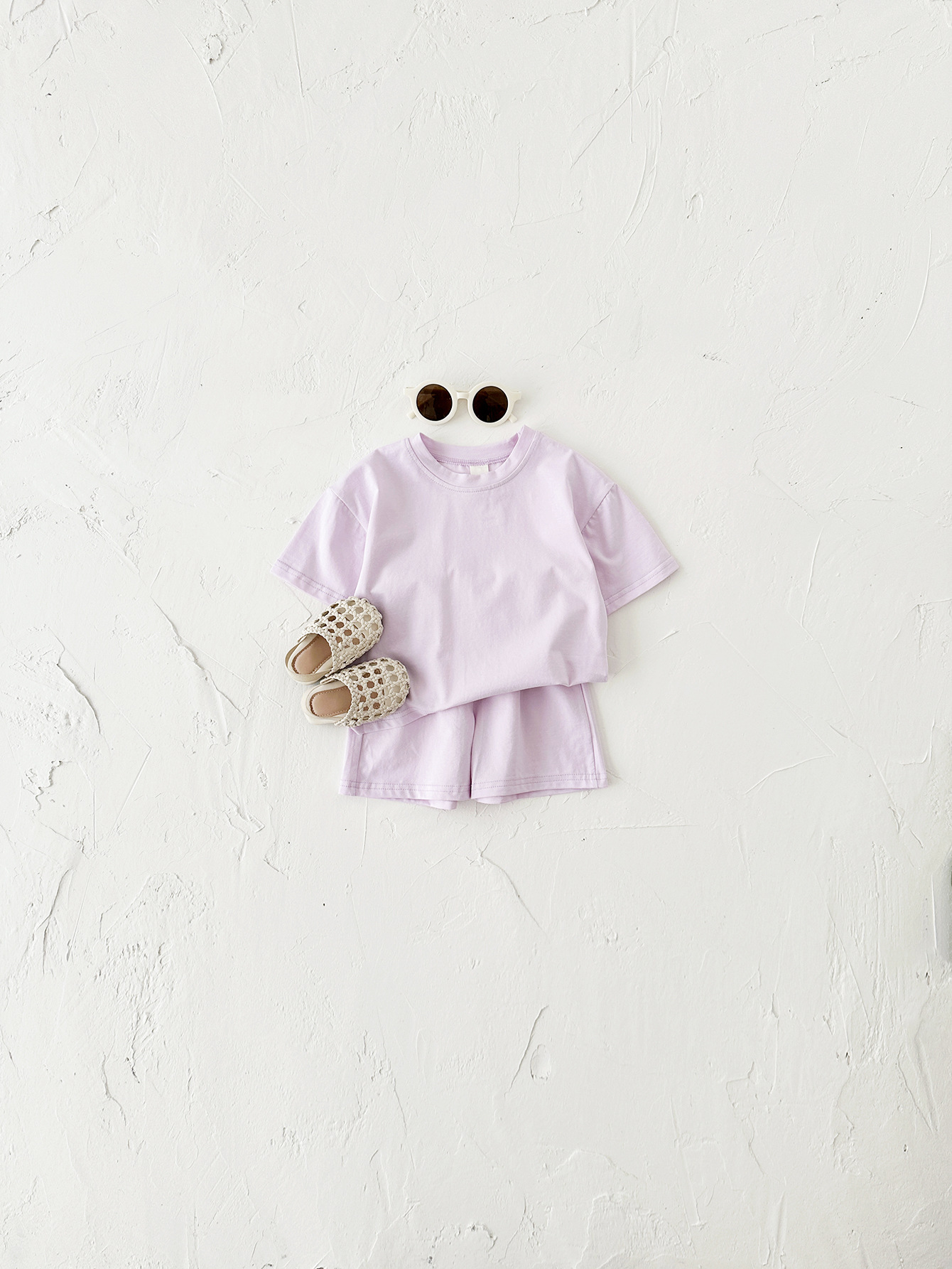 여름 어린이 신생아ㆍ소녀 단색 반팔 세트 남학생과 여학생을위한 한국식 투피스 국경 의상스토어 가기