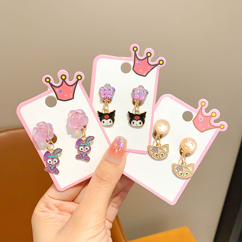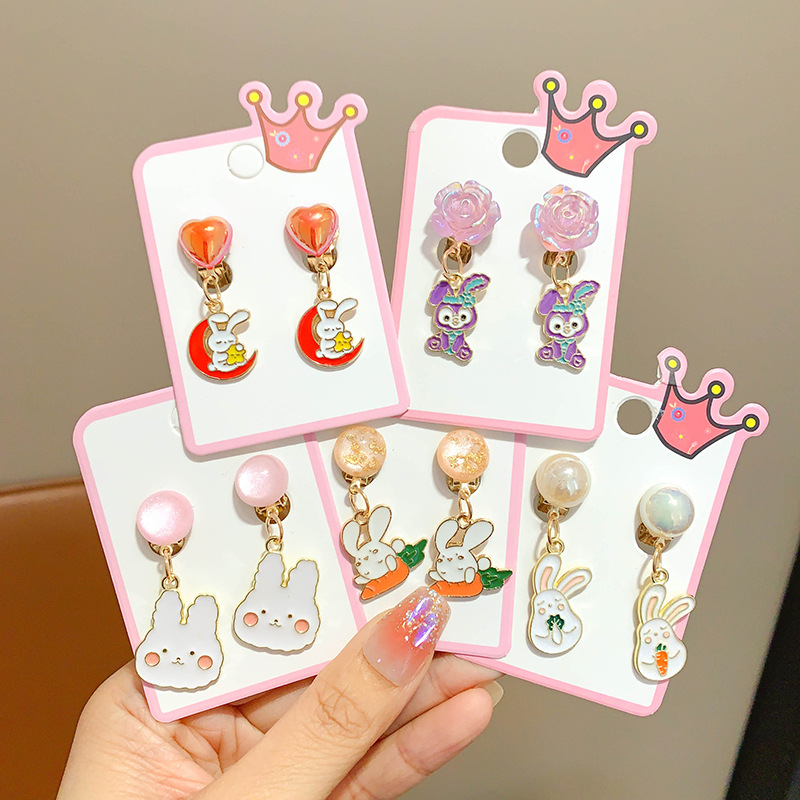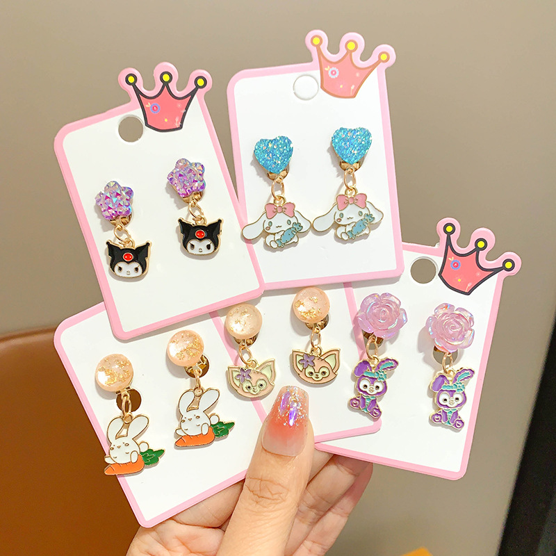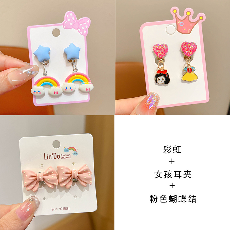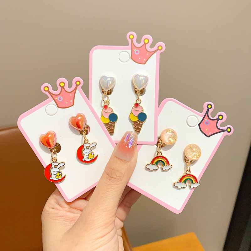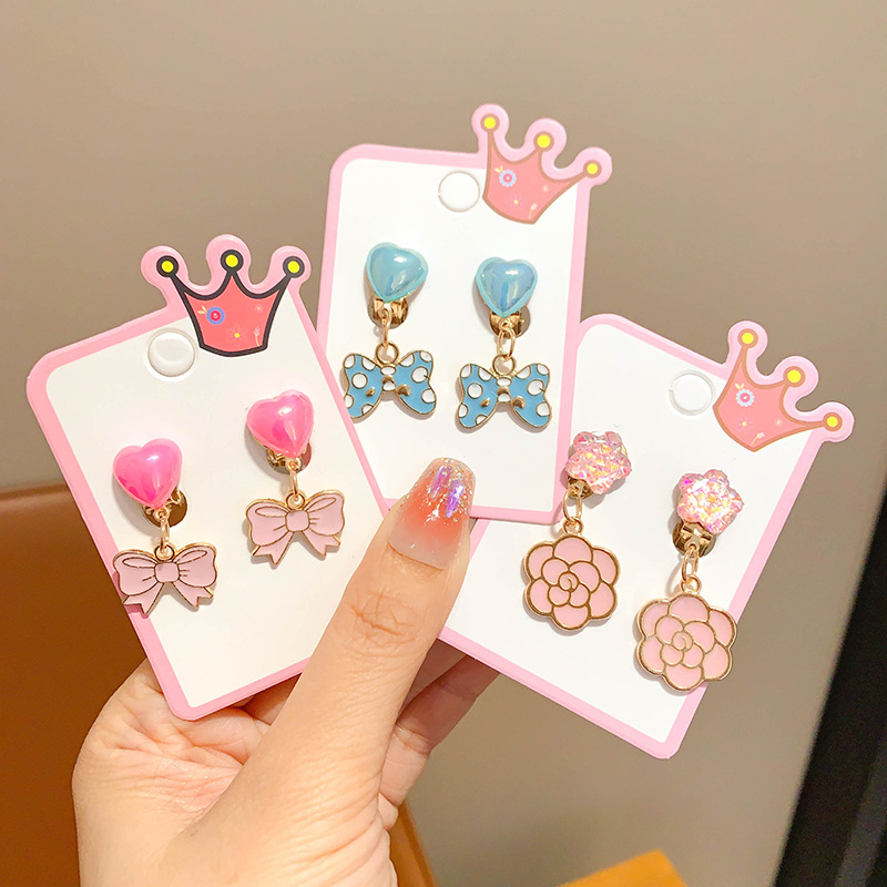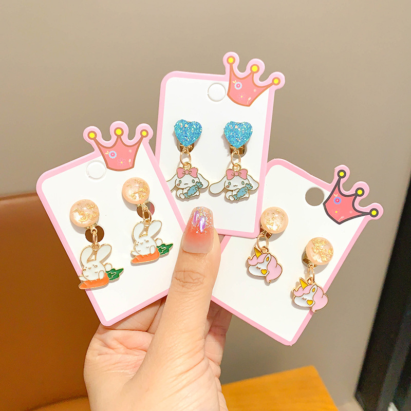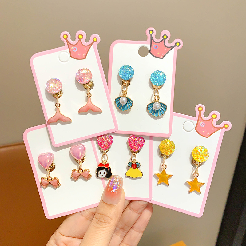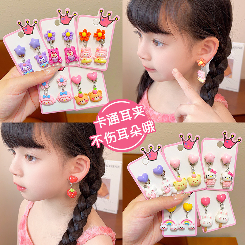 어린이 귀여운 공주 만화 귀걸이 2024 새 소녀 드롭 귀걸이 귀걸이 없는 소녀 귀걸이