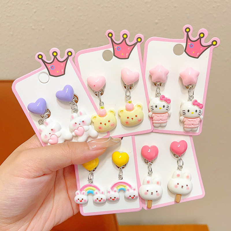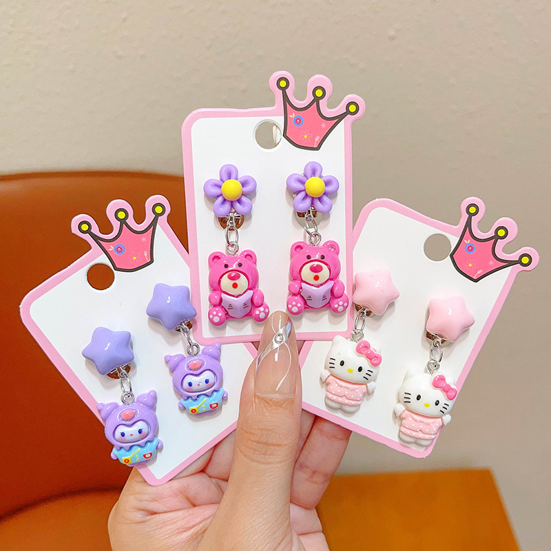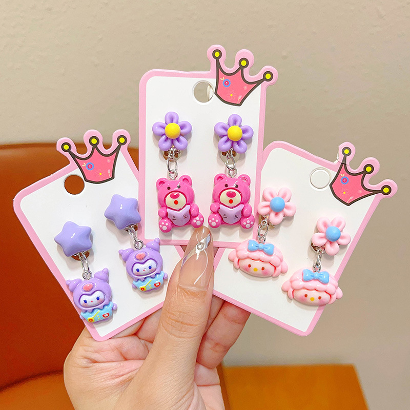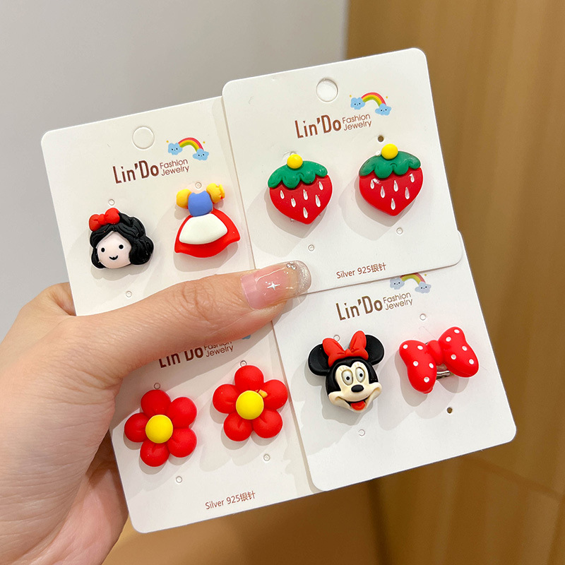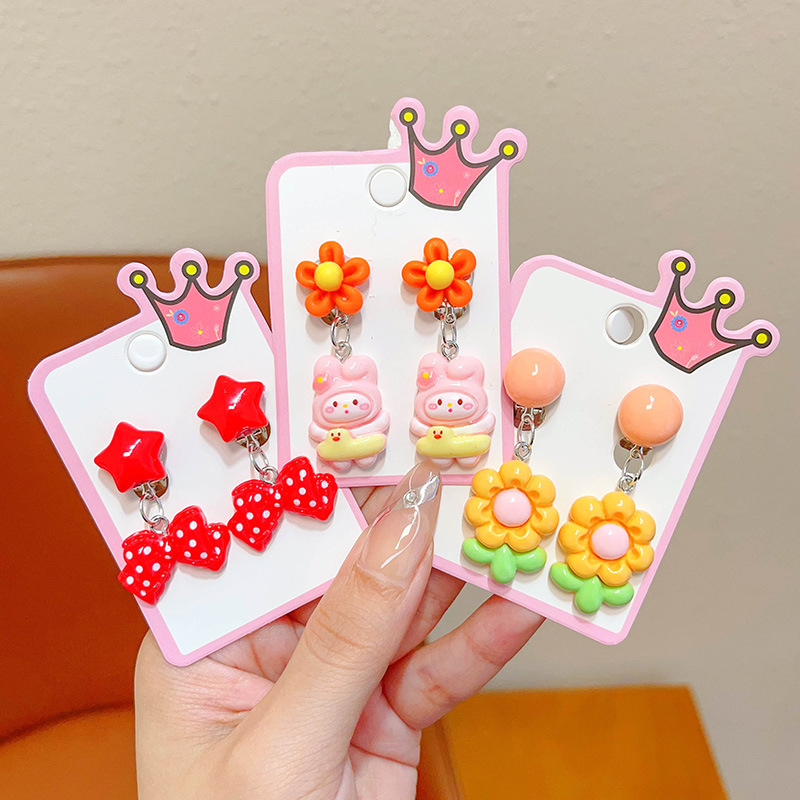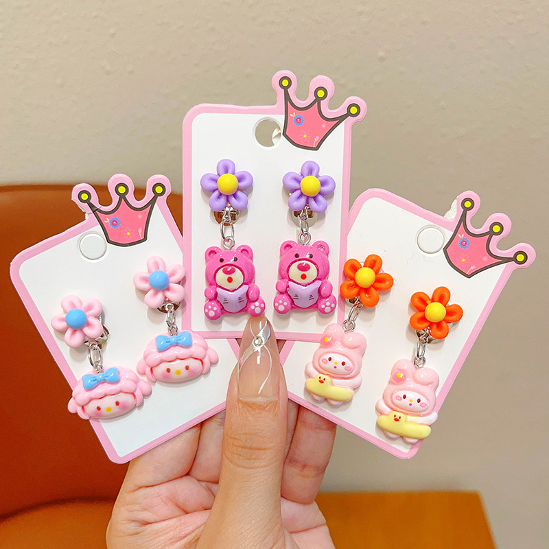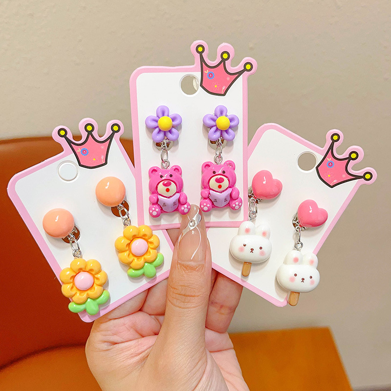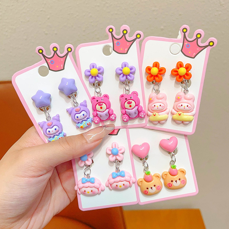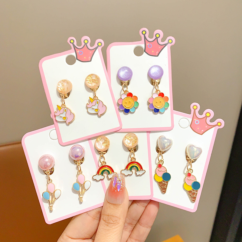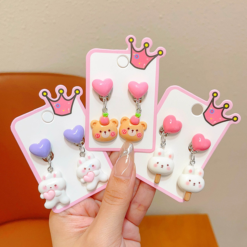 어린이 귀여운 공주 만화 귀걸이 2024 새 소녀 드롭 귀걸이 귀걸이 없는 소녀 귀걸이