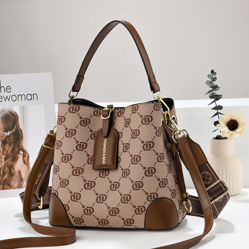 새로운 인쇄 된 대용량 버킷 가방 국경 모든 경기 대기 핸드백 복고풍 가벼운 럭셔리 어깨 크로스 바디 백 도매