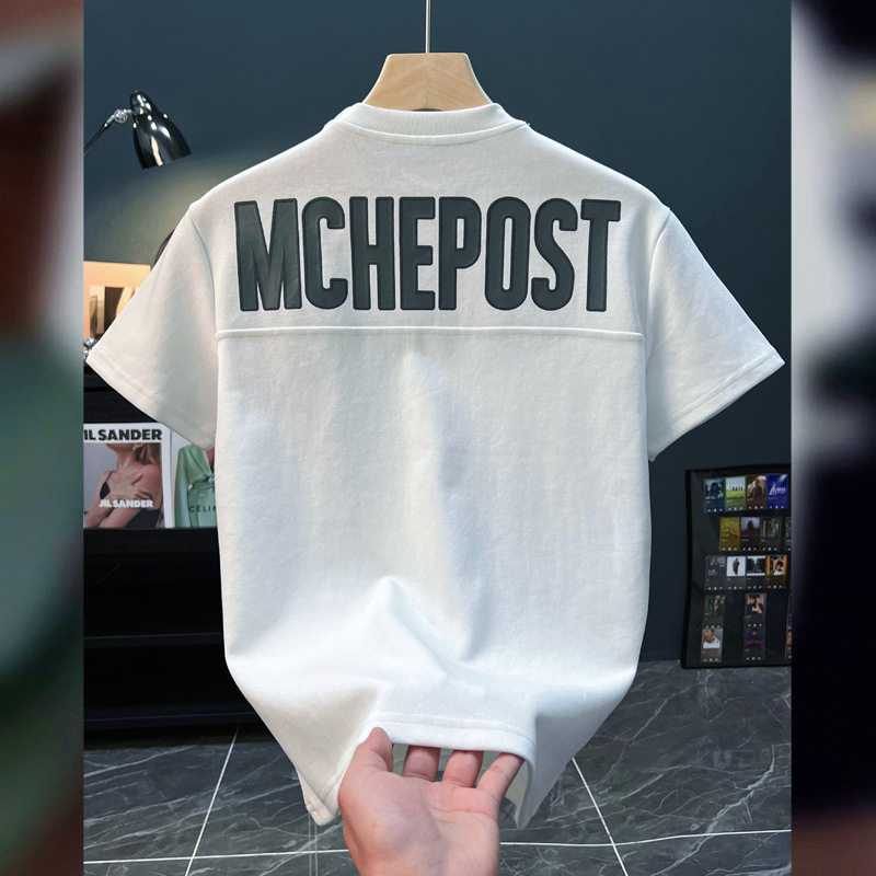 아메리칸 스타일 레트로 반소매 남성 티셔츠 2024 여름 새 한국식 올매치 편지 2024 반소매 캐주얼 탑스토어 가기