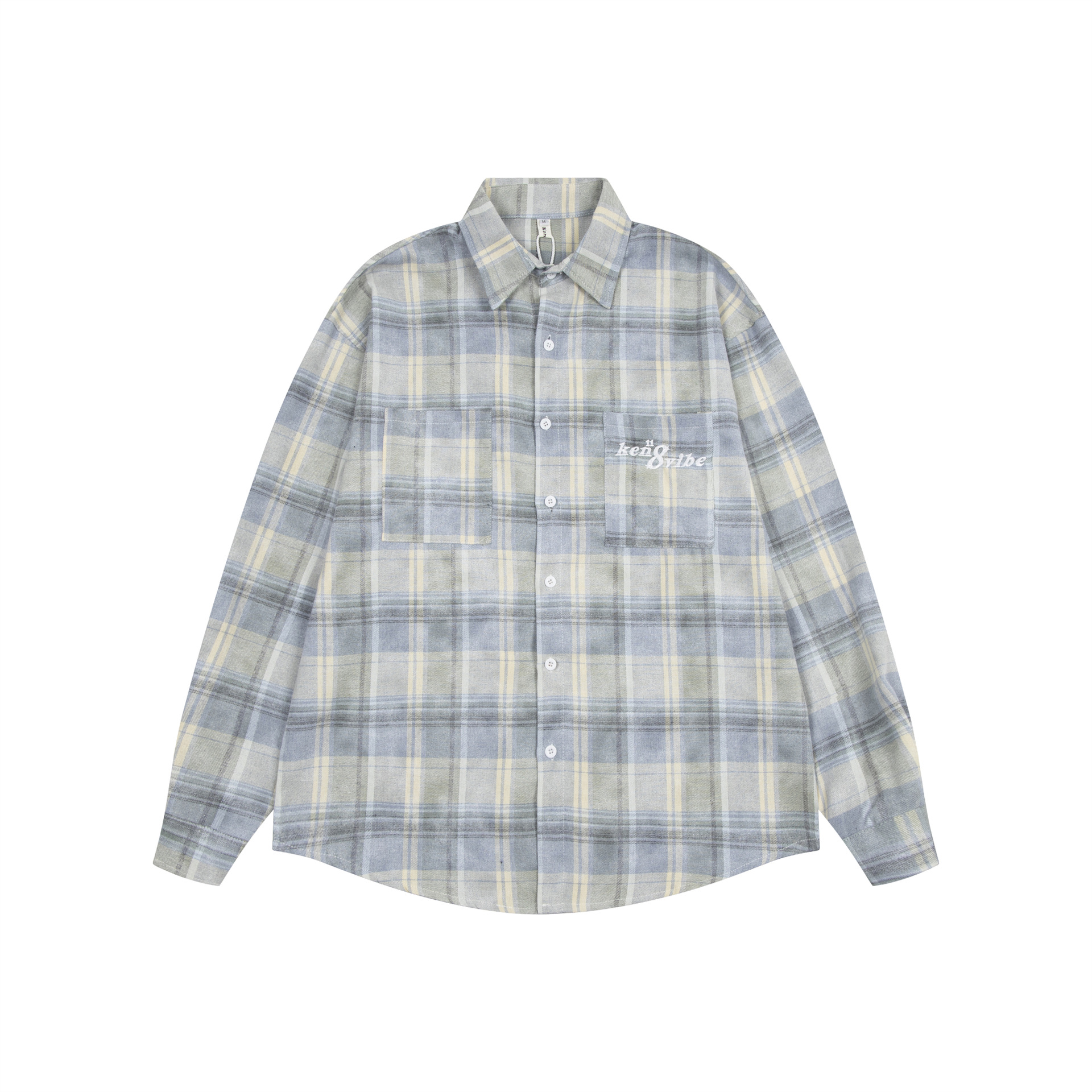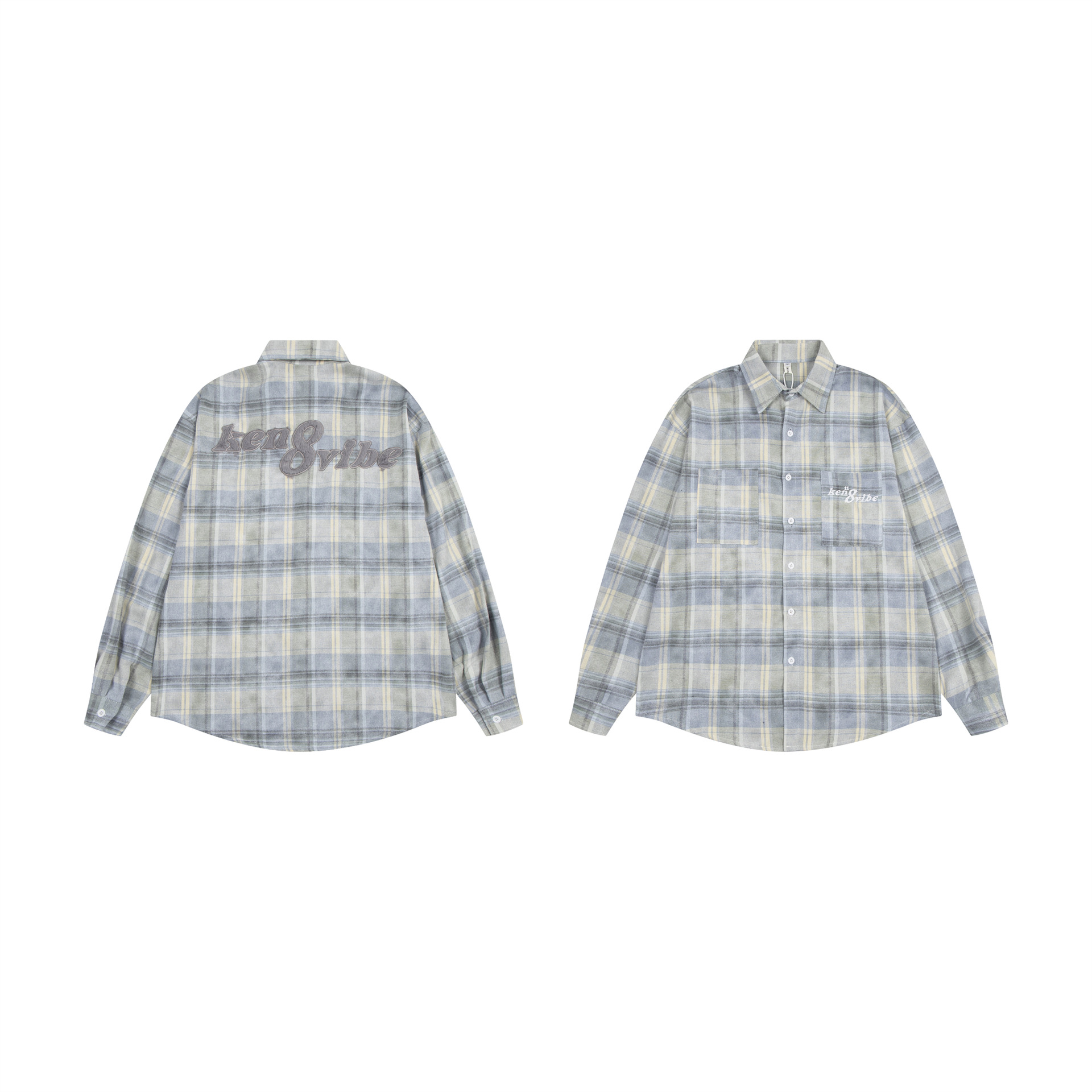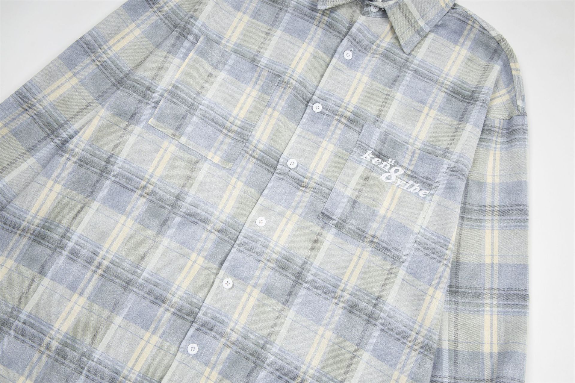 스트리트 힙 스터 무리 자수 격자 무늬 긴팔 셔츠 남성과 여성의 느슨한 연인 패션 브랜드 셔츠 얇은 코트스토어 가기