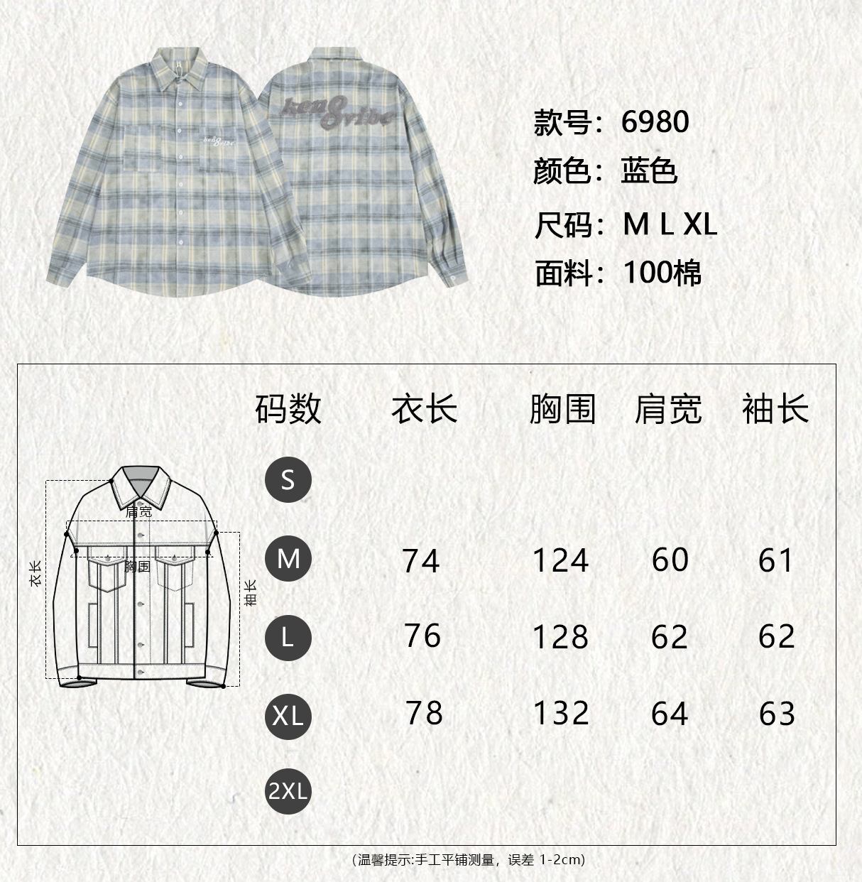 스트리트 힙 스터 무리 자수 격자 무늬 긴팔 셔츠 남성과 여성의 느슨한 연인 패션 브랜드 셔츠 얇은 코트
