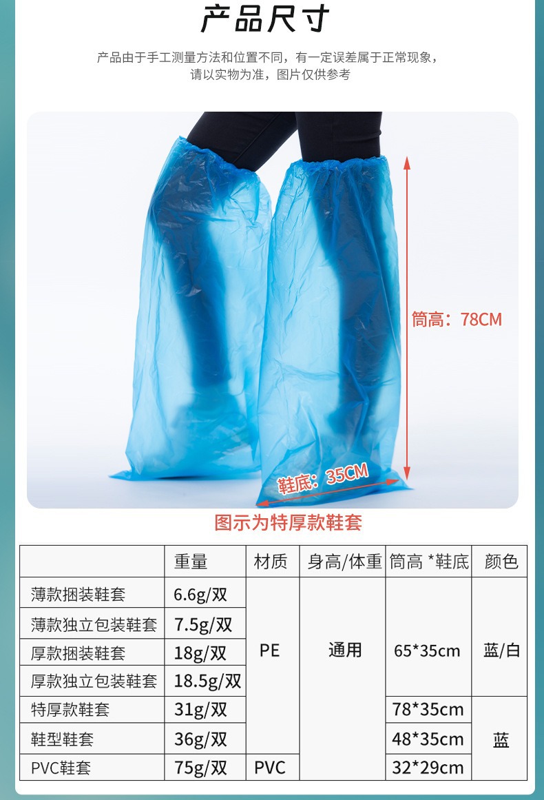 일회용 장화 발 커버 방수 미끄럼 방지 하이 튜브 신발 커버 비오는 날 두꺼운 내마모성 투명 플라스틱 외부 착용 방비스토어 가기
