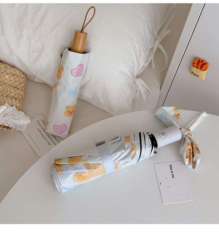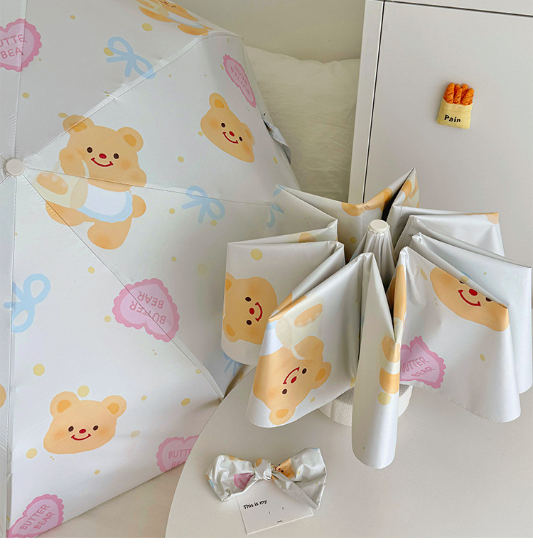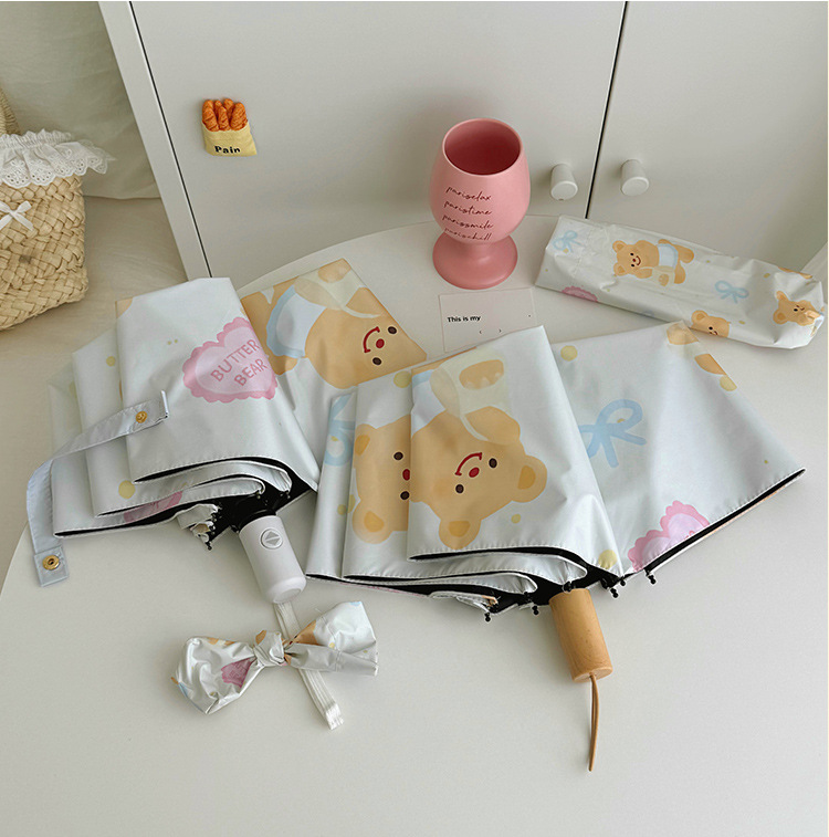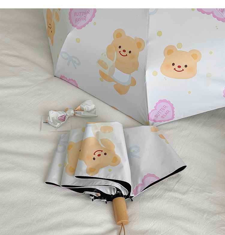 버터 베어 써니 우산 자외선 방지 블랙 우산 학생 귀여운 소녀 써니 우산스토어 가기