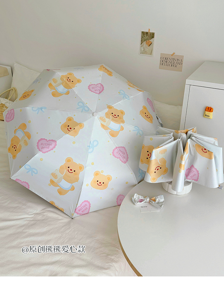 버터 베어 써니 우산 자외선 방지 블랙 우산 학생 귀여운 소녀 써니 우산