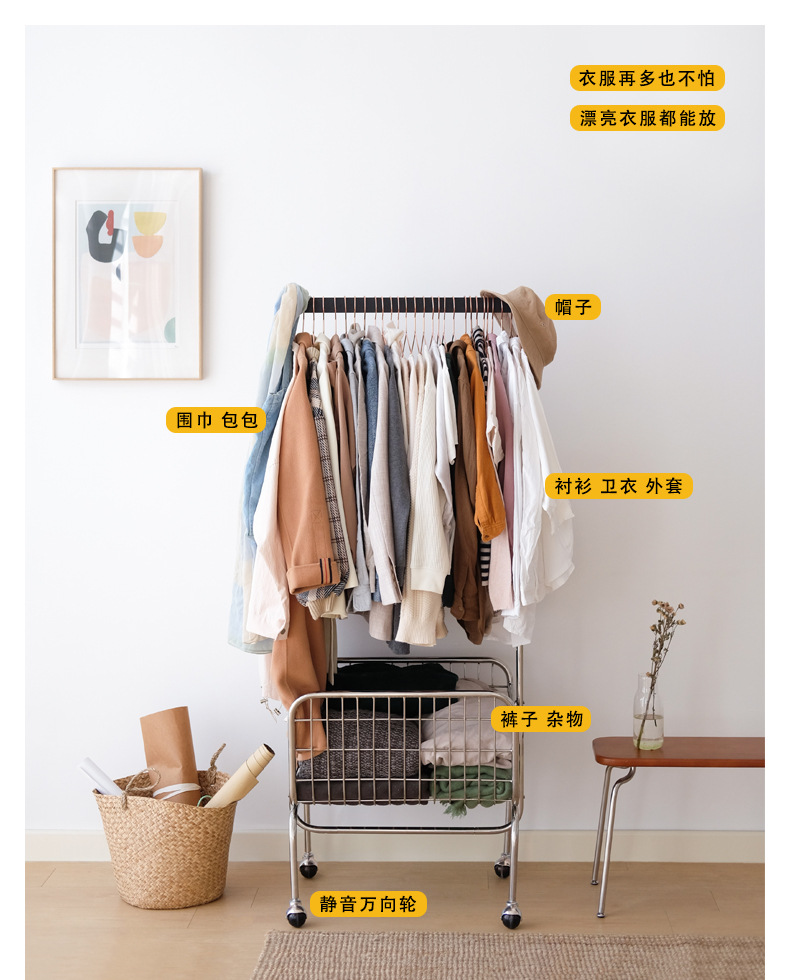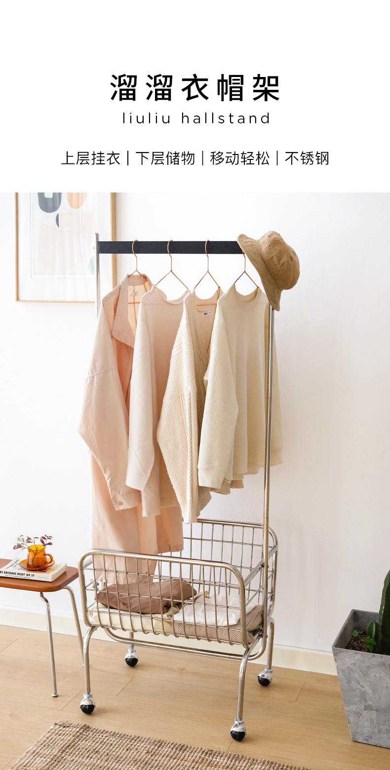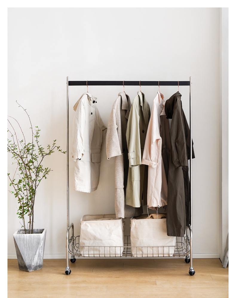 몰래 코트 랙 북유럽 침실 입구 가정용 스테인레스 스틸 바닥 걸이 모바일 옷걸이스토어 가기