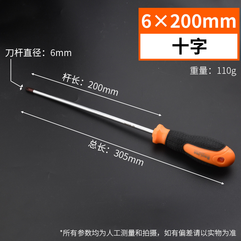 • [D1 강철 경화 블레이드] 고무 손잡이 6*200(십자)* 드라이버