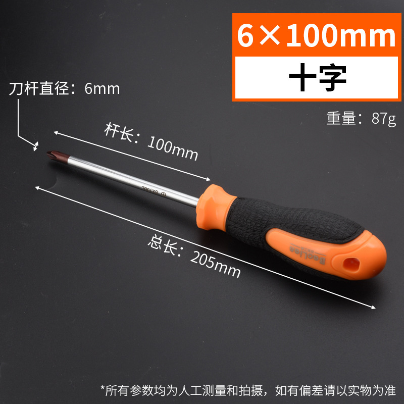 • [D1 강철 경화 블레이드] 고무 손잡이 6*100(십자)* 드라이버