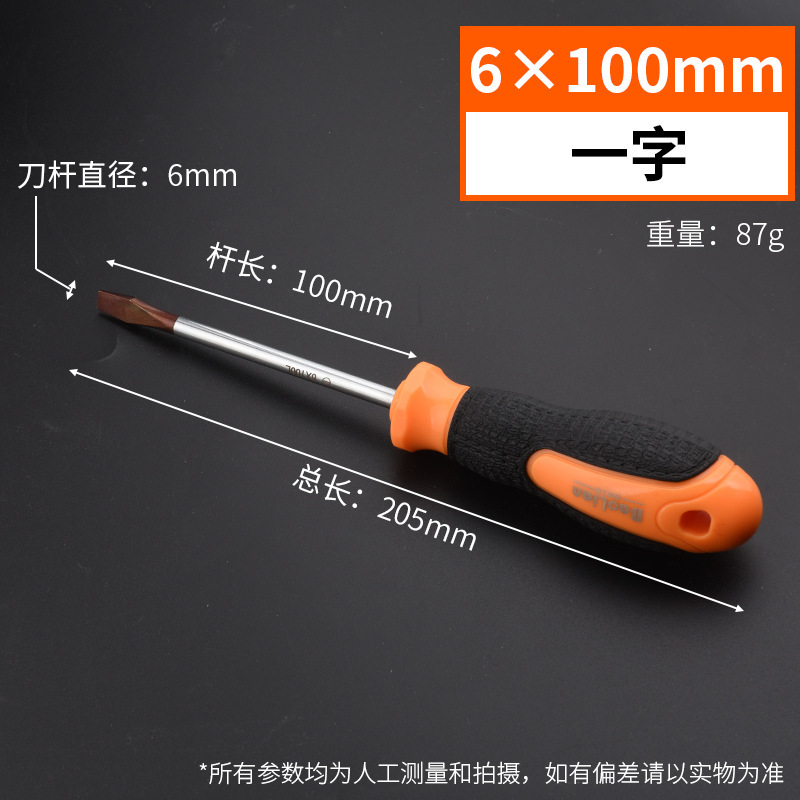 • [D1 강철 경화 블레이드] 고무 손잡이 6*100(일자형)* 드라이버