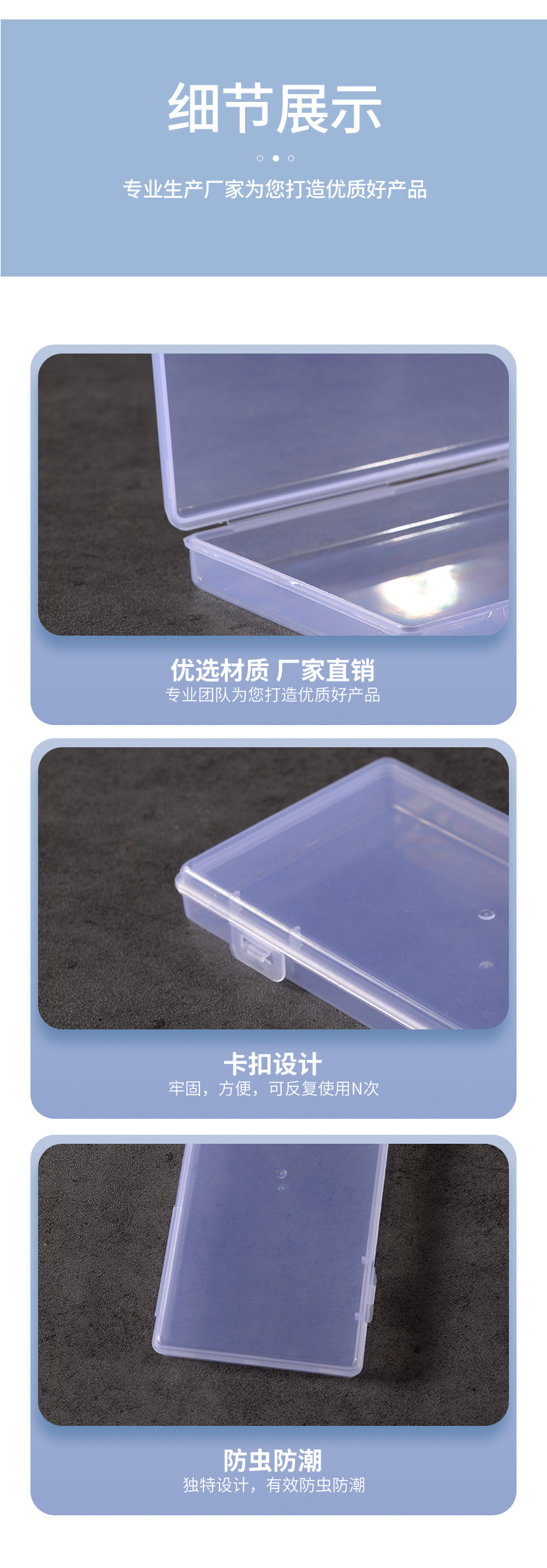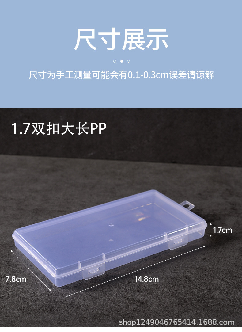 국경 PP 직사각형 투명 1.7 높은 플라스틱 상자 하드웨어 액세서리 카드 스티커 보관 재고 도매