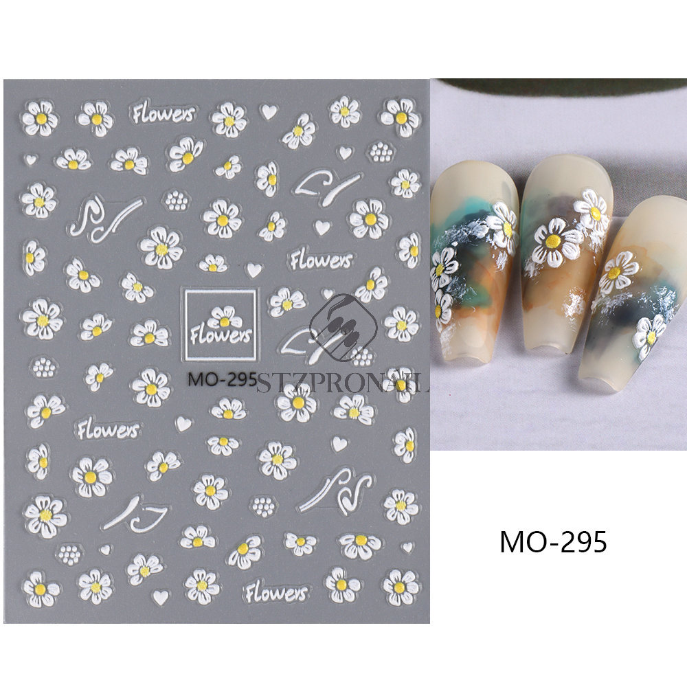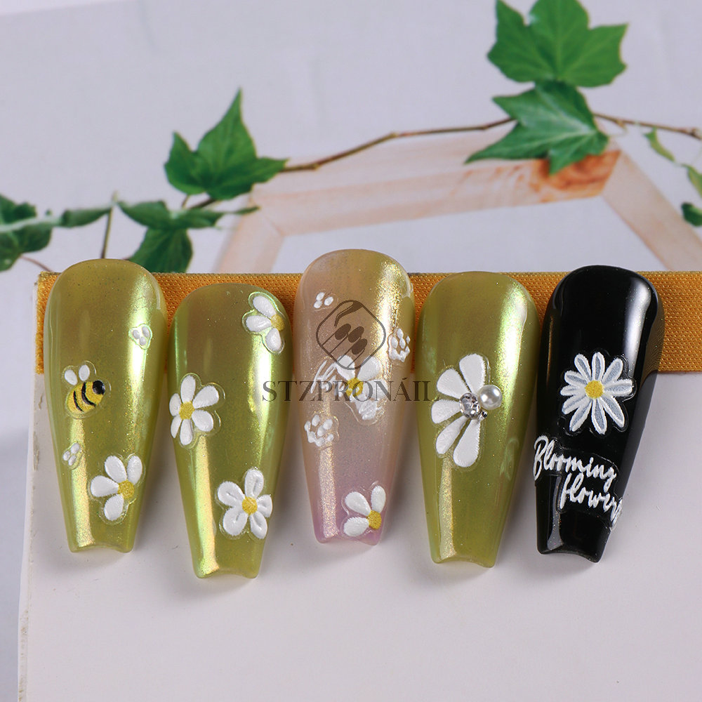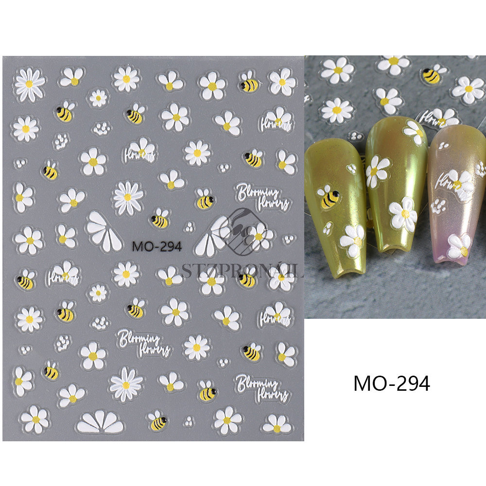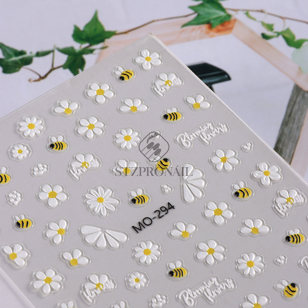 국경 간 여름 새로운 네일 아트 스티커 구호 스테레오 해바라기 데이지 플라워 꿀벌 뒷면 접착 스티커스토어 가기