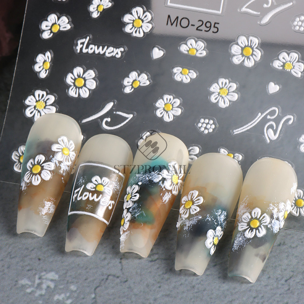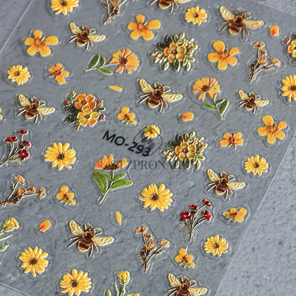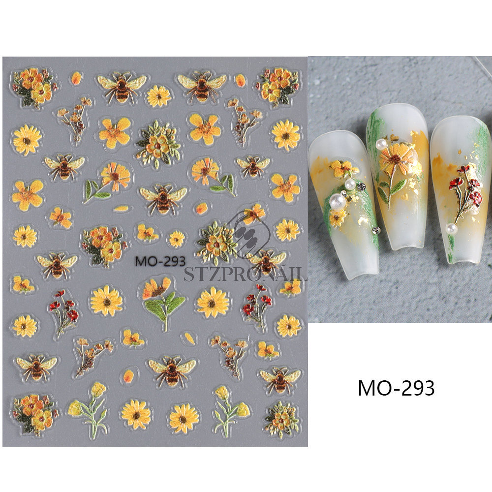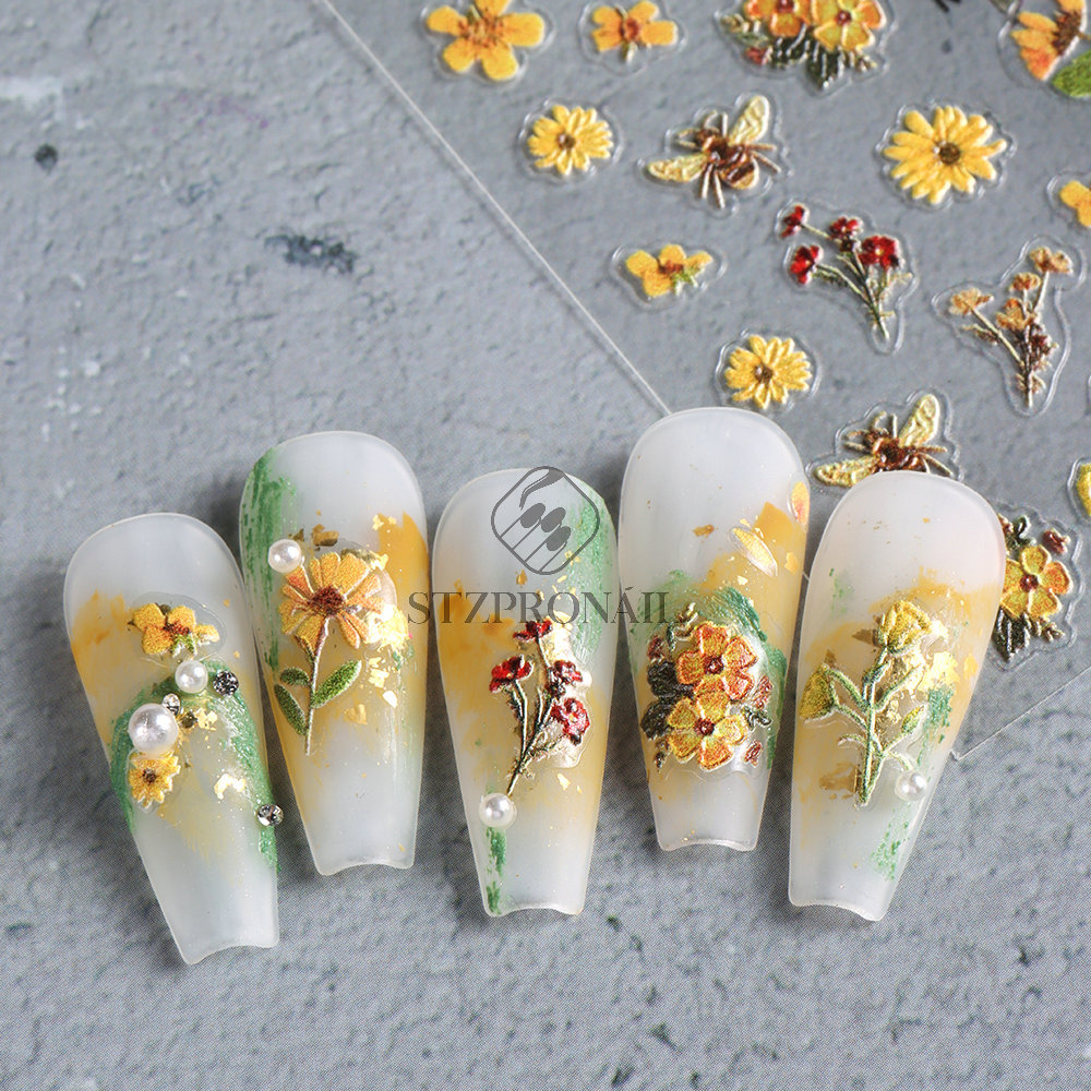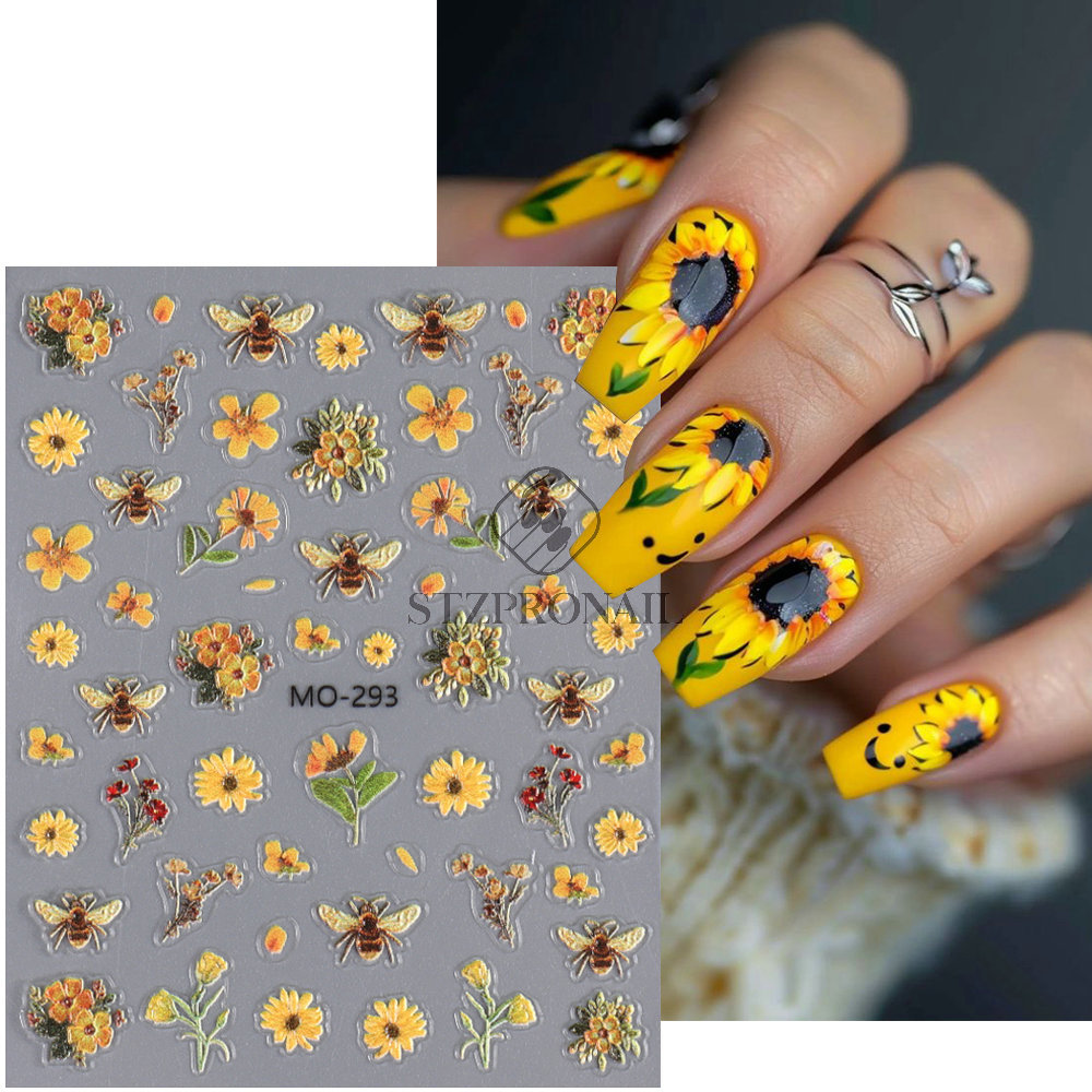 국경 간 여름 새로운 네일 아트 스티커 구호 스테레오 해바라기 데이지 플라워 꿀벌 뒷면 접착 스티커