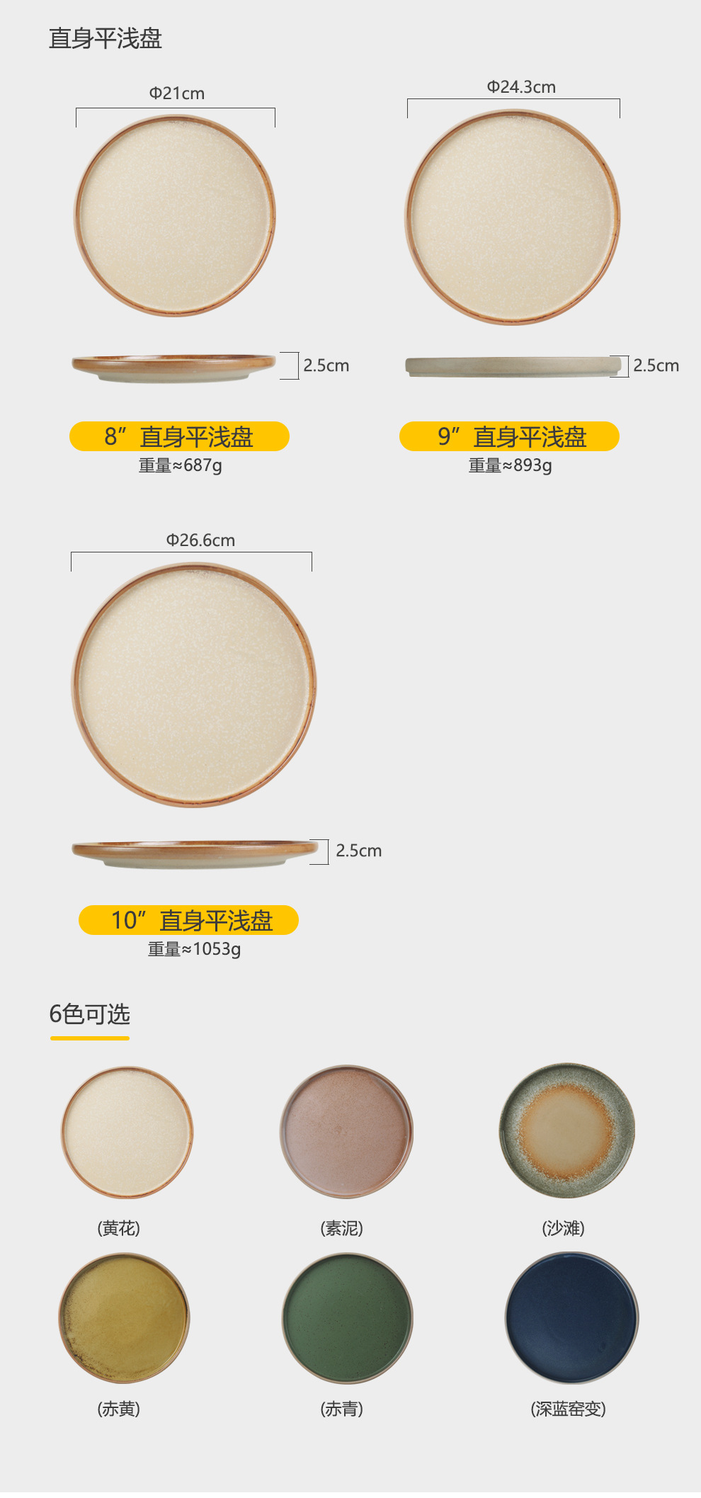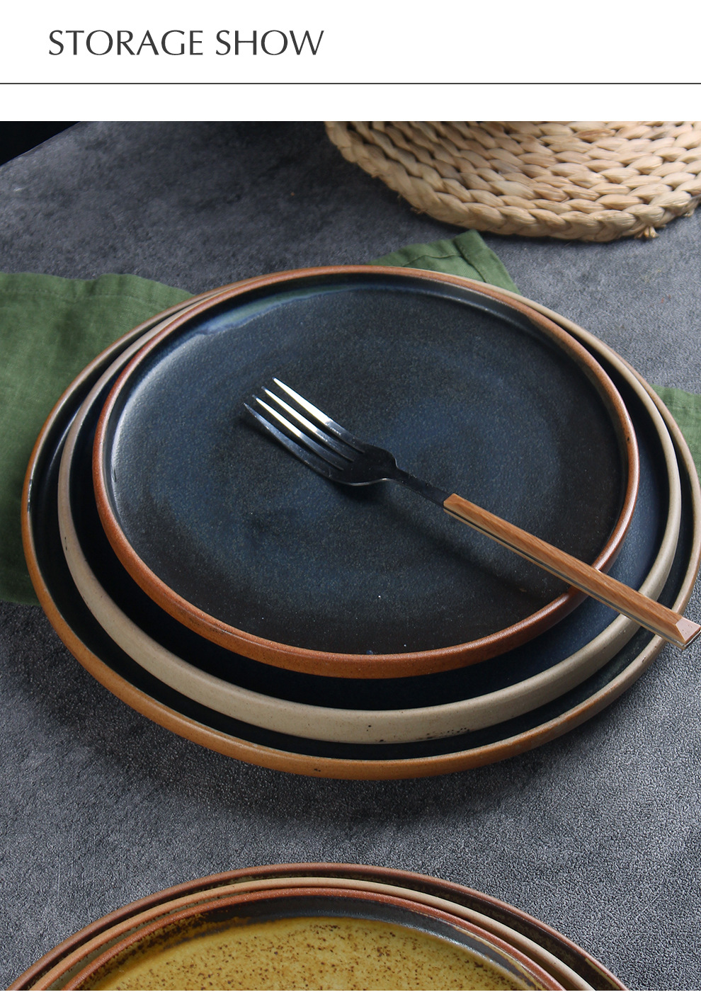 일본 세라믹 디너 플레이트, 심플한 복고풍 스타일의 접시, 식기, 서양 음식 과일 접시, 파스타 접시, 가정용 샐러드 접시 도매스토어 가기