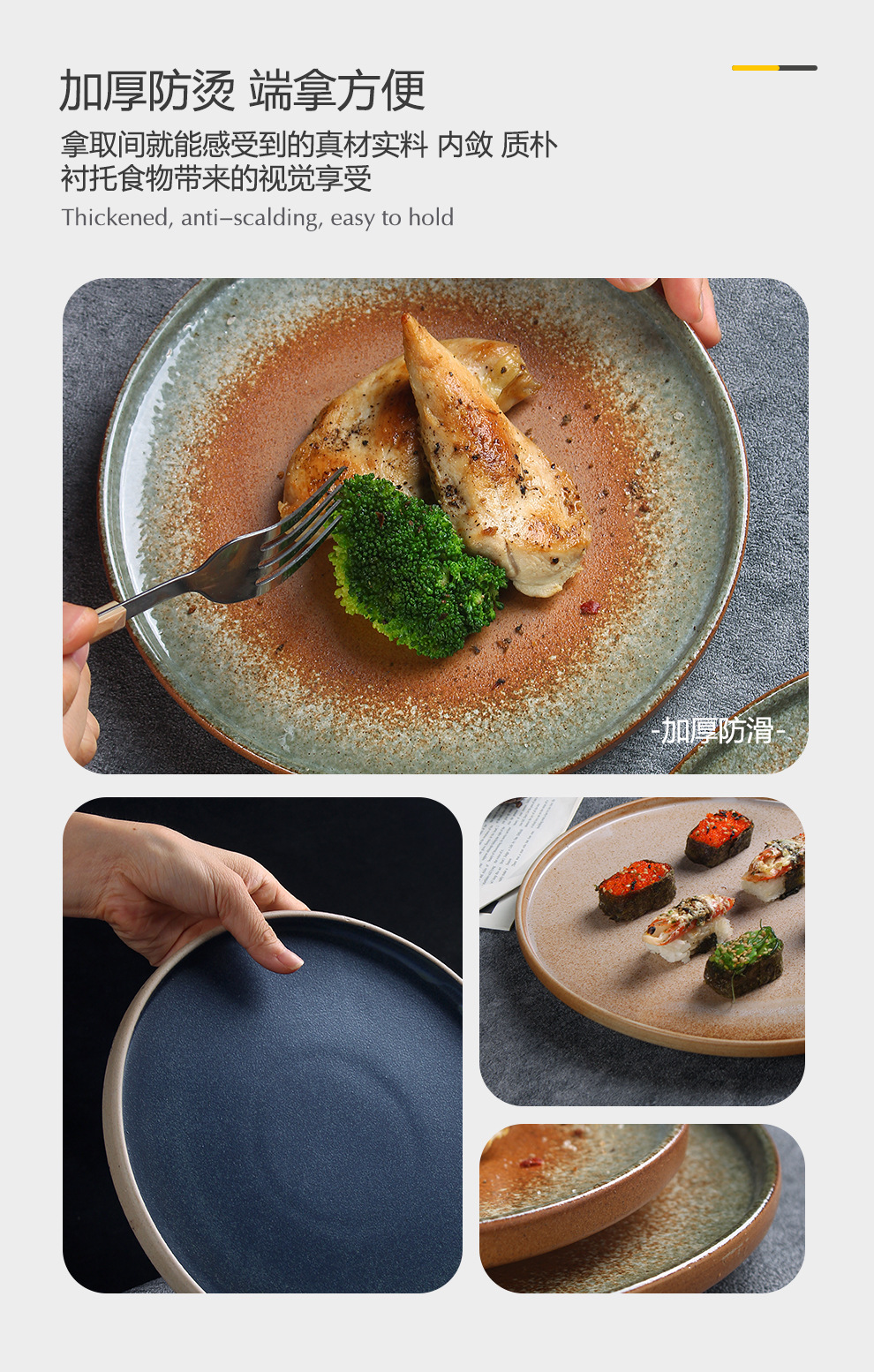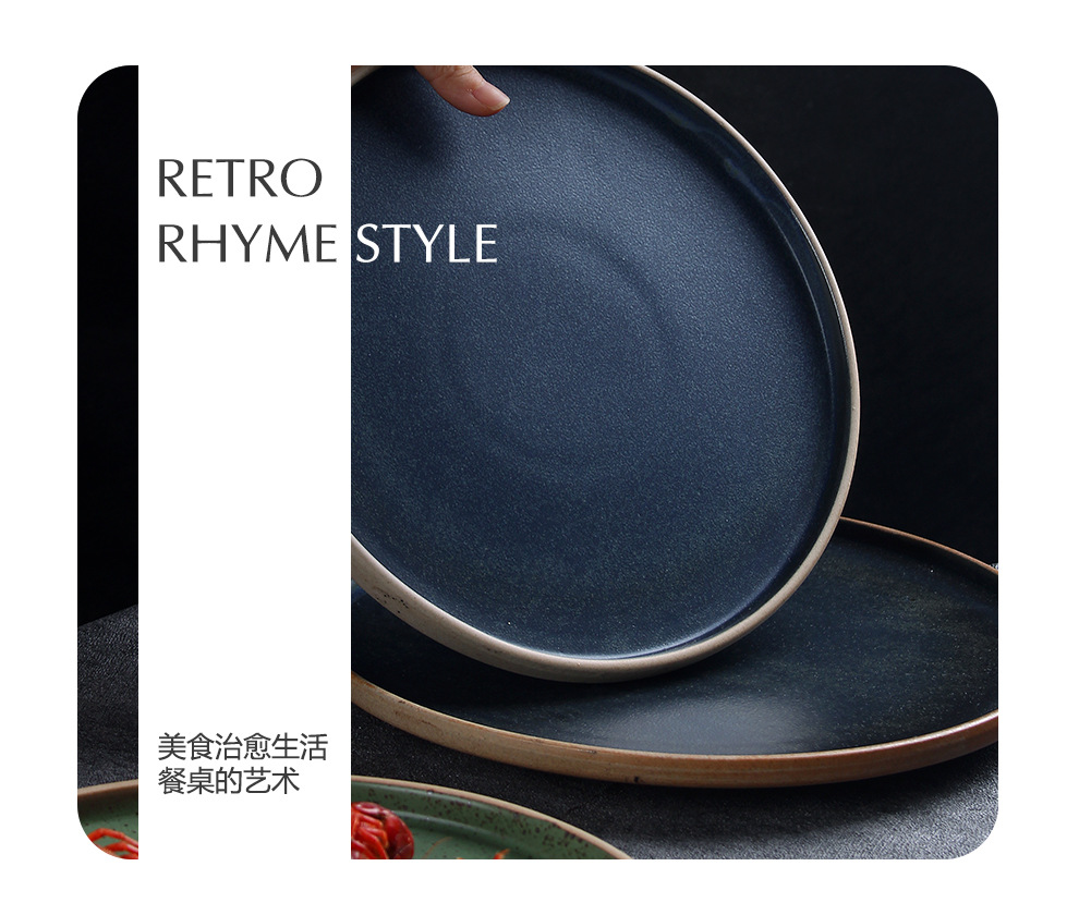 일본 세라믹 디너 플레이트, 심플한 복고풍 스타일의 접시, 식기, 서양 음식 과일 접시, 파스타 접시, 가정용 샐러드 접시 도매
