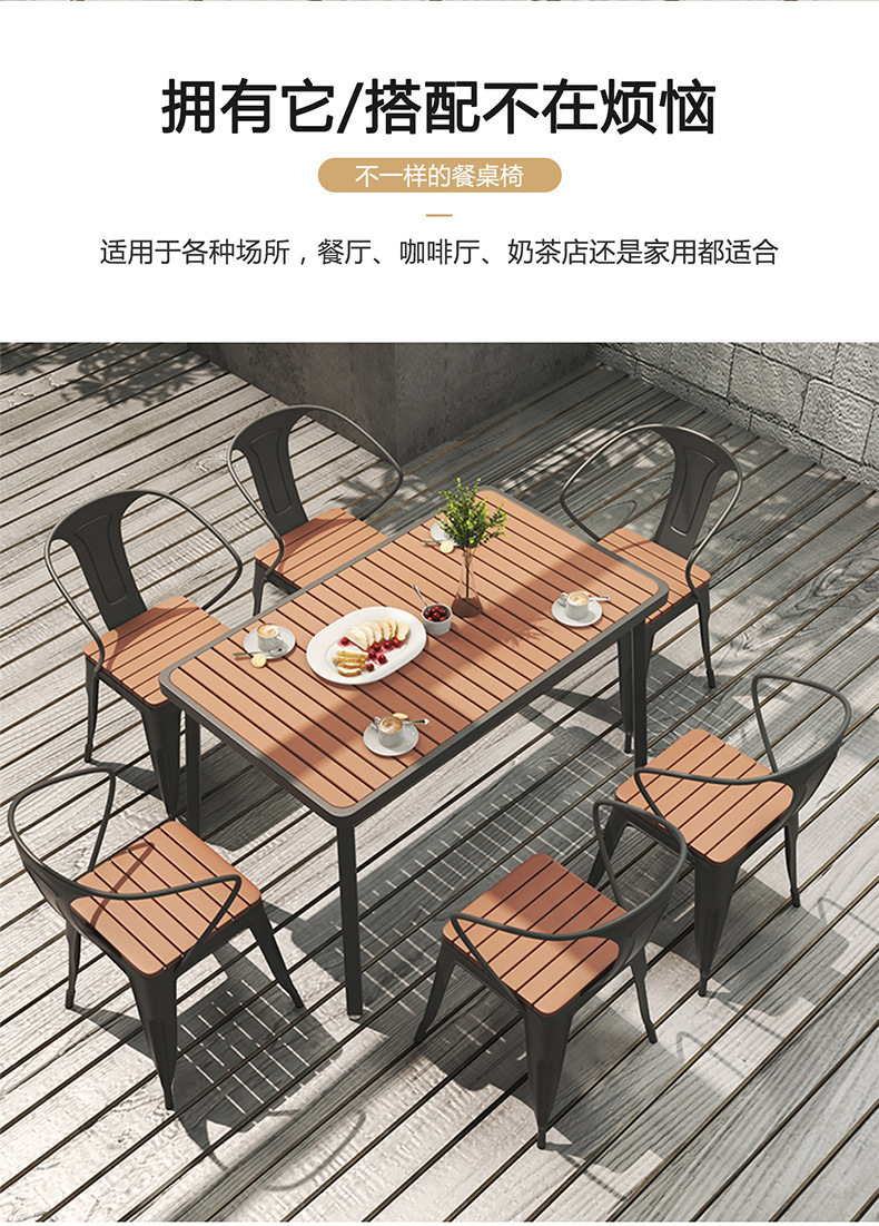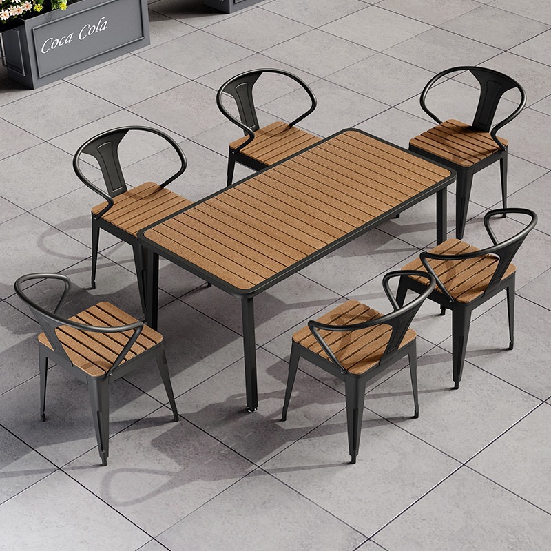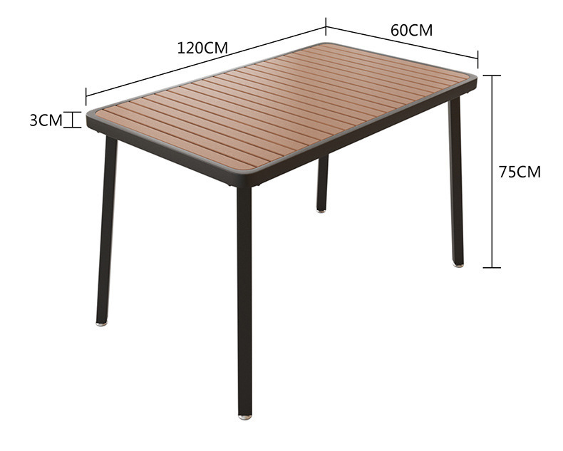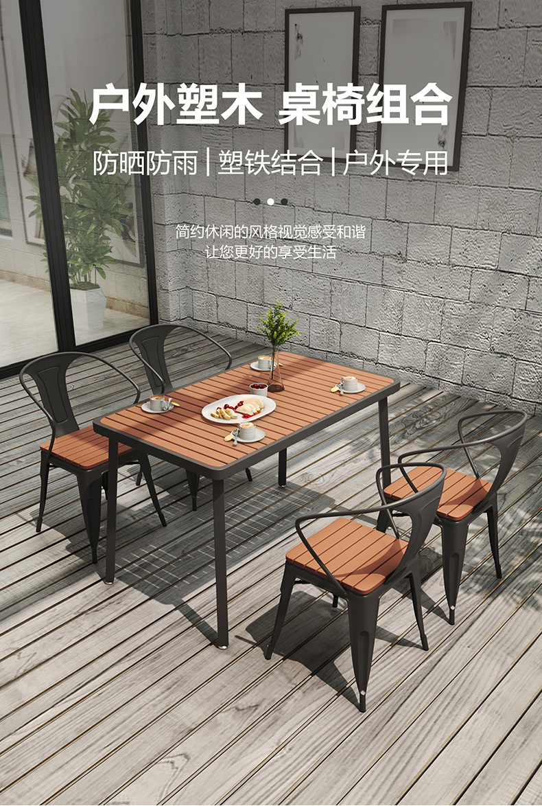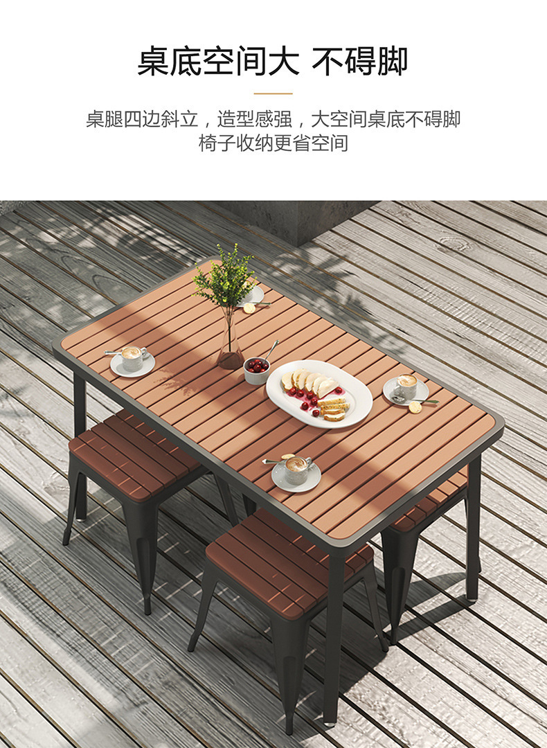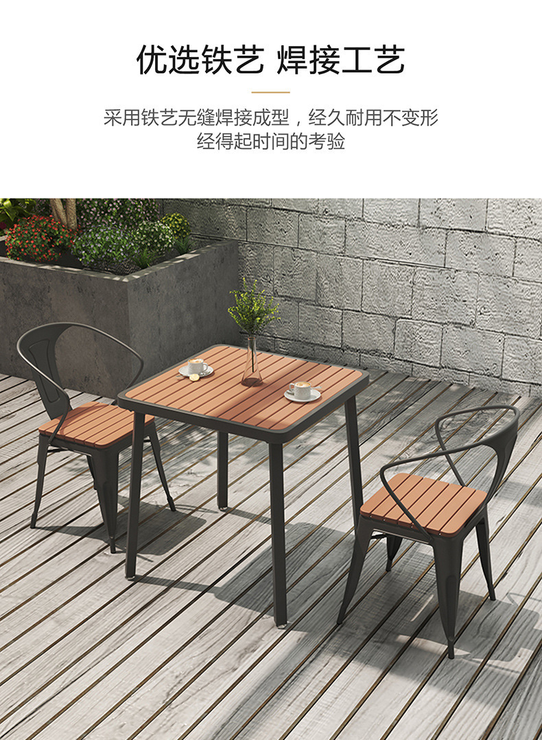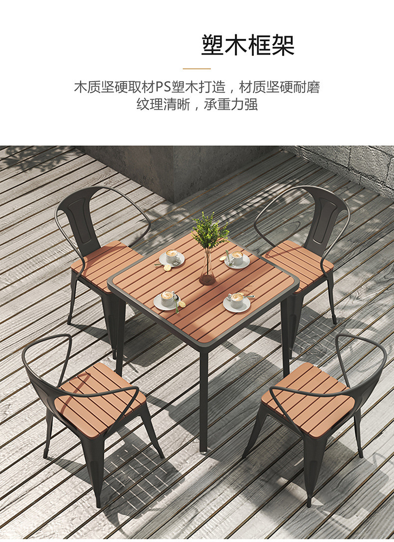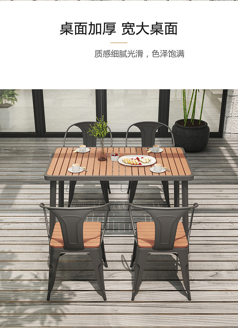 플라스틱 나무 야외 발코니 테이블과 의자 조합 우유 차 가게 레저 작은 광장 테이블 코티드 바베큐 테이블 야외 테이블 및 의자 세트