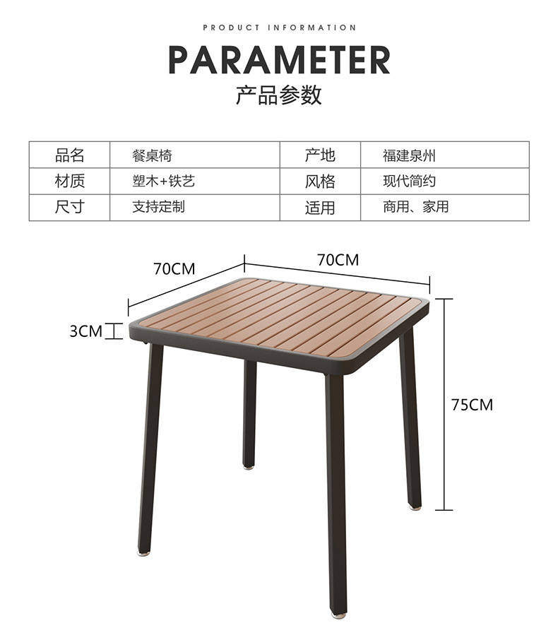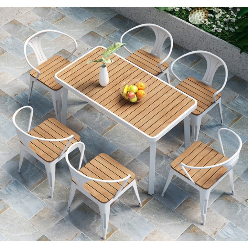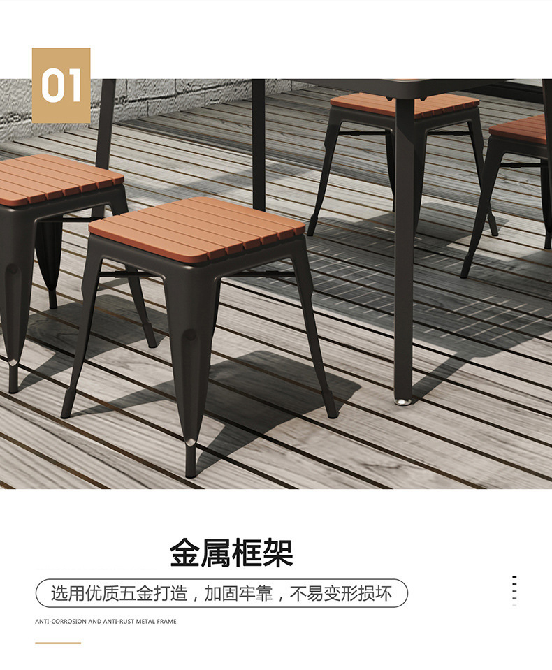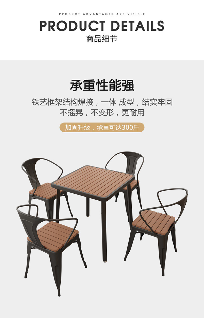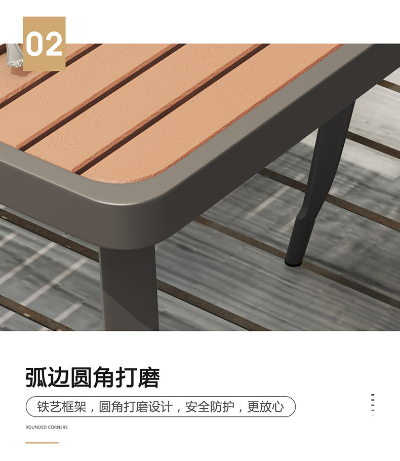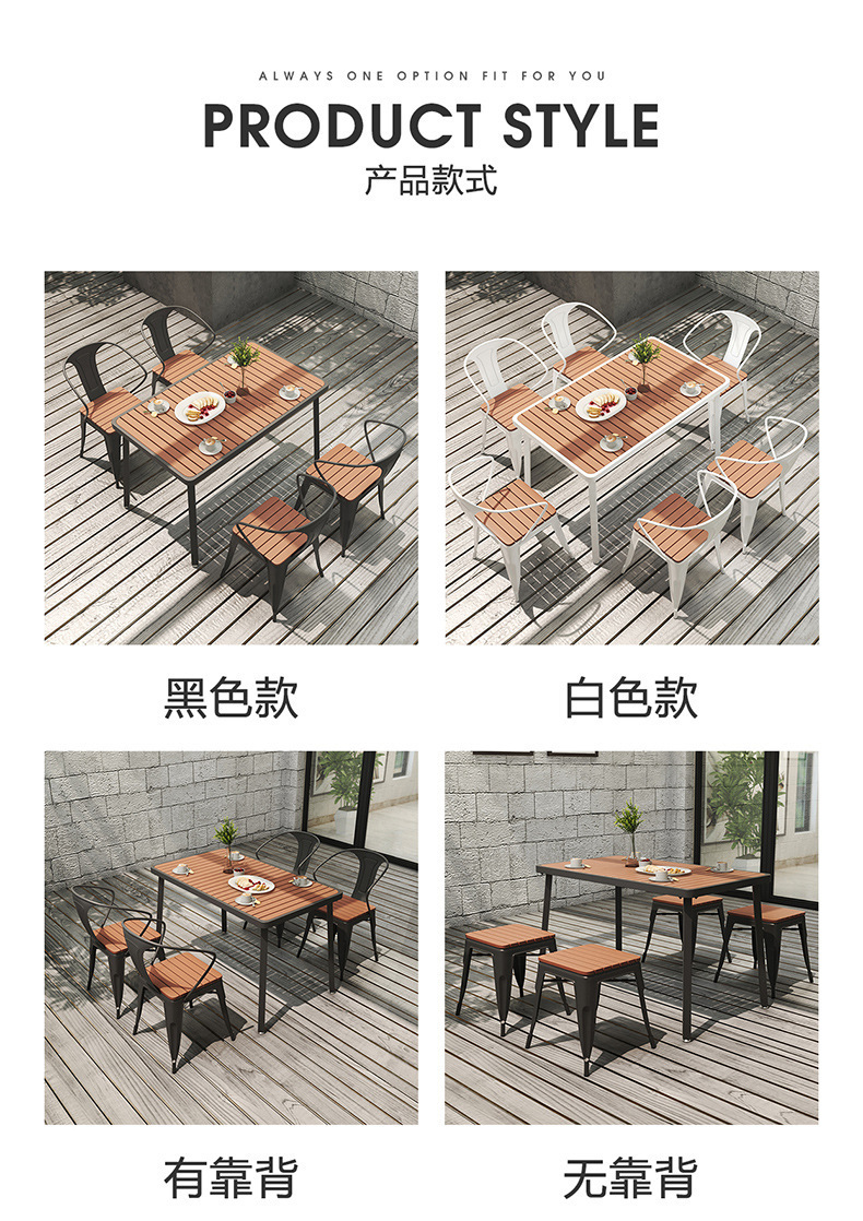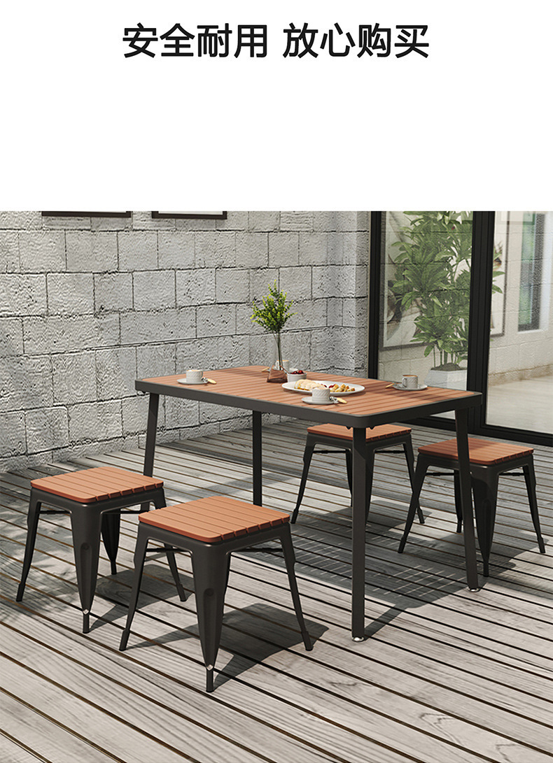플라스틱 나무 야외 발코니 테이블과 의자 조합 우유 차 가게 레저 작은 광장 테이블 코티드 바베큐 테이블 야외 테이블 및 의자 세트