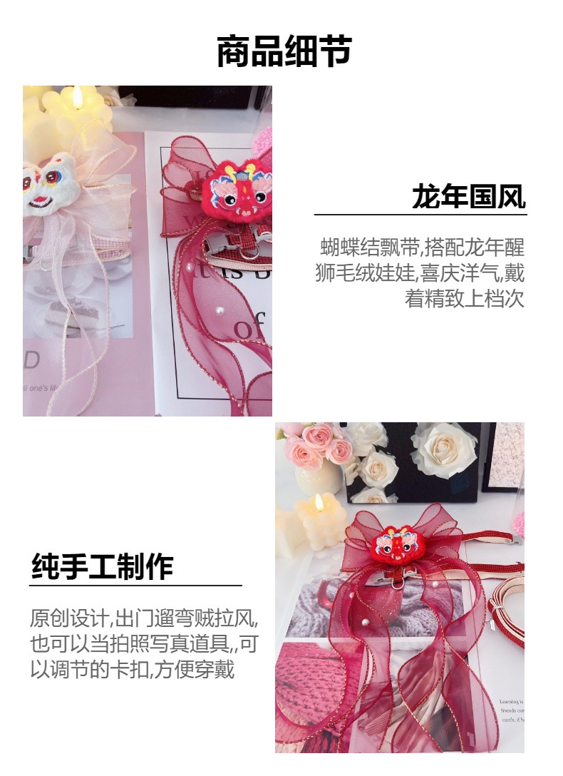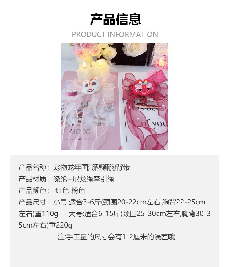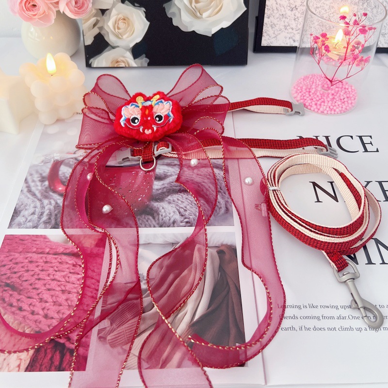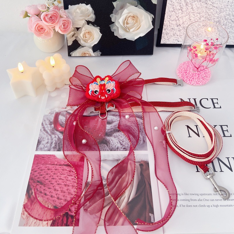공장 직접 Guofeng Dragon Year Lion Dance 애완 동물 견인 로프 I 자형 가슴 스트랩 외출, 고양이와 개 휴식 방지스토어 가기